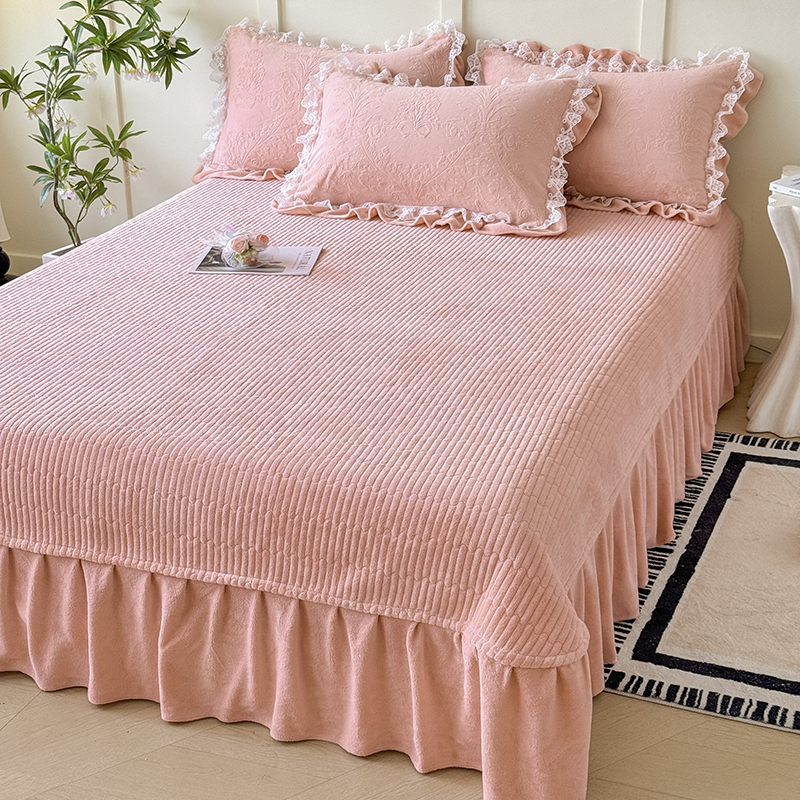 (总)雅眠居 直播爆款纯色宝宝绒床盖款四件套花边夹棉床裙款三件套,宝宝绒-粉色,宝宝绒-卡其,宝宝绒-烟灰,宝宝绒-紫色,宝宝绒-草绿,宝宝绒-深蓝