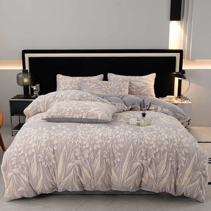 (总)德比尔斯 2025新款兔毛绒兔兔绒雕花牛奶绒四件套,馥雅-灰,蝴蝶-灰,花语-紫,叶影,伊宁紫,珍妮粉