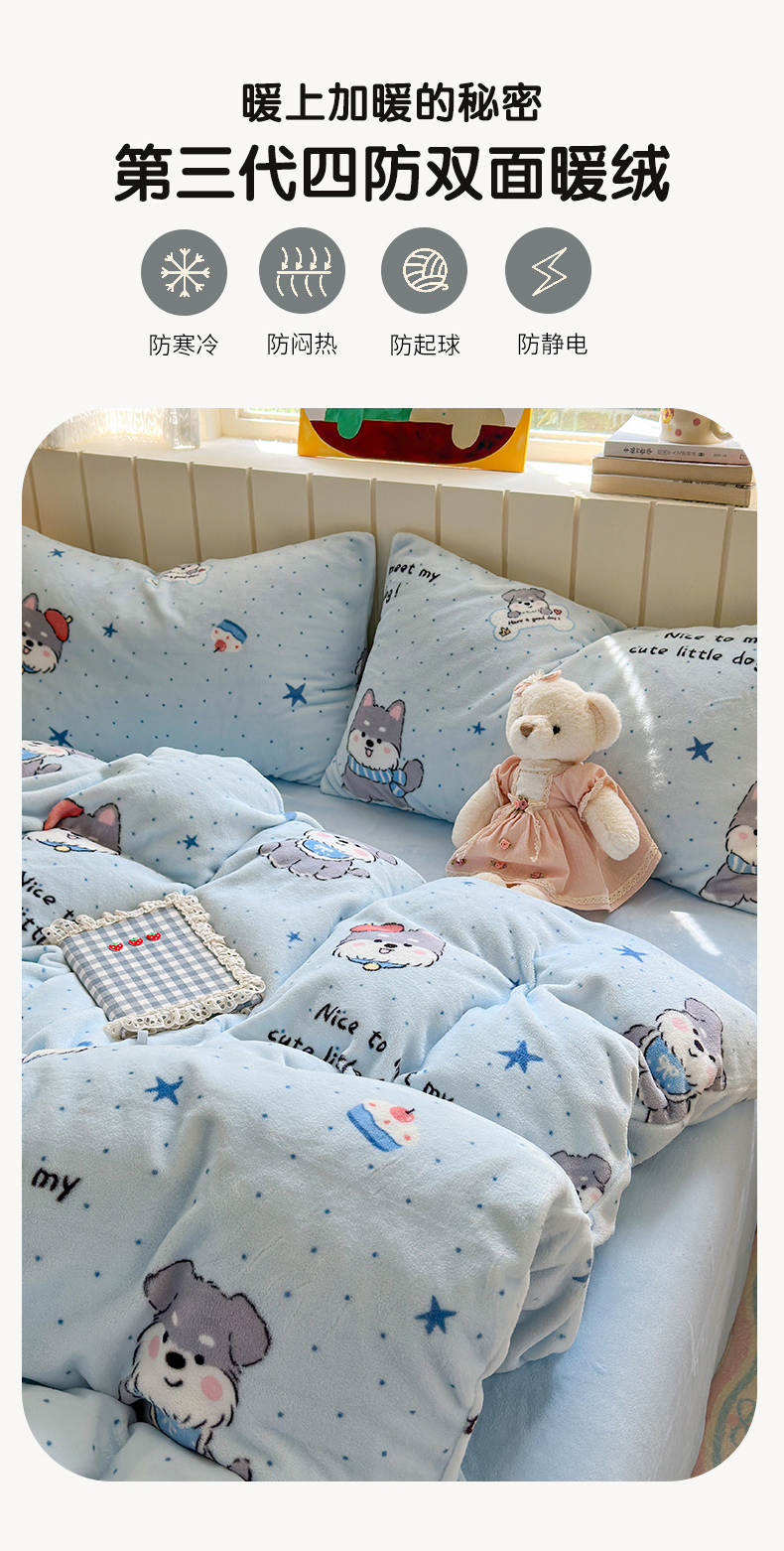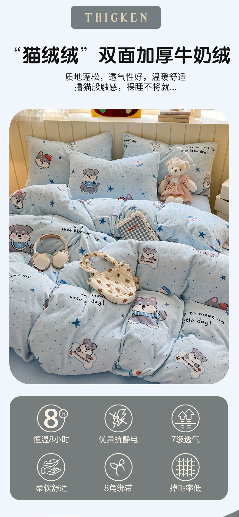 当前位置: 91家纺网 > 商品网购 > 床品套件 > 四件套 > 牛奶绒四件套 > 丽美人家纺 2025新款小版印花牛奶绒四件套 甜心猫咪-蓝