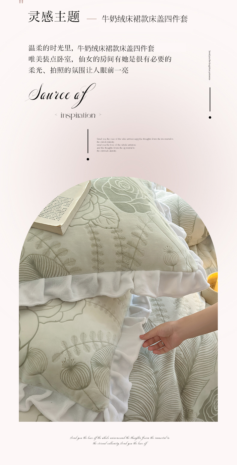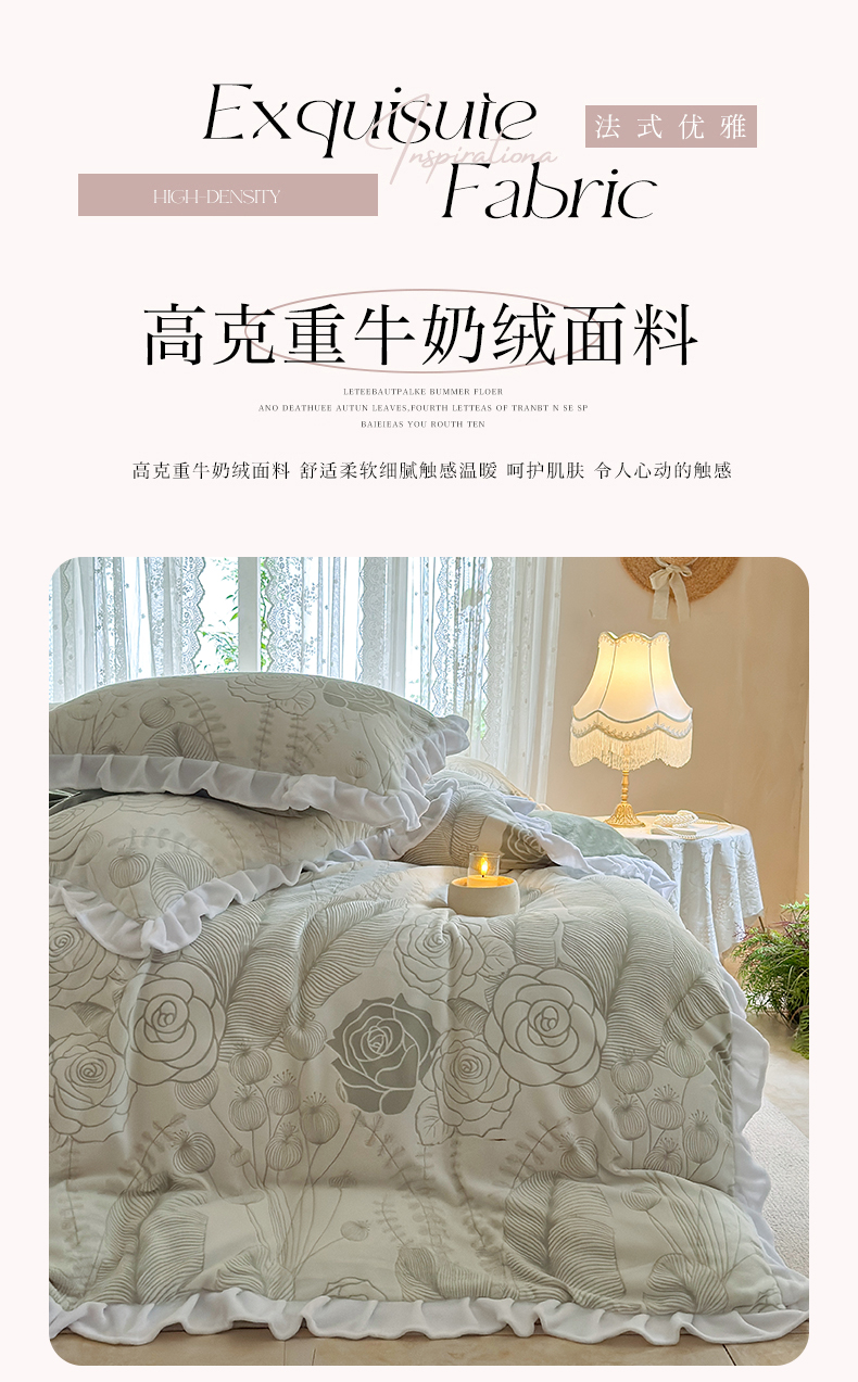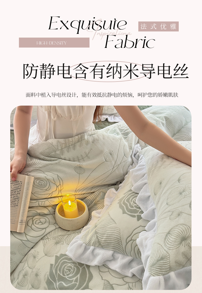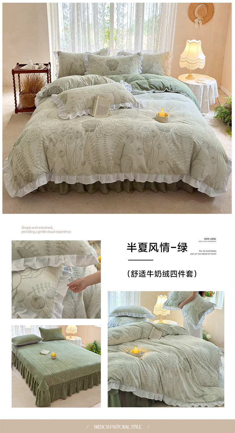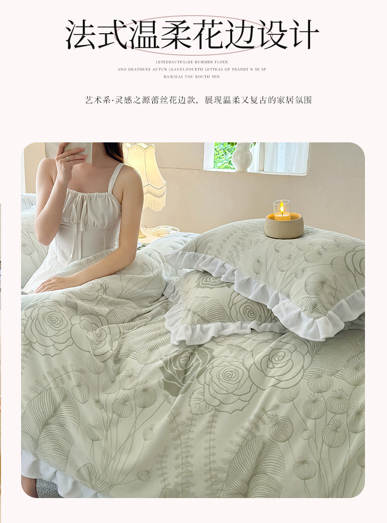 (总)野合家纺 2025新款加厚雕花牛奶绒床盖款四件套,不止玫瑰-咖,叶语悠然-绿,叶霖-灰,春和漫叶-兰,半夏风情-绿,半夏风情-粉,叶伴花香-灰,蝶恋花语-灰