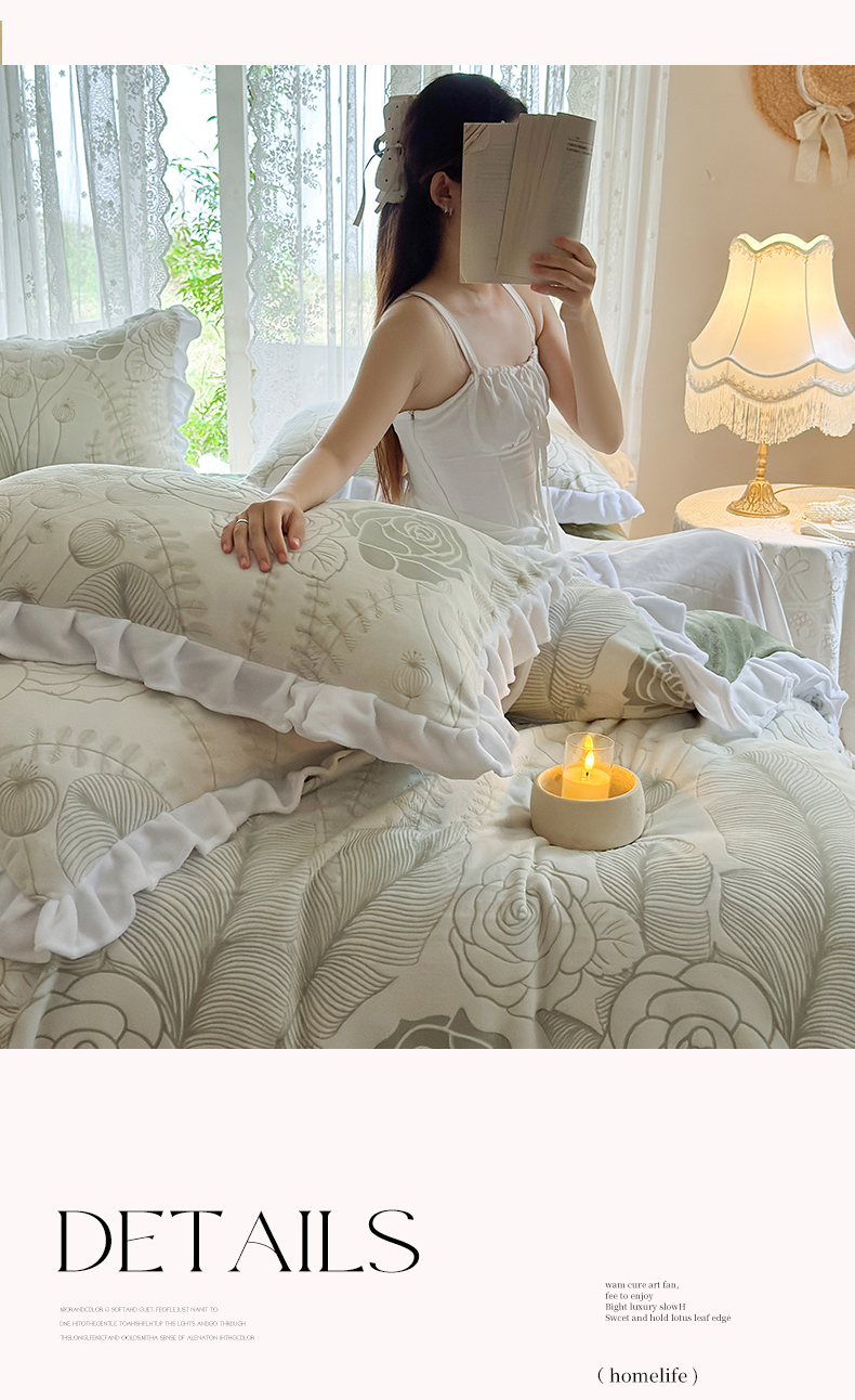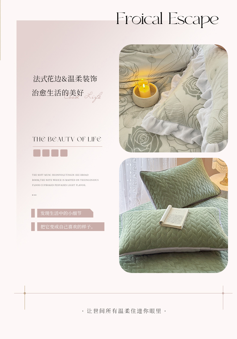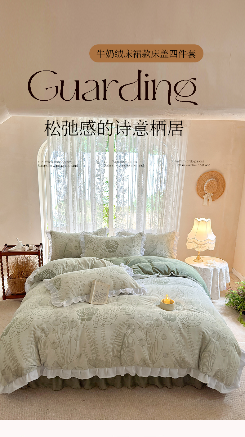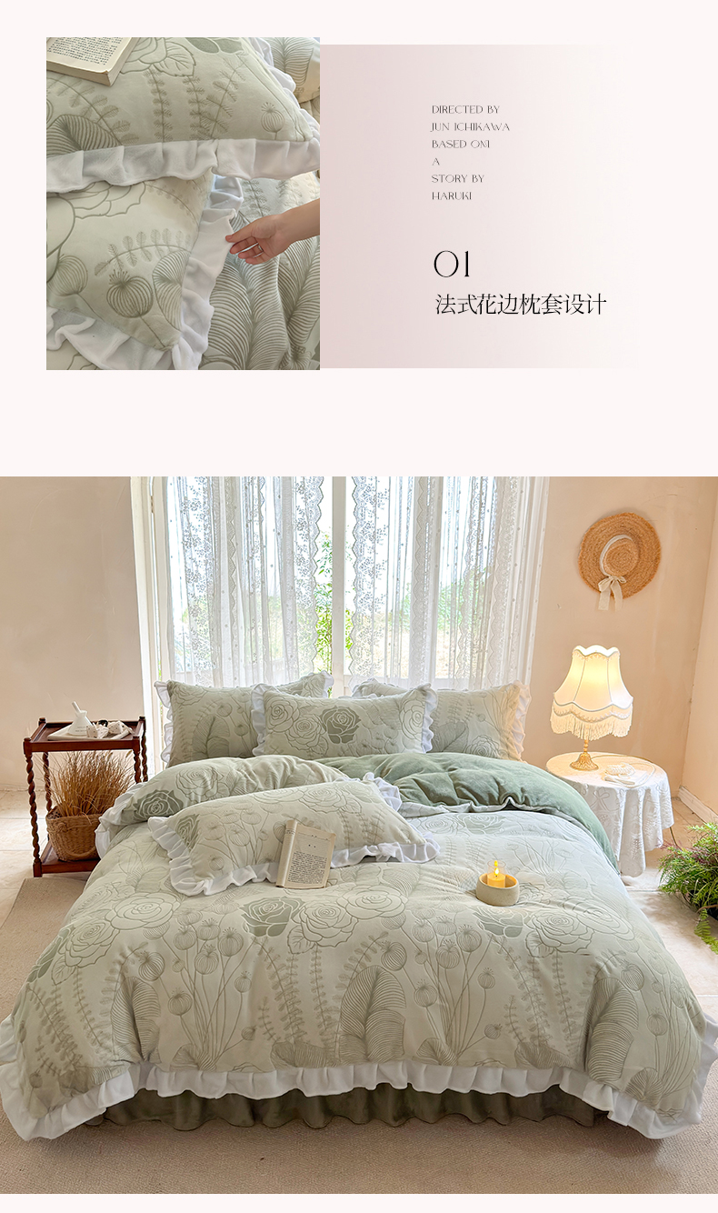 (总)野合家纺 2025新款加厚雕花牛奶绒床盖款四件套,不止玫瑰-咖,叶语悠然-绿,叶霖-灰,春和漫叶-兰,半夏风情-绿,半夏风情-粉,叶伴花香-灰,蝶恋花语-灰