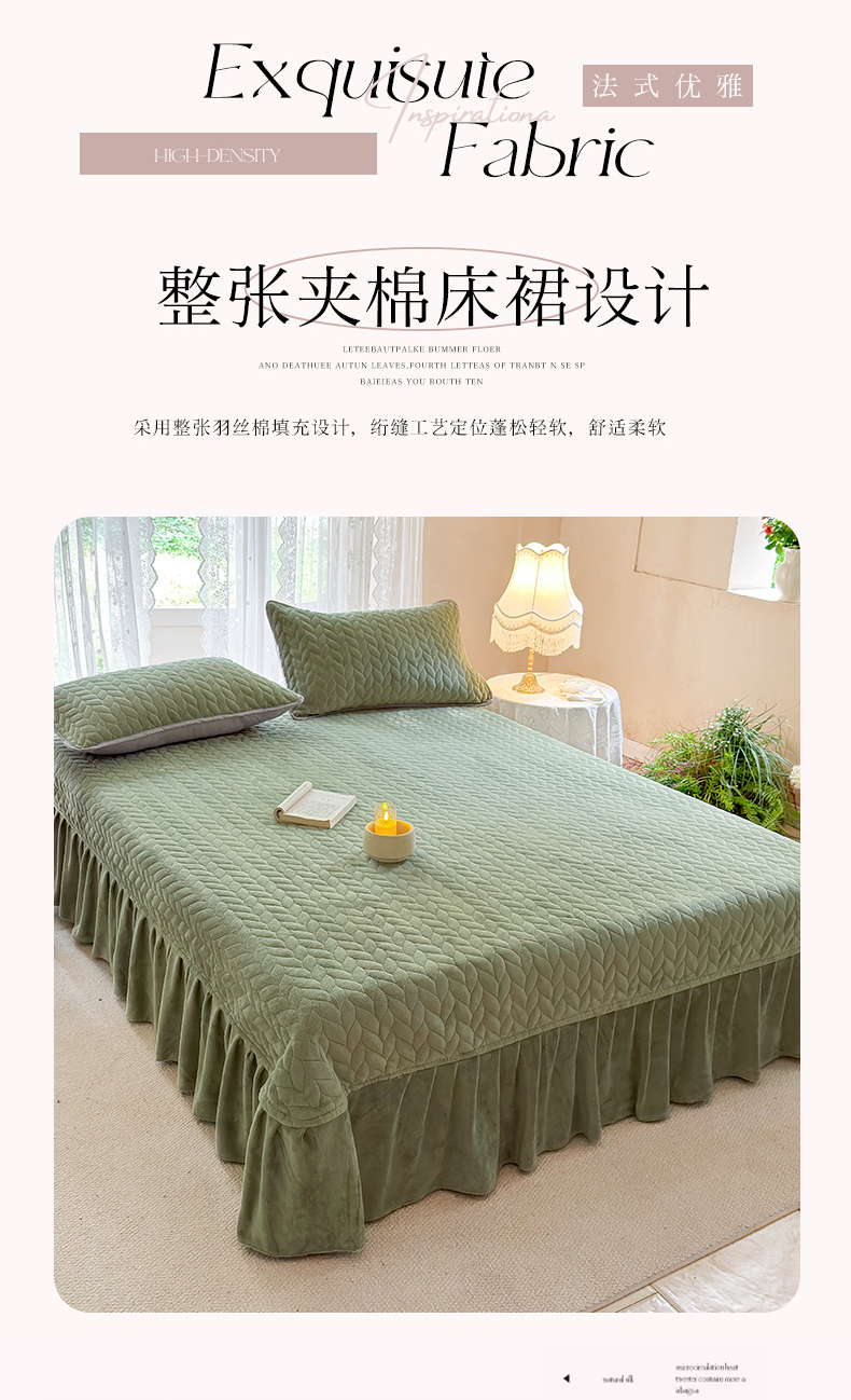 (总)野合家纺 2025新款牛奶绒夹棉床盖床裙款三件套-树叶,树叶-粉,树叶-灰,树叶-咖,树叶-兰,树叶-绿