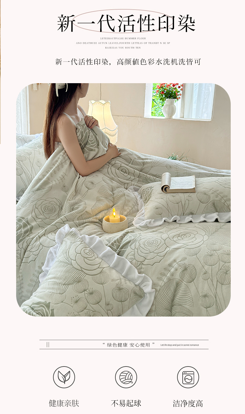 商品名称:野合家纺 2025新款加厚雕花牛奶绒床盖款四件套半夏风情-绿