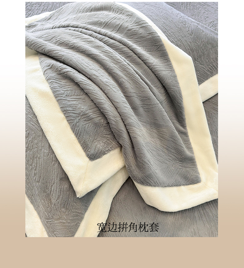 商品名称:2025新款高克重230克雕花绒纹理牛奶绒四件套秋冬轻奢拼角系列四件套-柏林晚风系列 柏林晚风-凇灰