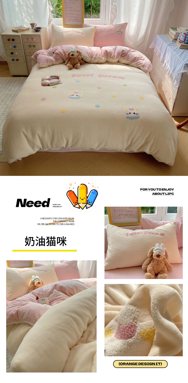 当前位置: 91家纺网 > 商品网购 > 床品套件 > 四件套 > 牛奶绒四件套 > 雨帆家纺 2025新款亲肤舒适可爱卡通牛奶绒毛巾绣四件套 奶油猫咪