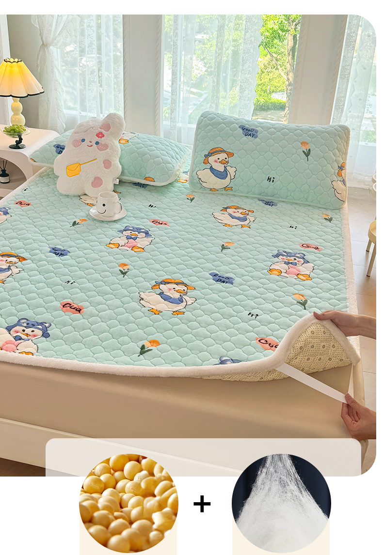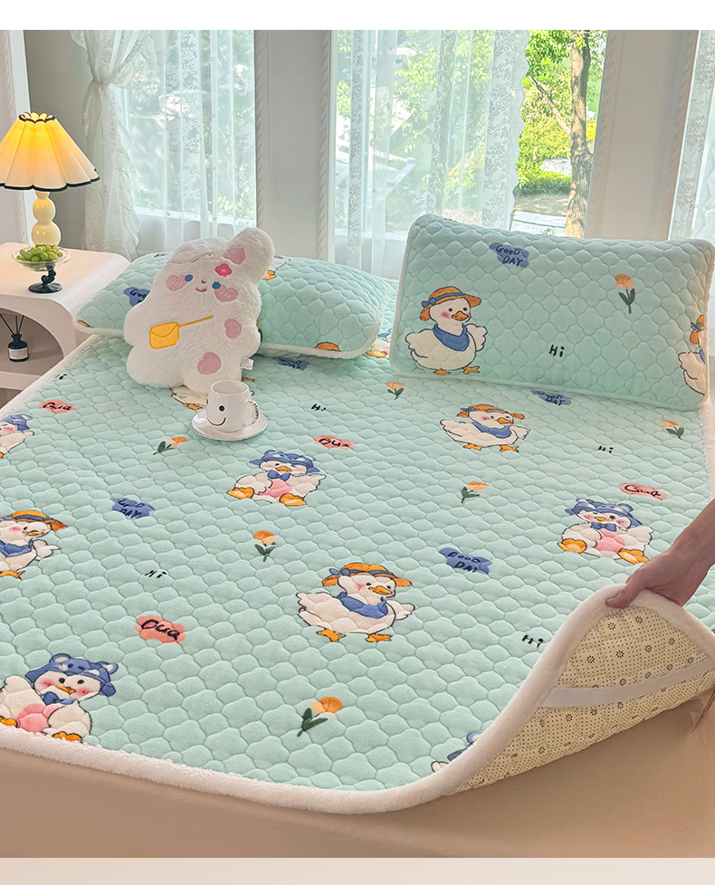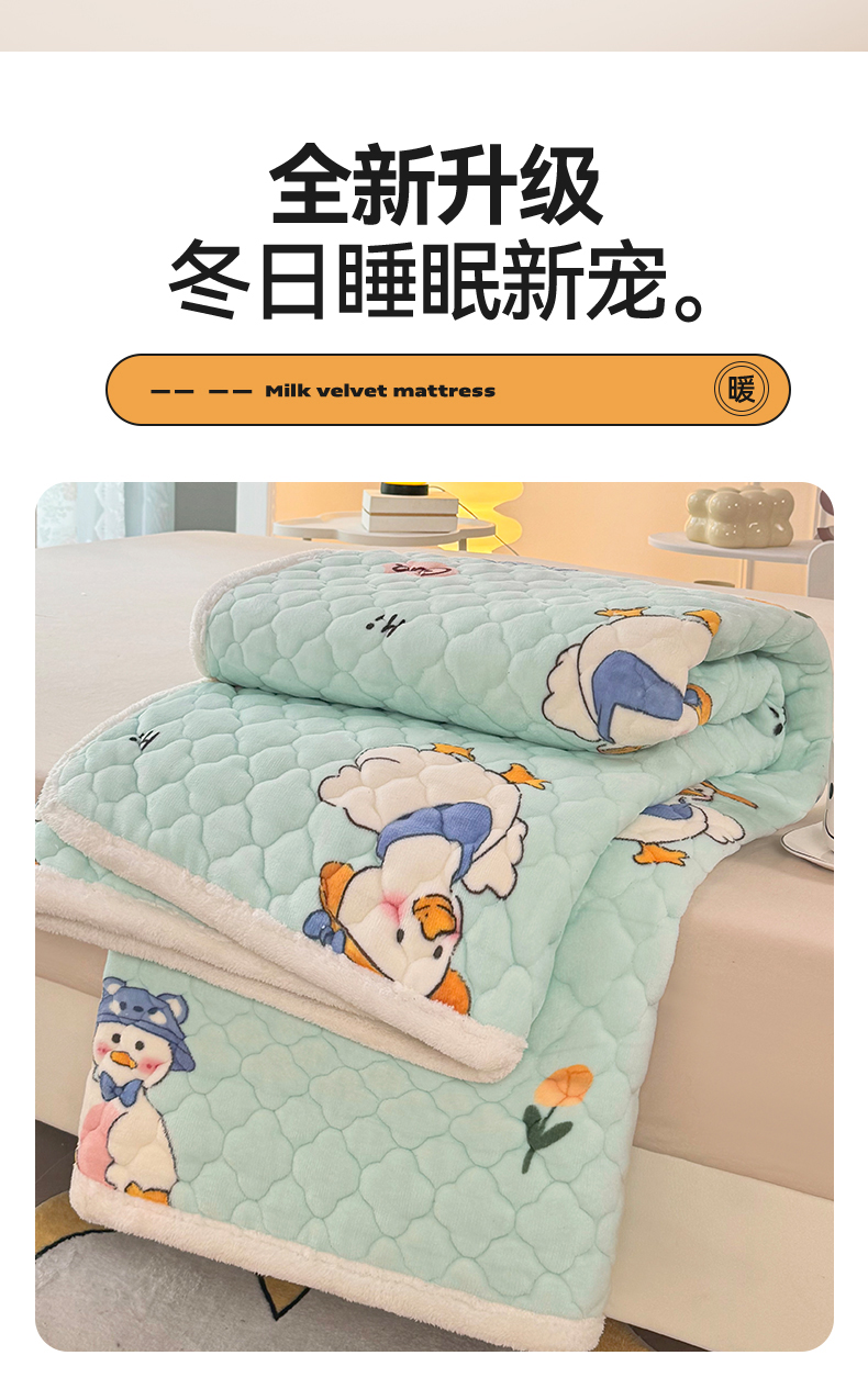 商品名称:优选 2025热款外贸跨境电商热销款冬季加厚牛奶绒印花床垫床垫学生单人宿舍上下铺 顽皮小鸭