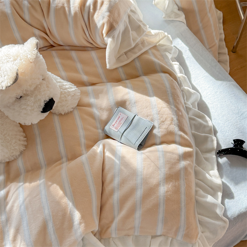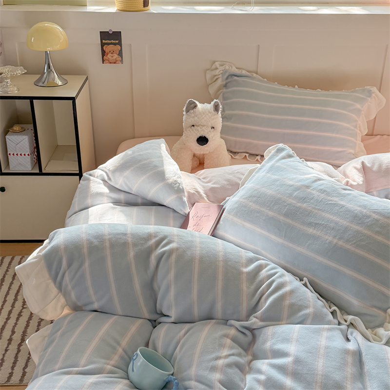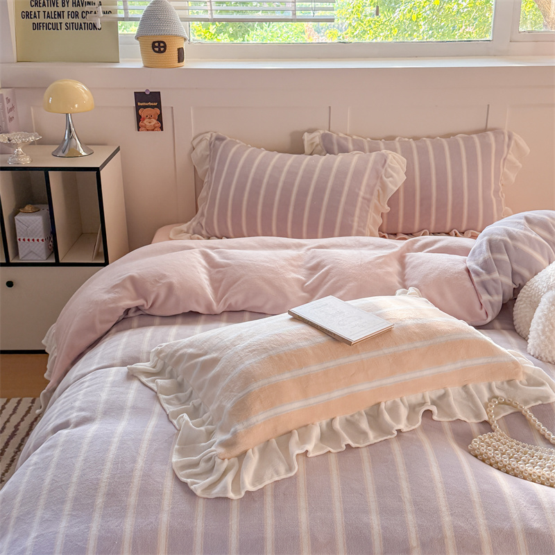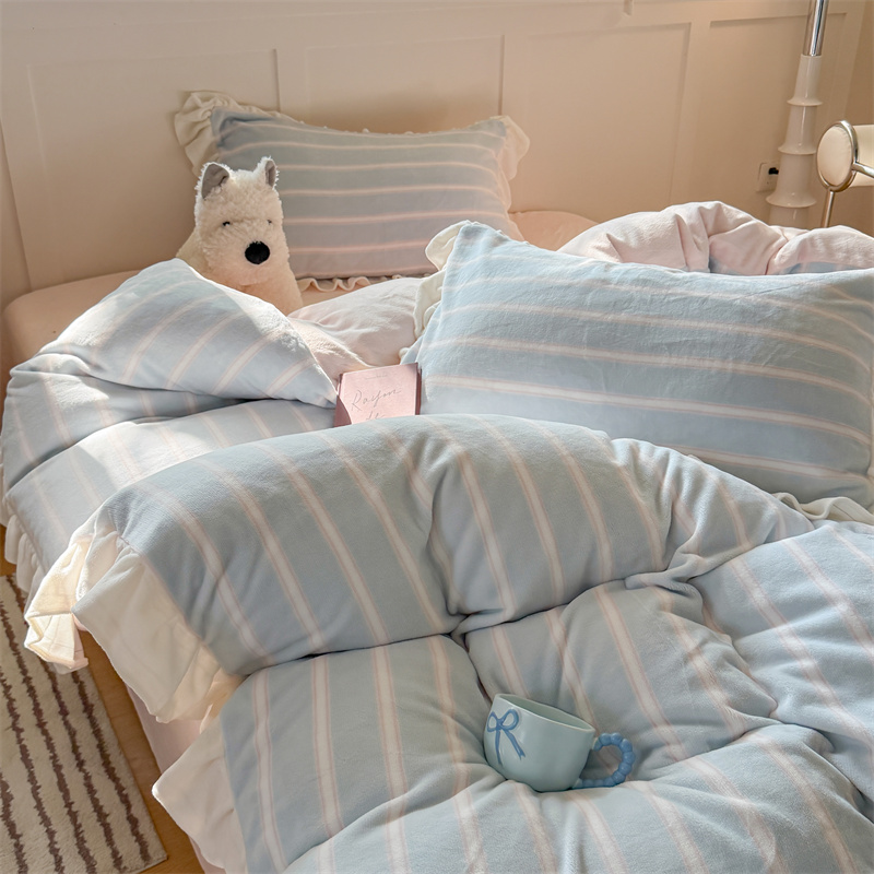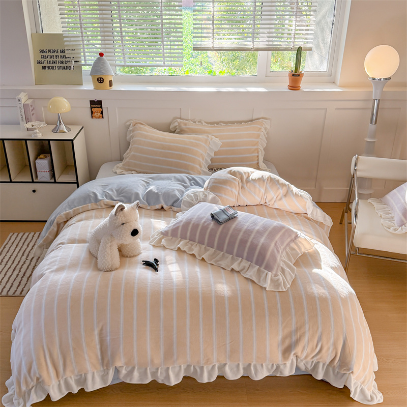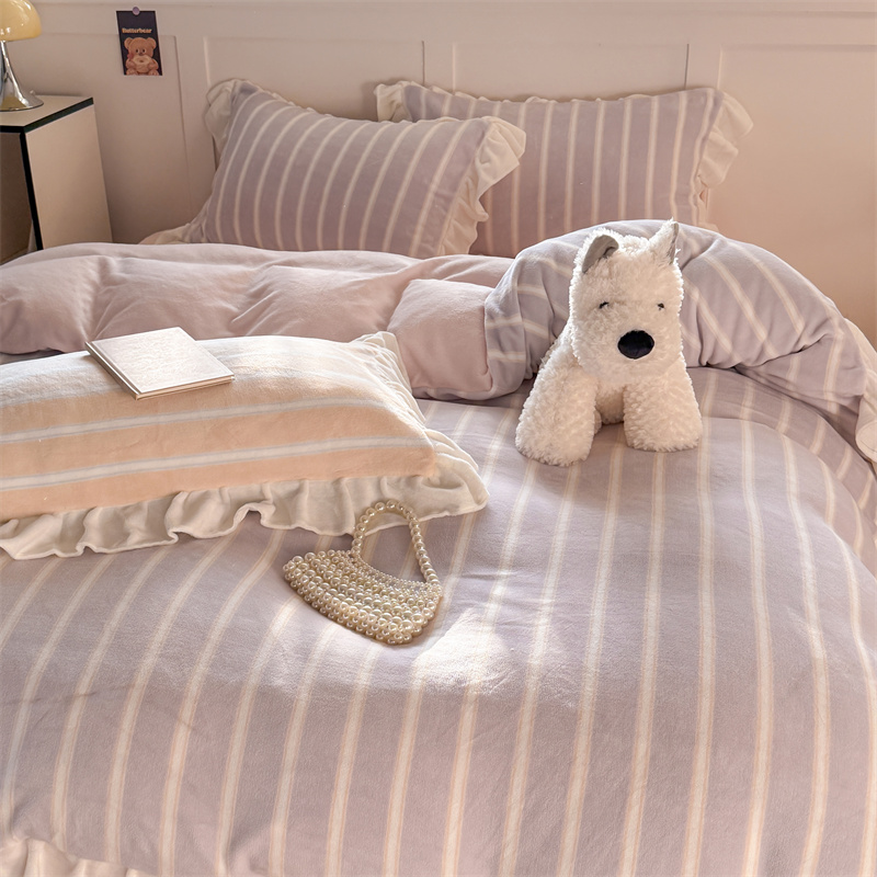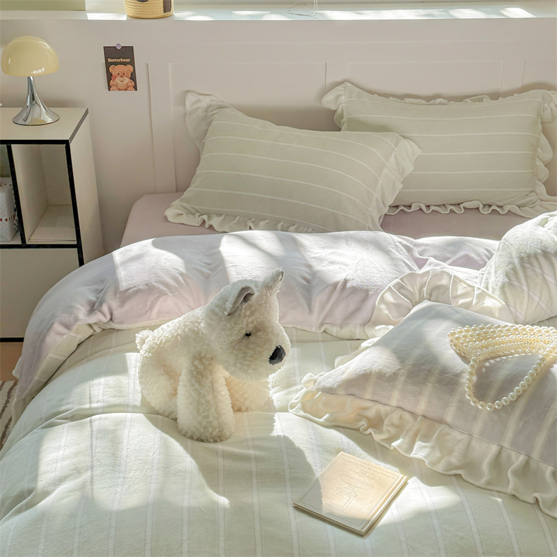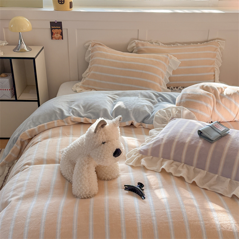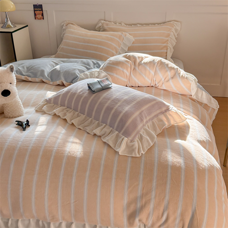 当前位置: 91家纺网 > 商品网购 > 床品套件 > 四件套 > 牛奶绒四件套 > (总)潘朵拉家纺 2025条纹花边牛奶绒四件套