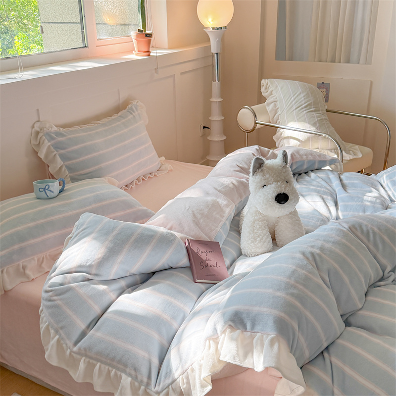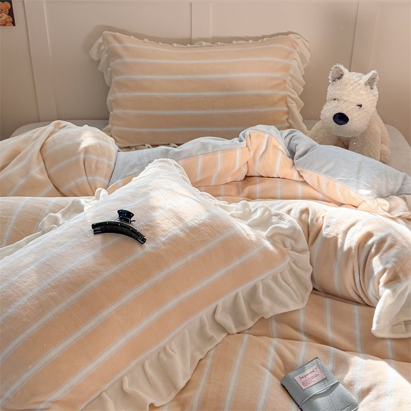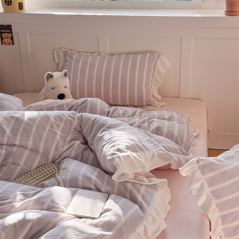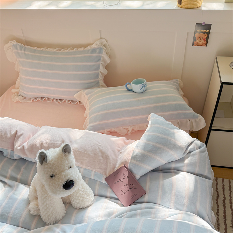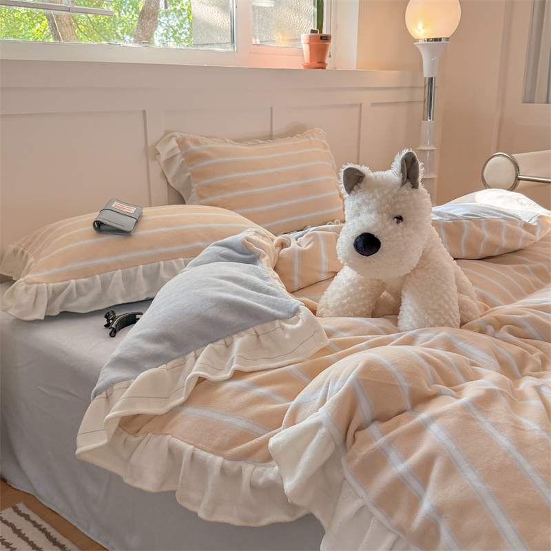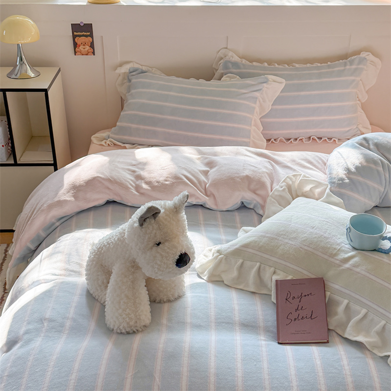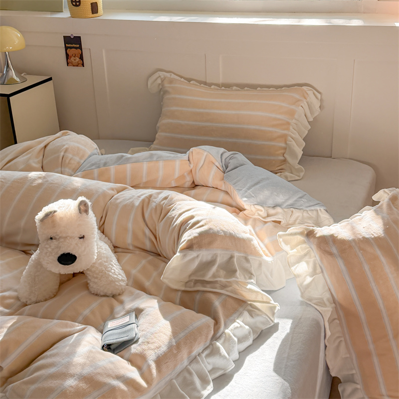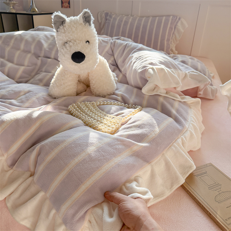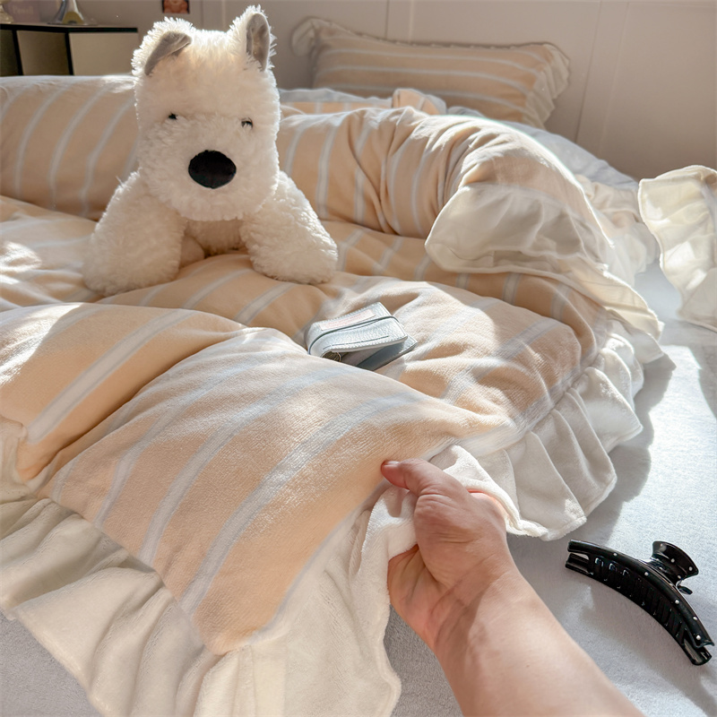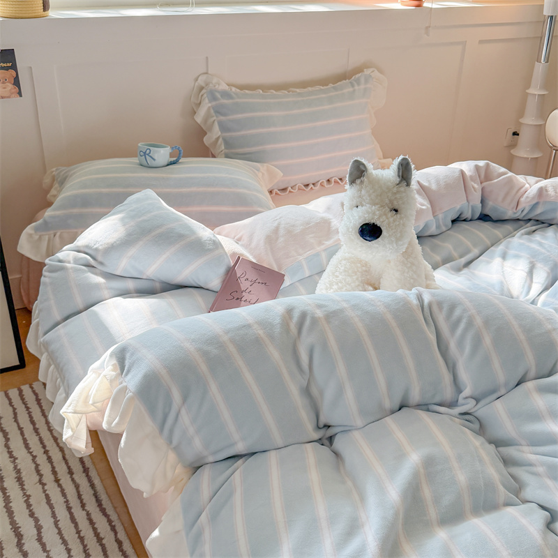 当前位置: 91家纺网 > 商品网购 > 床品套件 > 四件套 > 牛奶绒四件套 > (总)潘朵拉家纺 2025条纹花边牛奶绒四件套