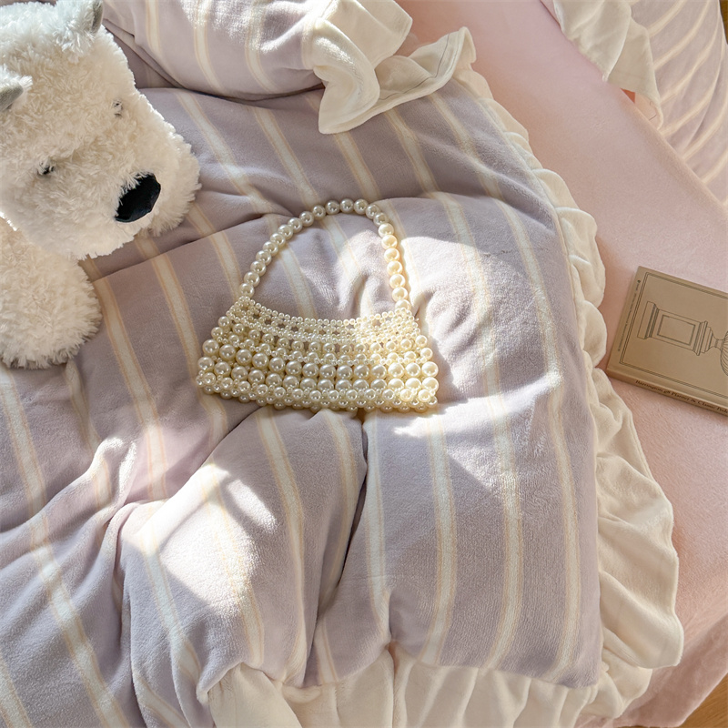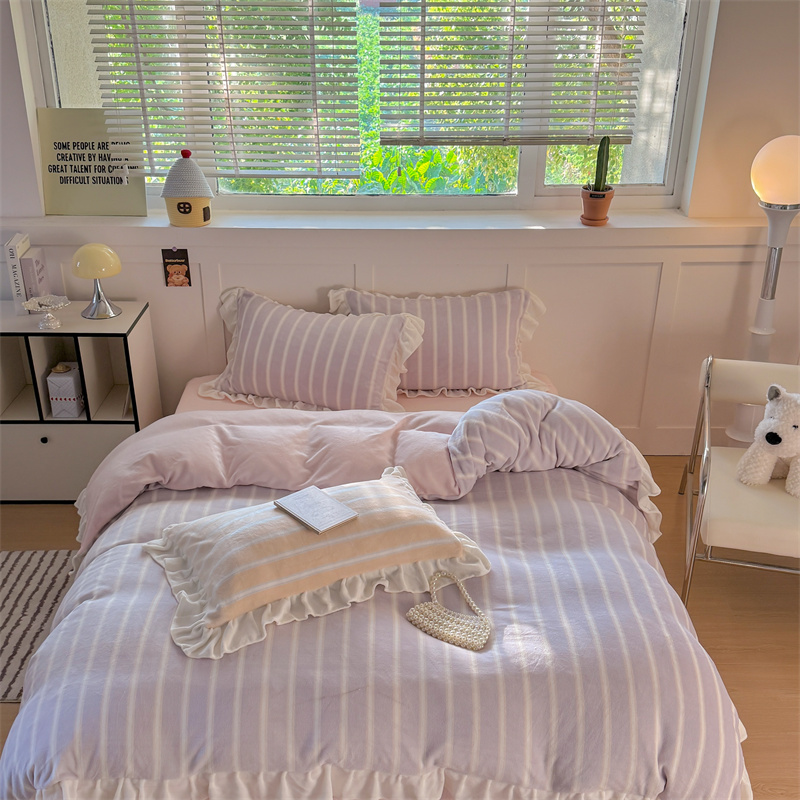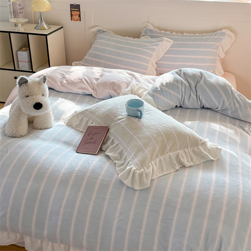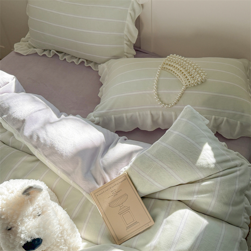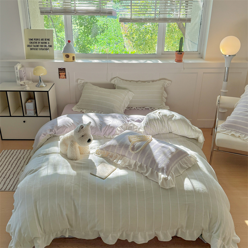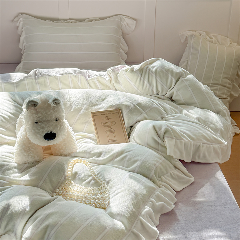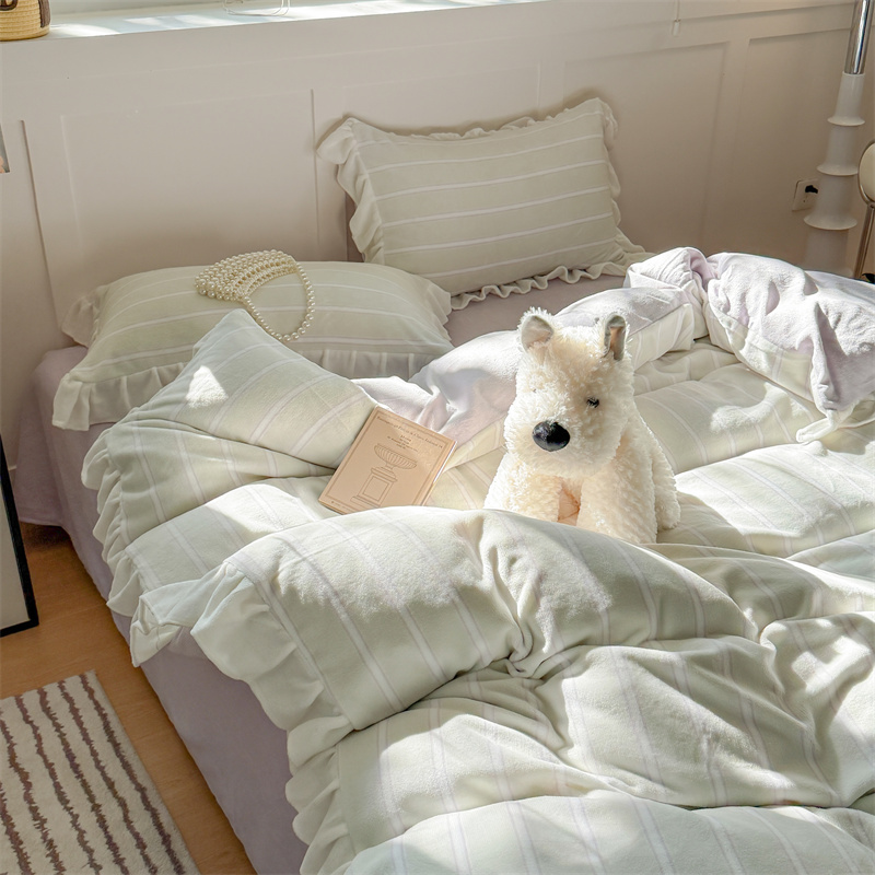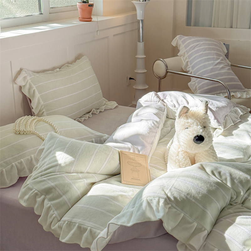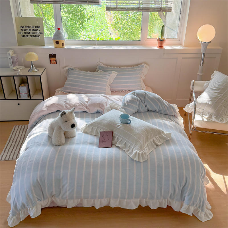 当前位置: 91家纺网 > 商品网购 > 床品套件 > 四件套 > 牛奶绒四件套 > (总)潘朵拉家纺 2025条纹花边牛奶绒四件套