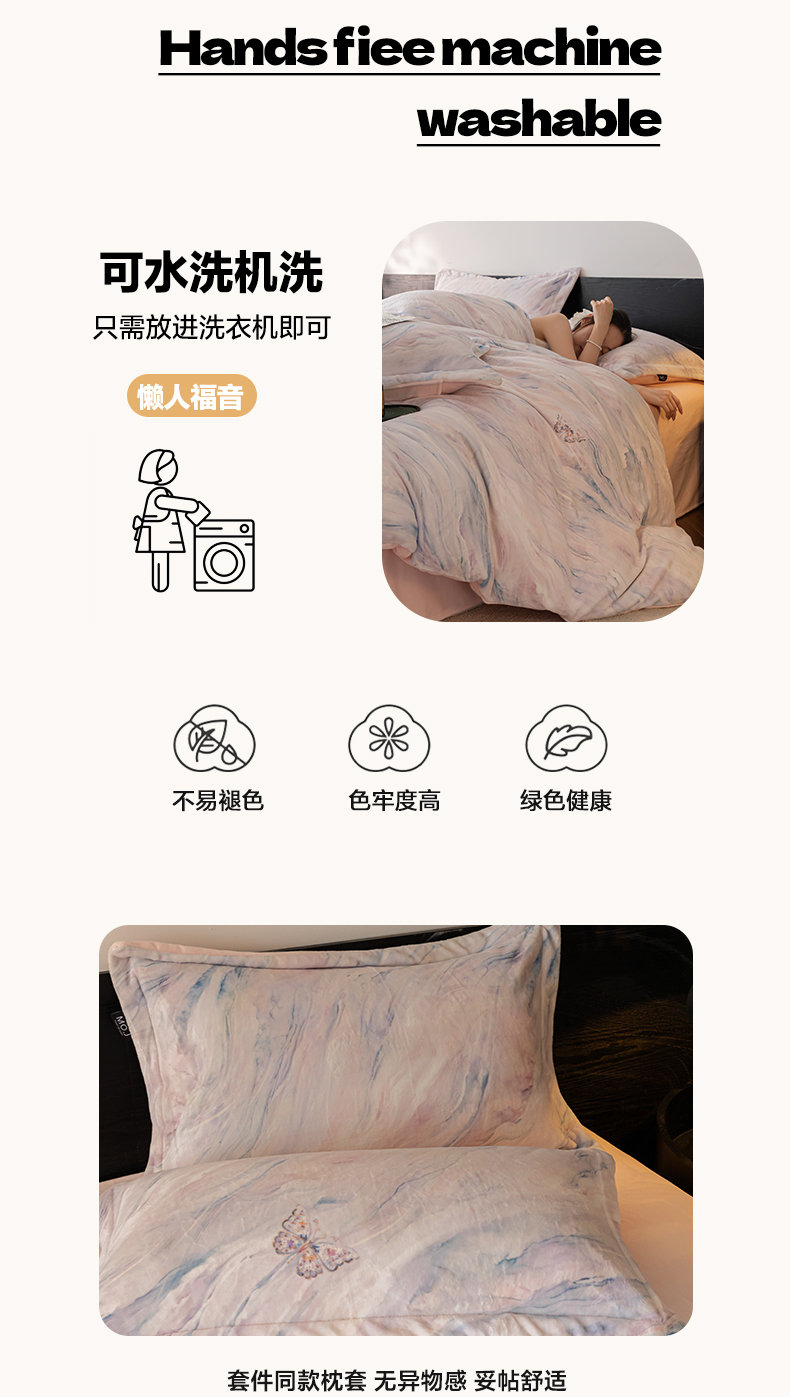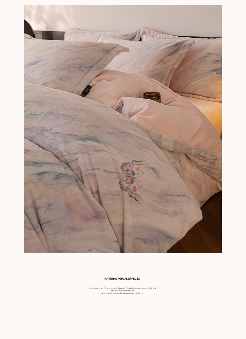 当前位置: 91家纺网 > 商品网购 > 床品套件 > 四件套 > 其它四件套 > 寐绸家纺 2025秋冬新款230g牛奶绒数码印花四件套 数码四件套-梦幻彩蝶