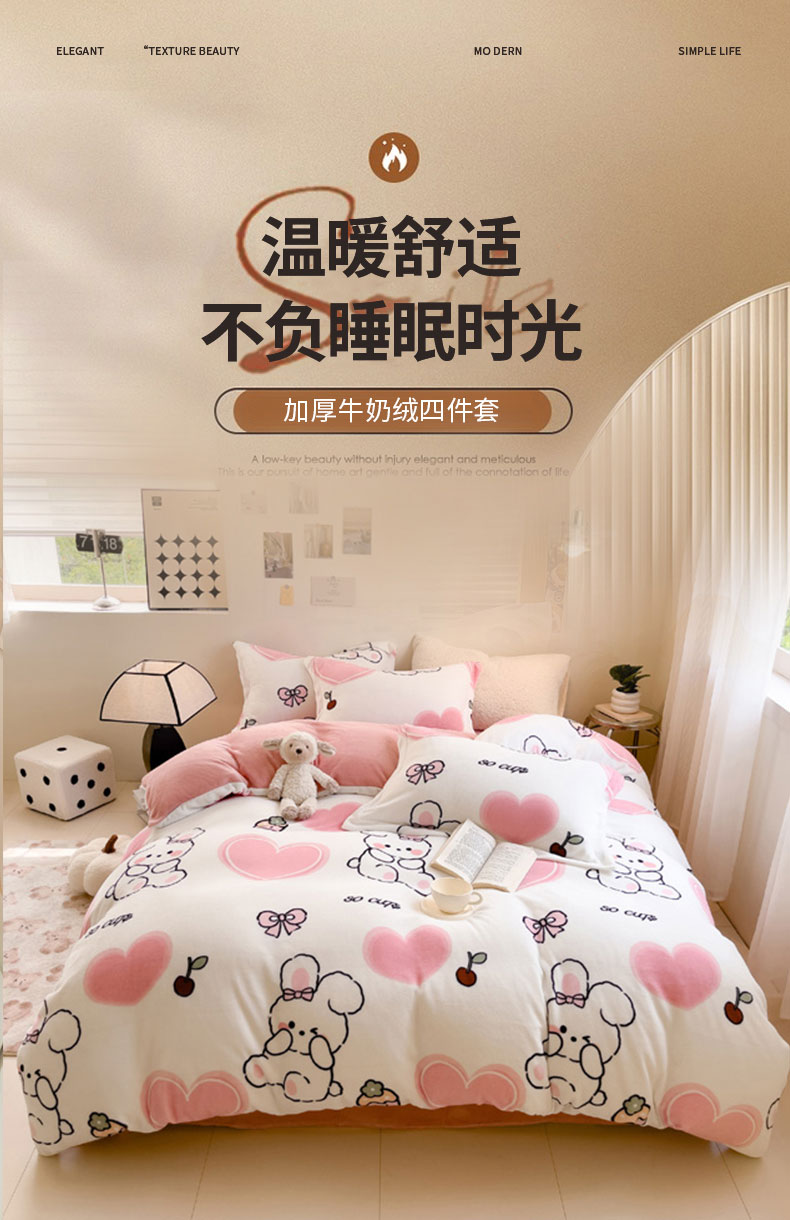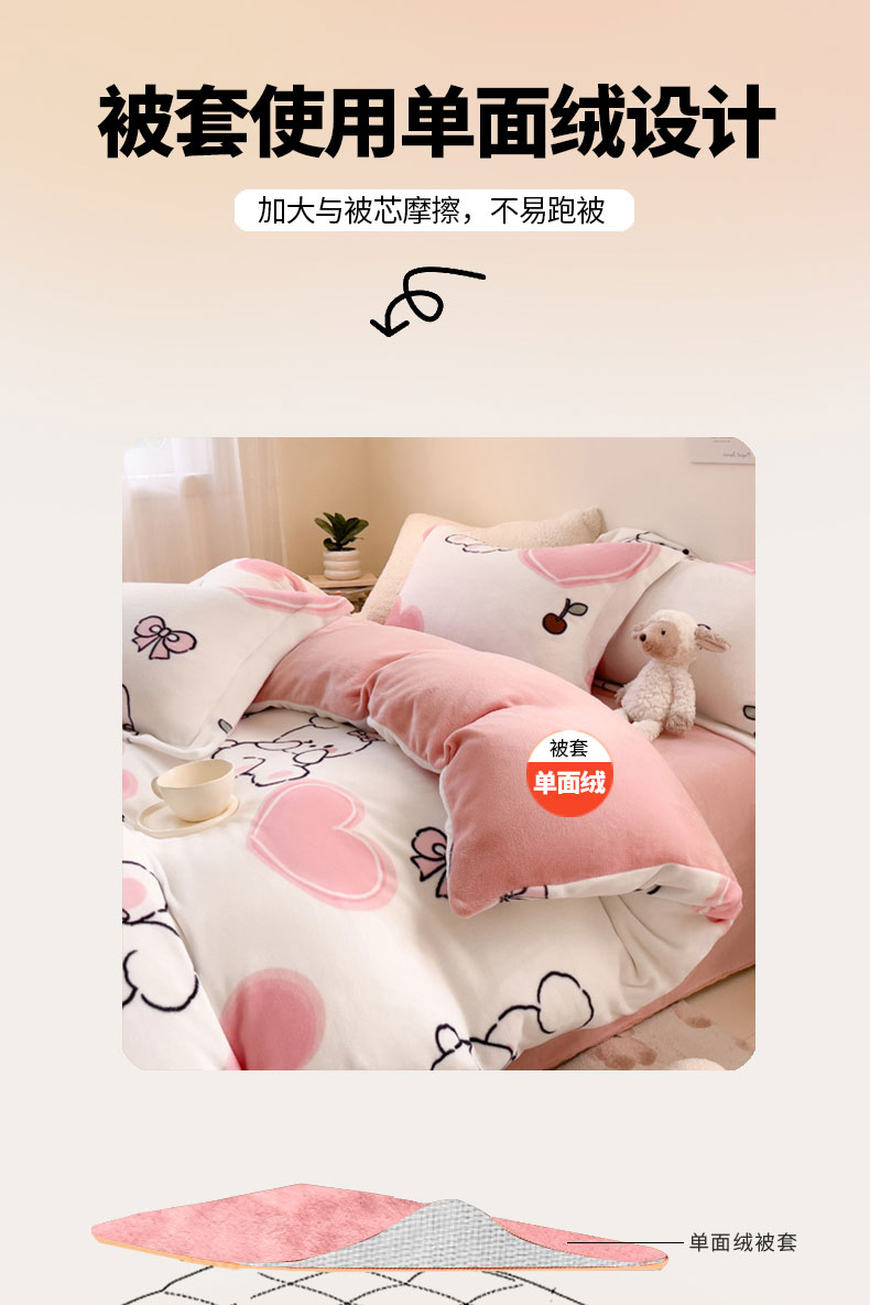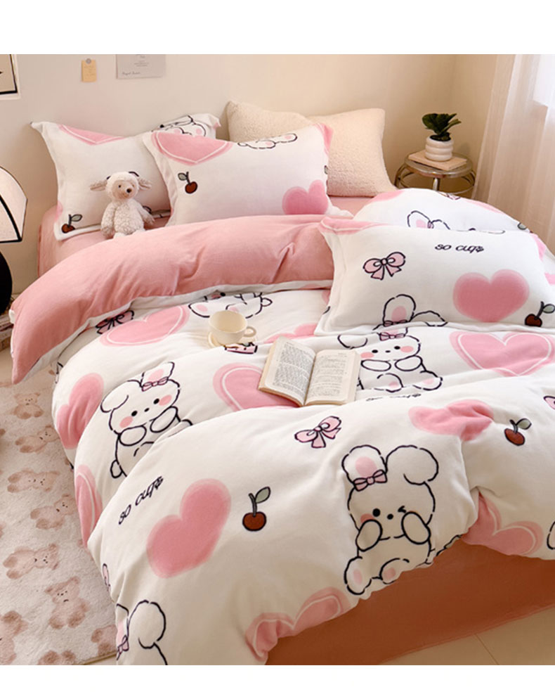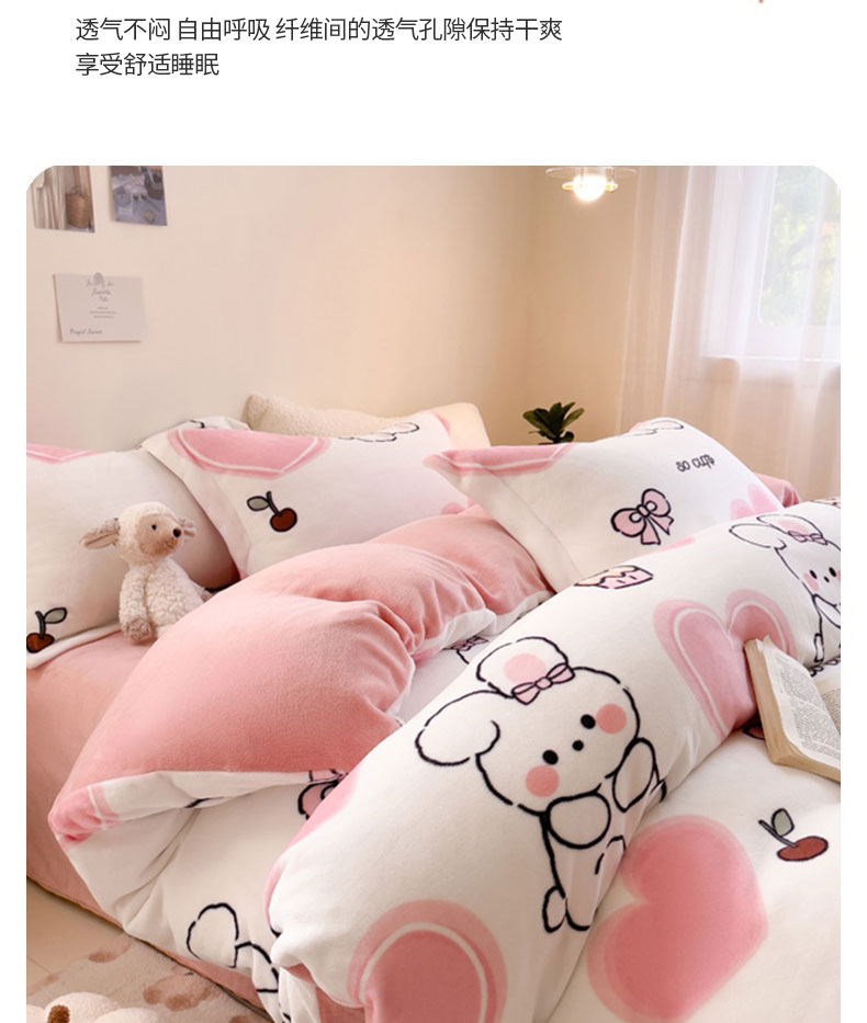 当前位置: 91家纺网 > 商品网购 > 床品套件 > 四件套 > 牛奶绒四件套 > 宅部落 2025新款高克重牛奶绒四件套法莱绒三件套单被套 爱心小兔