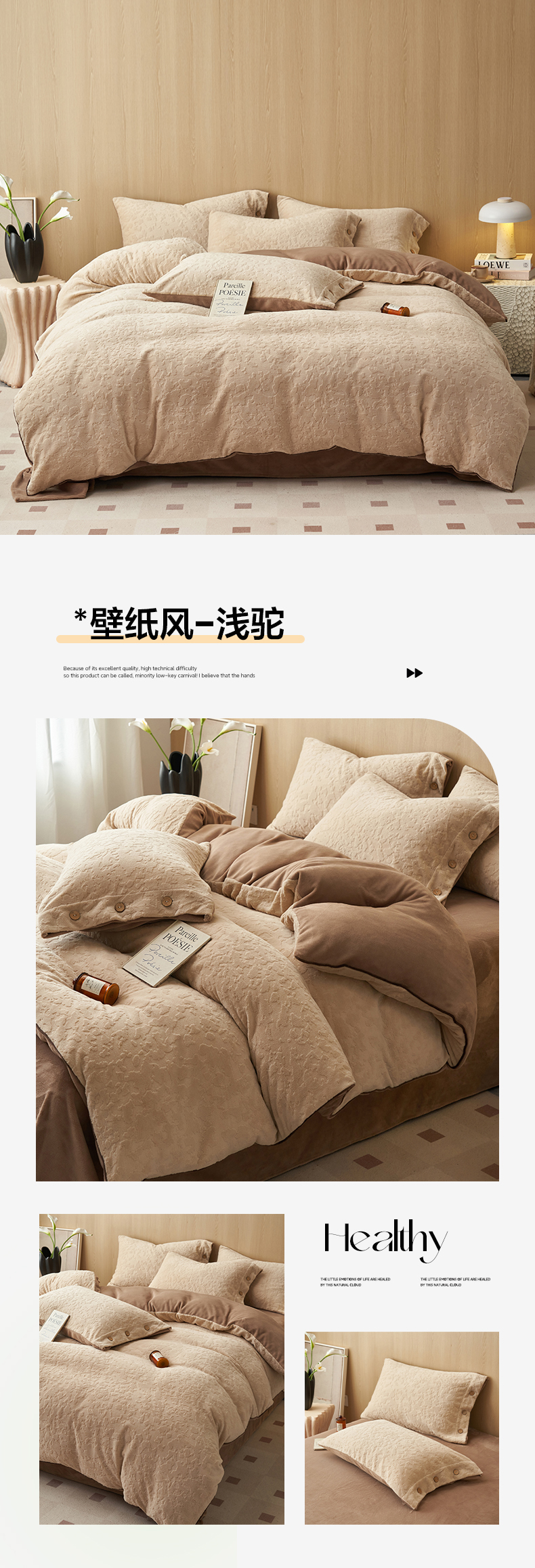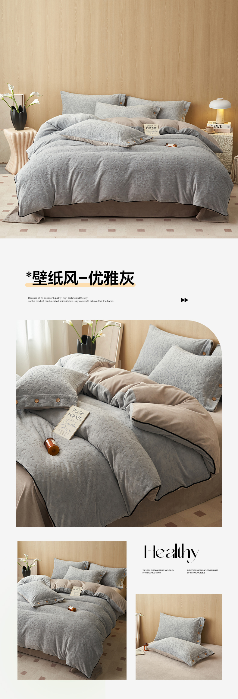 当前位置: 91家纺网 > 商品网购 > 床品套件 > 四件套 > 牛奶绒四件套 > 寐绸家纺 2025秋冬新款230g牛奶绒壁纸风雕花四件套 壁纸风-优雅灰
