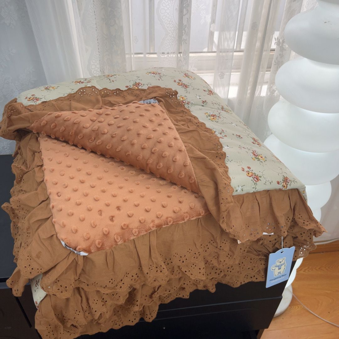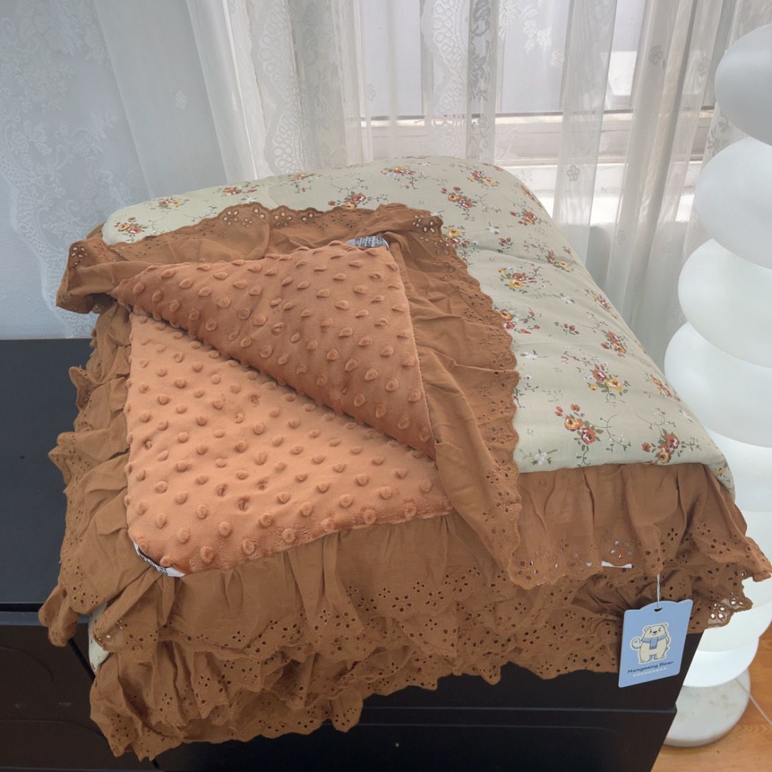 (总)暖居 2026新款一面纯棉一面绒床盖+同款纯棉豆豆被跑量,兰意,冰淇淋,绿芽,奶油波罗,森系绿野,疏影,樱桃密果,黑巧豹纹,小花,星月