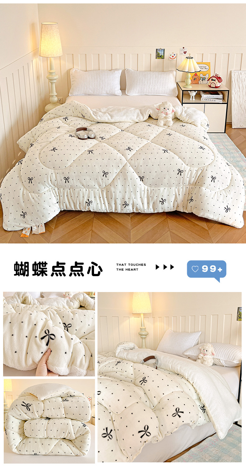 铺尚美家纺 2025新款牛奶绒羊羔绒印花清新款冬被子被芯 黑珍珠