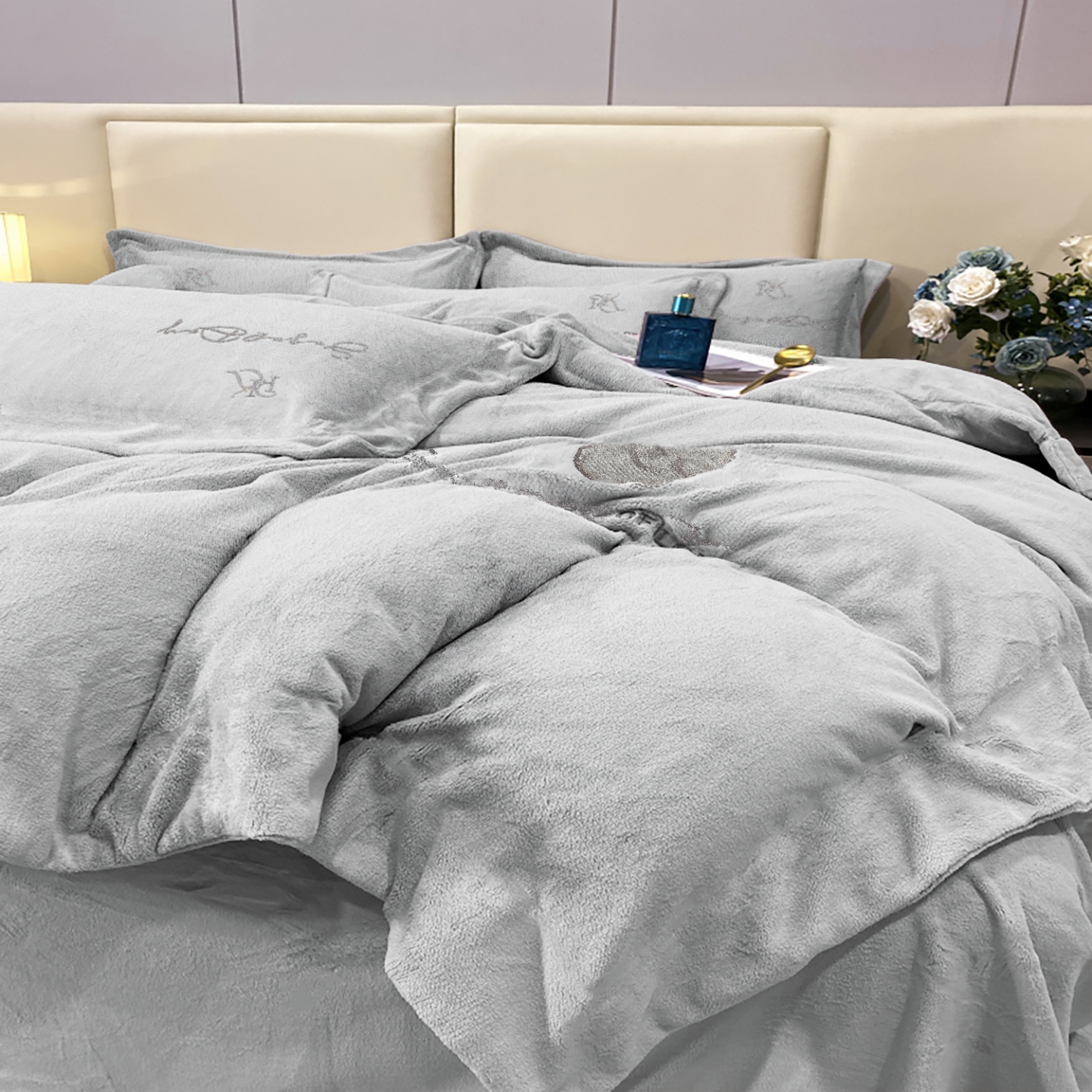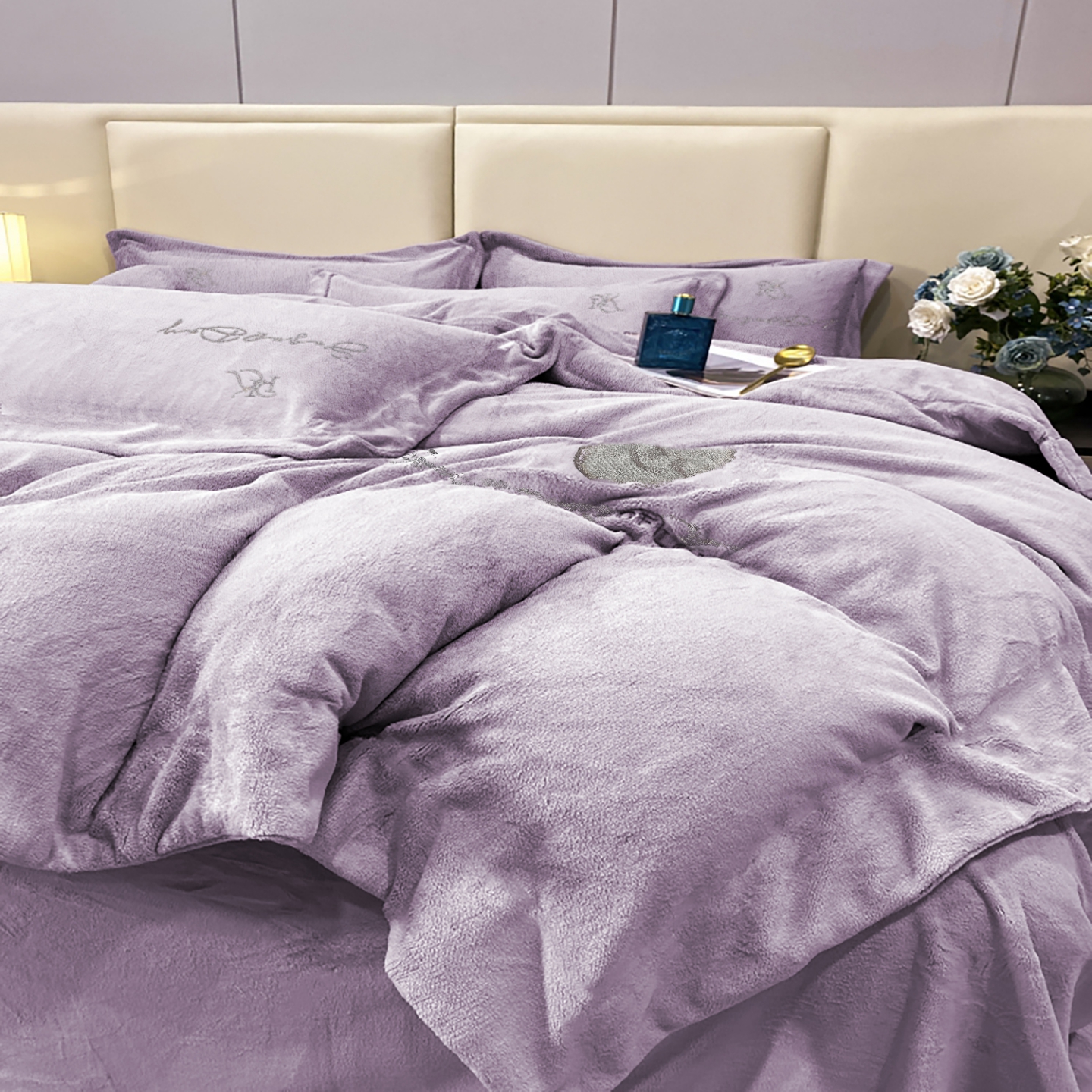 玖玖爱家纺 2025新款高克重婴儿绒刺绣四件套-绮梦 绮梦-紫