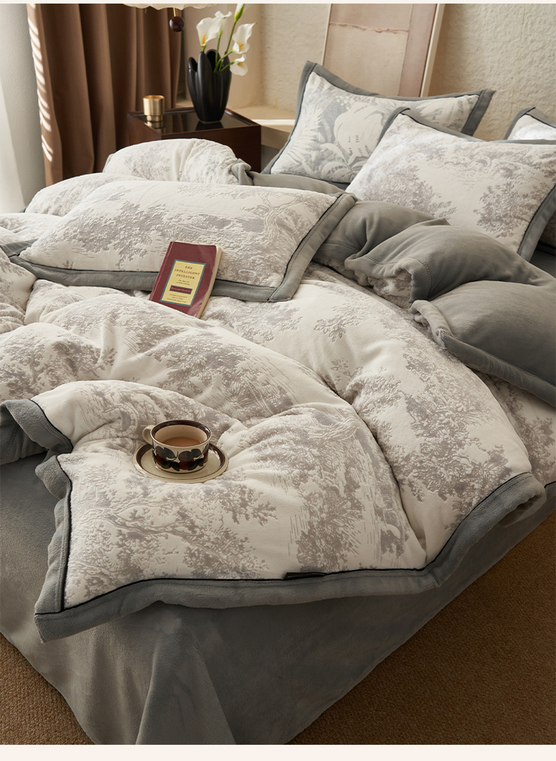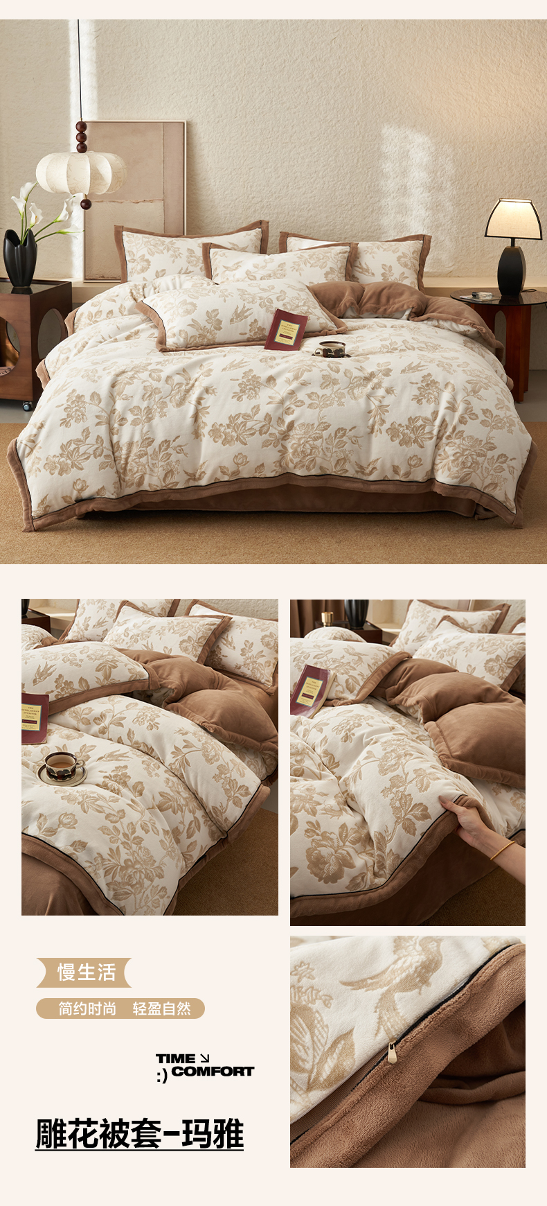 • 91家纺网 家纺一手货源 找家纺 寐绸家纺 2025新款牛奶绒染色雕花单被套 雕花被套-年轮