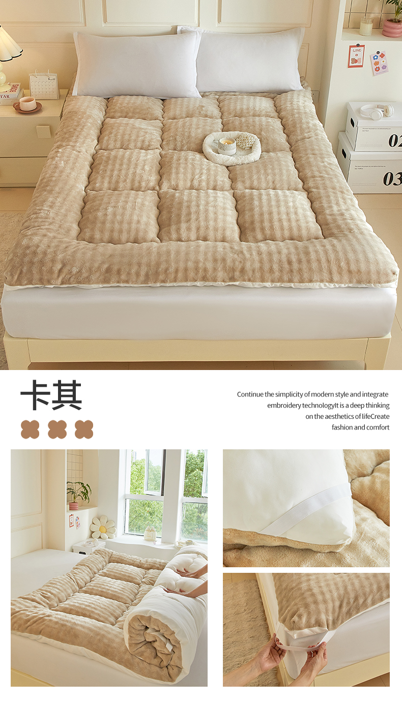 柒尚 2025新款A类兔兔绒亲肤磨毛羽丝棉垫 卡其,卡其