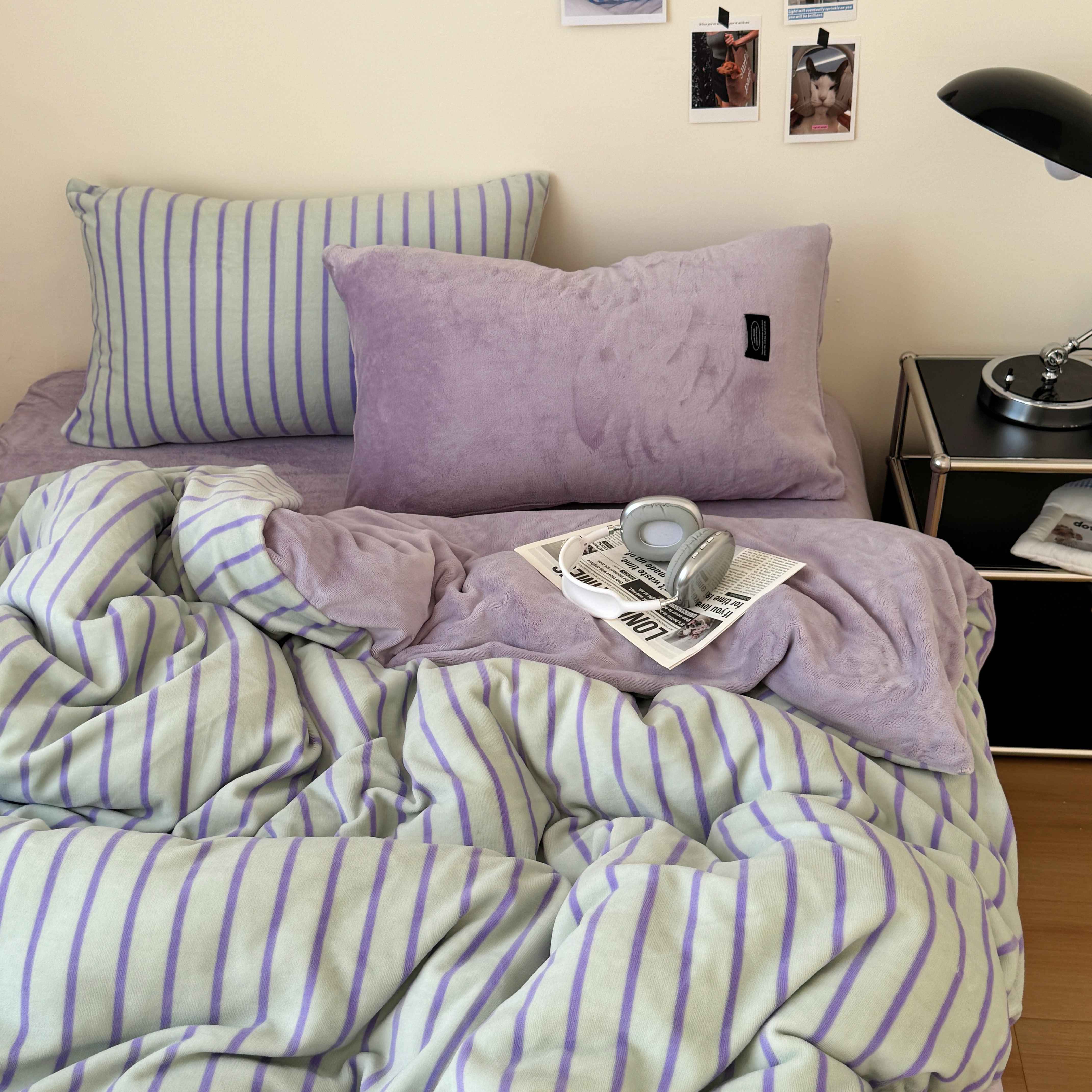 桃喜 2025新款条纹牛奶绒系列四件套(会员-5) 青缇葡萄