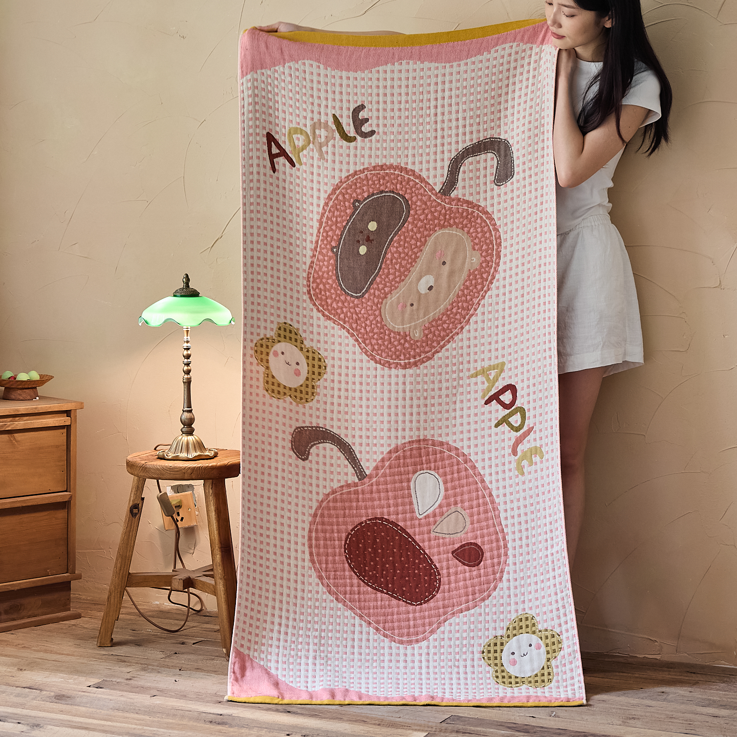 (总)沐瑟家纺 2026新款全棉四层纱布床盖-星星和心情系列,心情-粉色,心情-灰蓝,心情-卡其,星星-黄色,星星-灰色,星星-蓝色,星星-紫色,组合