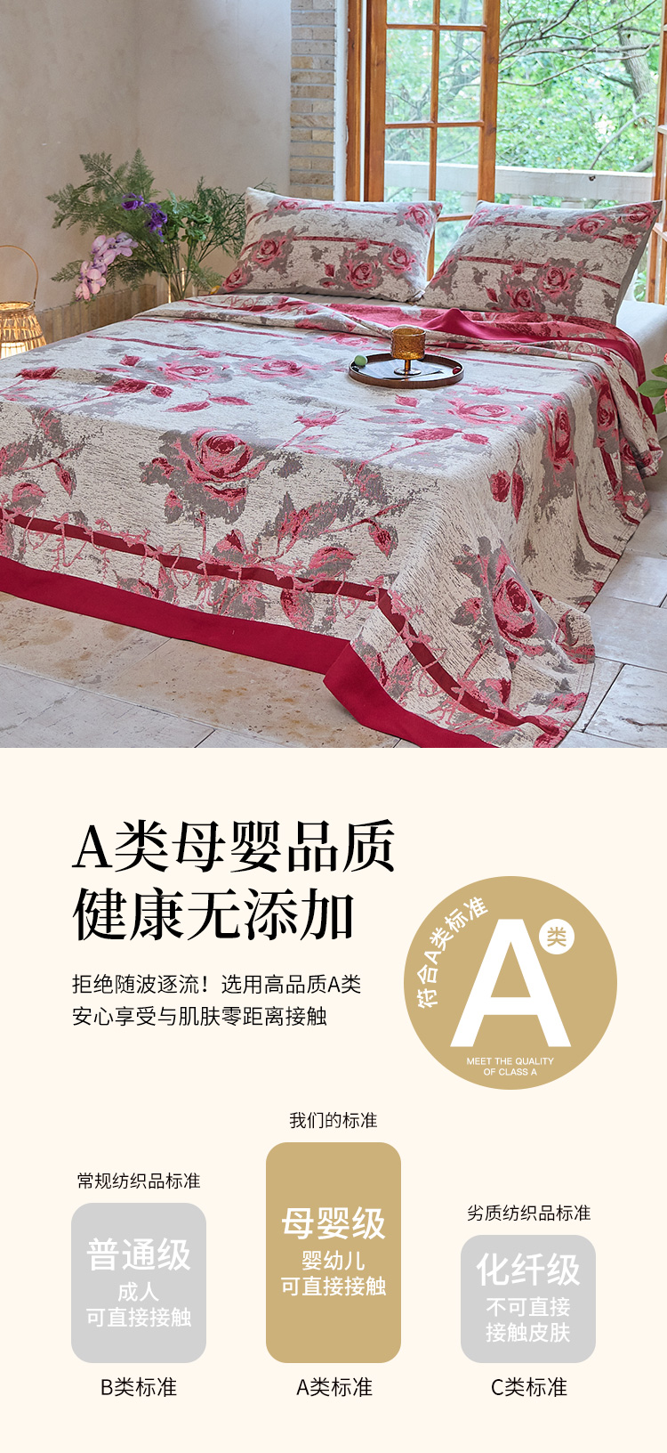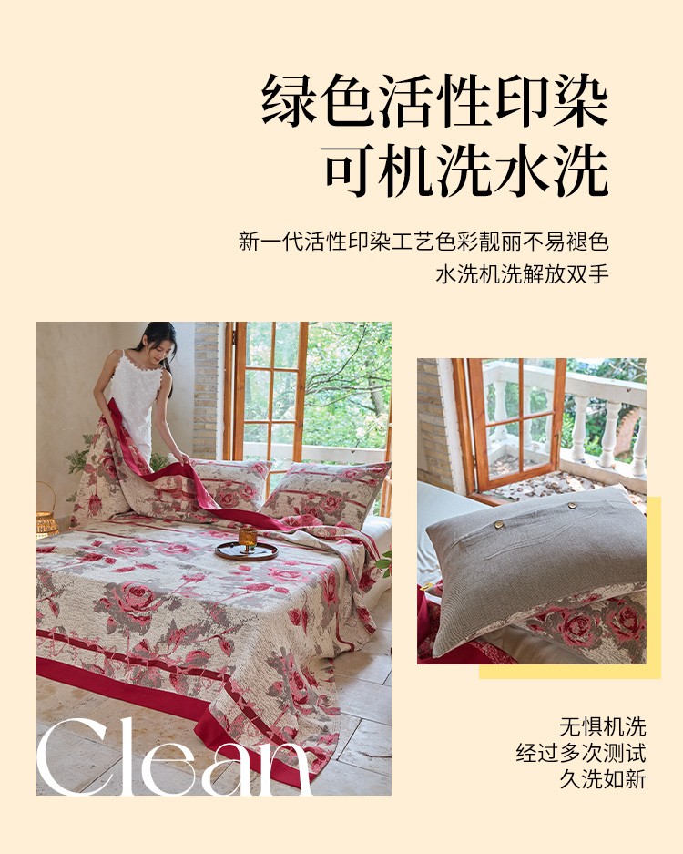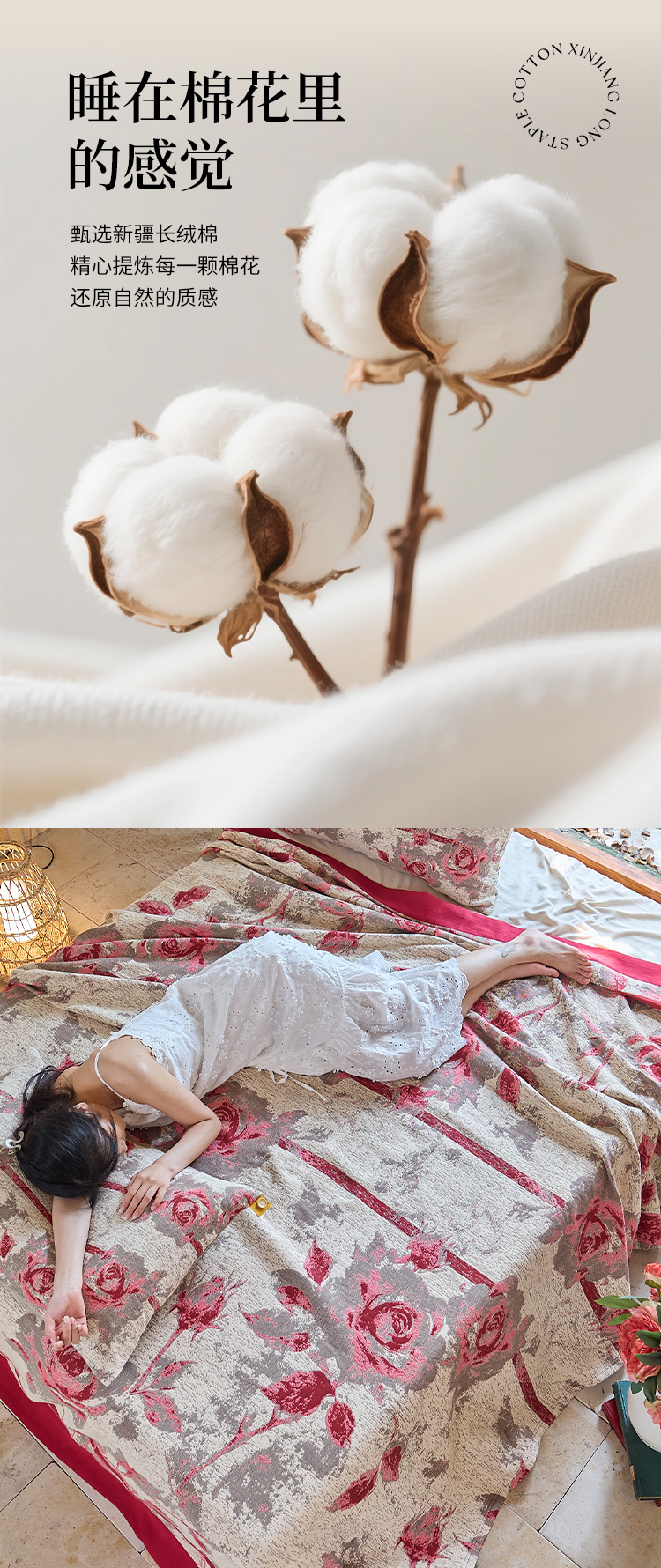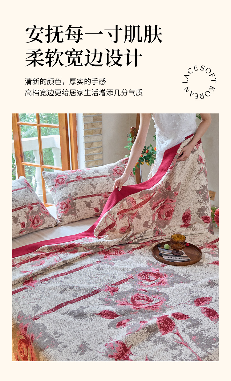 商品名称:沐瑟家纺 2025新款全棉纱布细纱布大床盖毯子床盖三件套LV系列 玫瑰之约