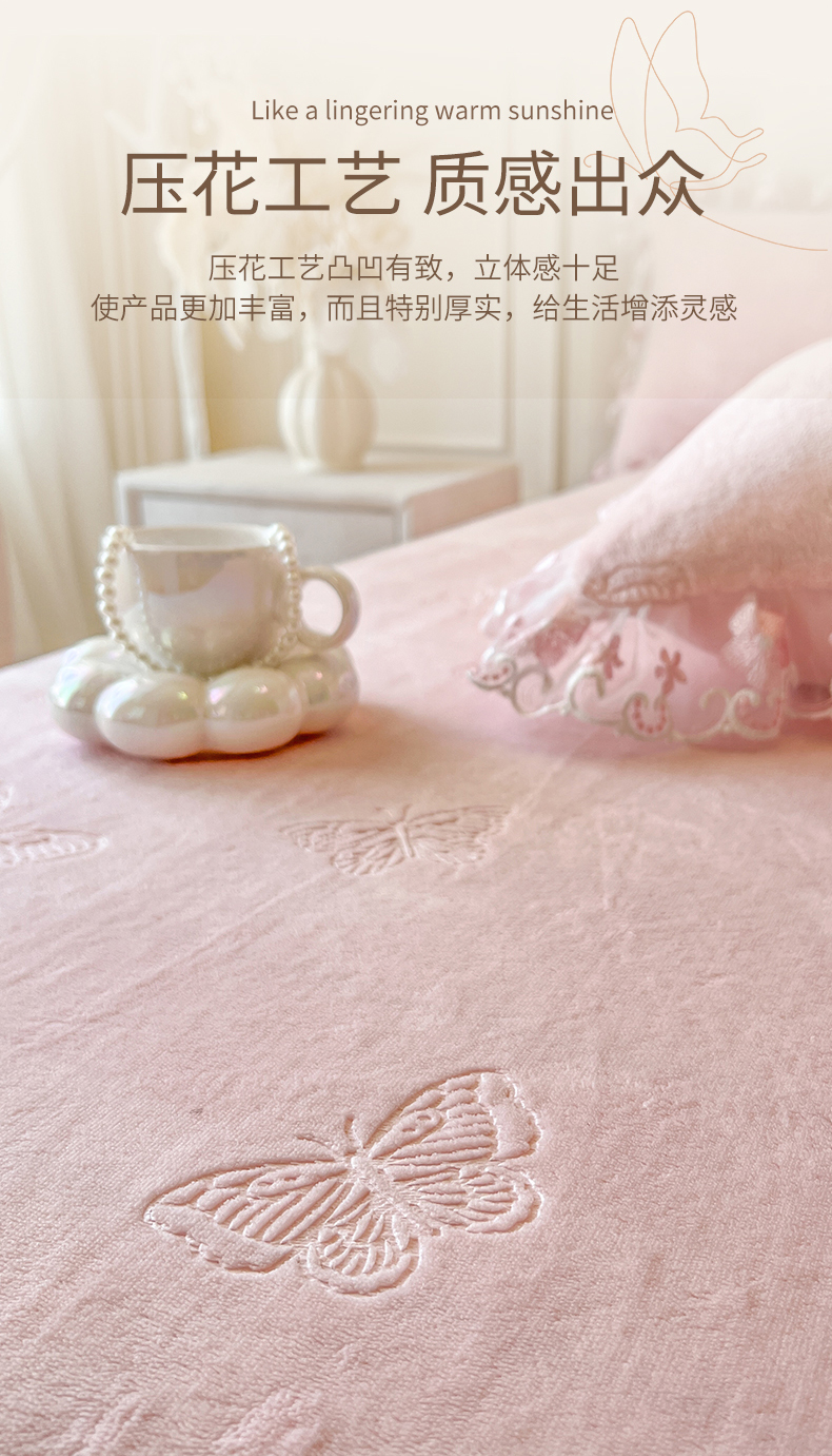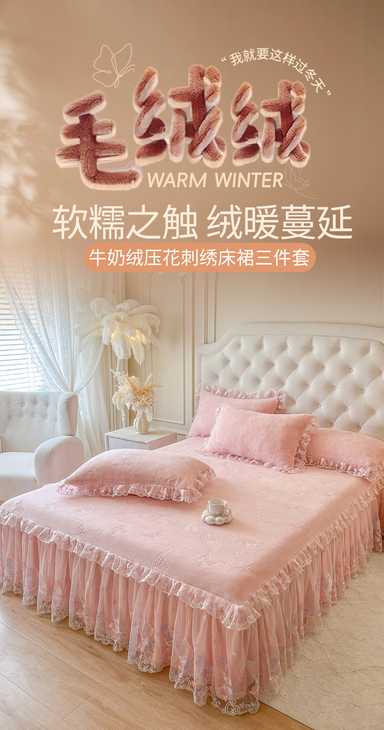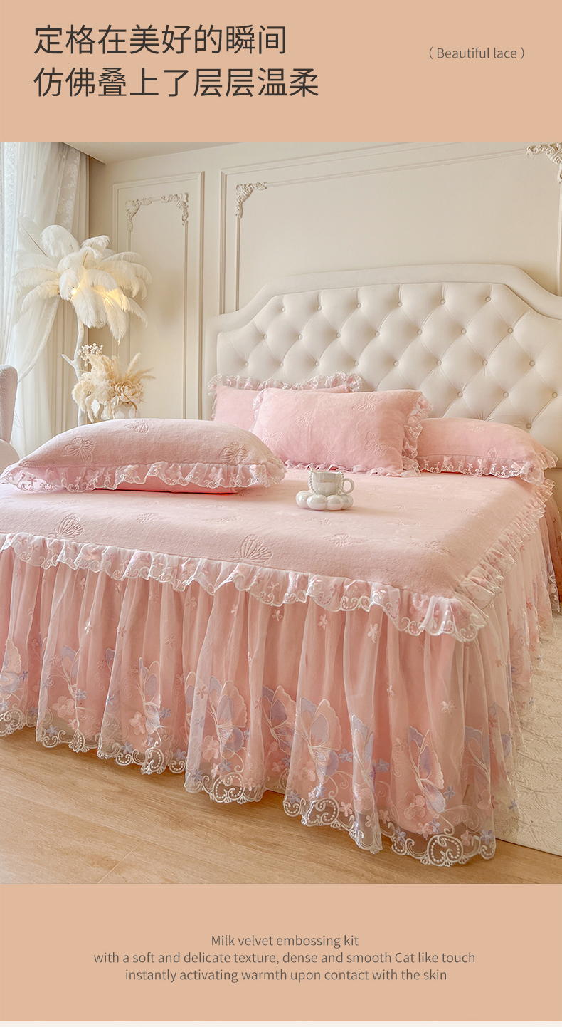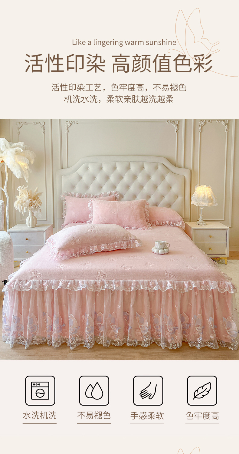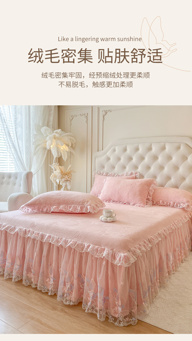 • 91家纺网 家纺一手货源 找家纺 网红馆(ck家纺) 2025新款牛奶绒刺绣单床裙 床裙单件-蝴蝶纷飞系列 蝴蝶纷飞-粉