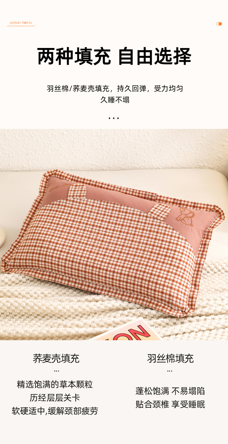 (总)大熊枕芯 2025新款棉麻刺绣款荞麦枕枕头枕芯,棉麻刺绣款荞麦枕
