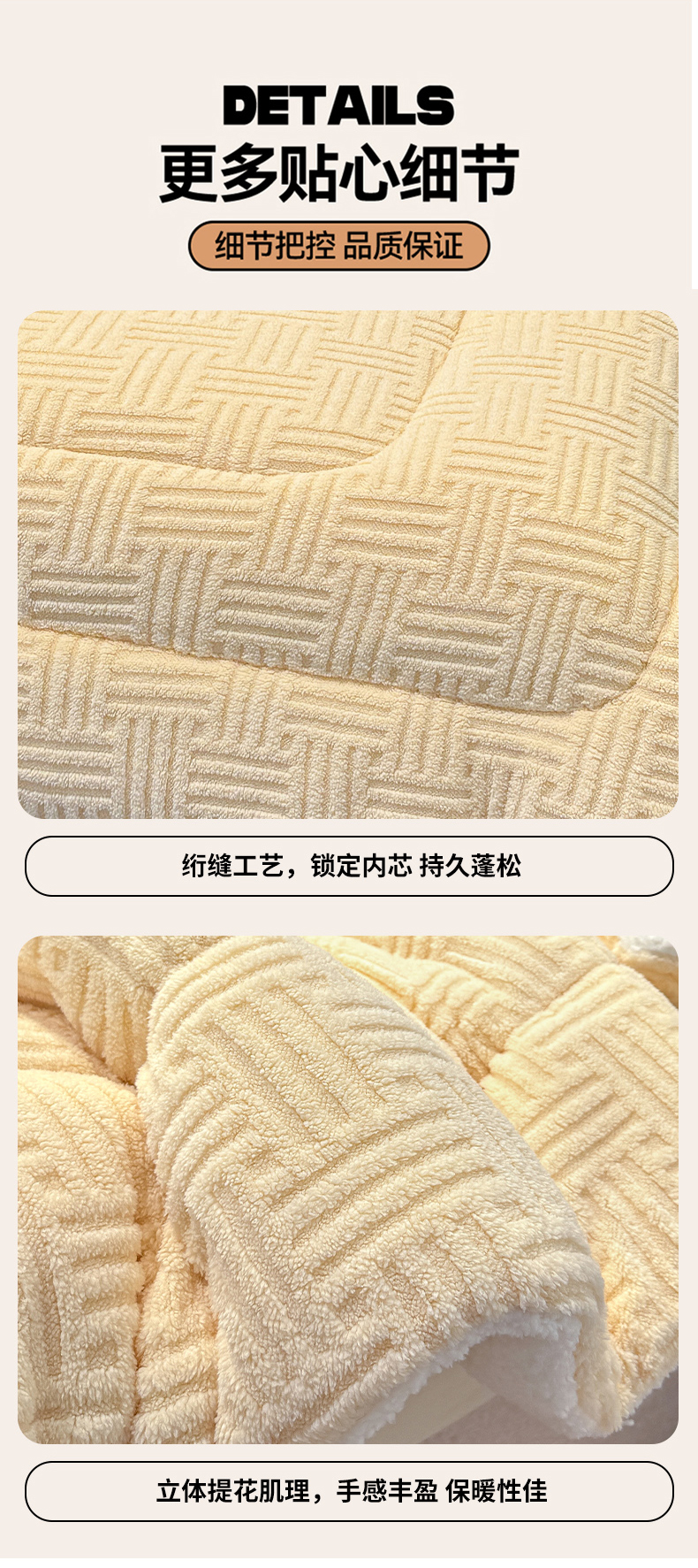 (总)蓝冰家纺 2025新款雕花牛奶绒羊羔绒床垫,宾利兰,粉桃桃,落日橙,绅士灰