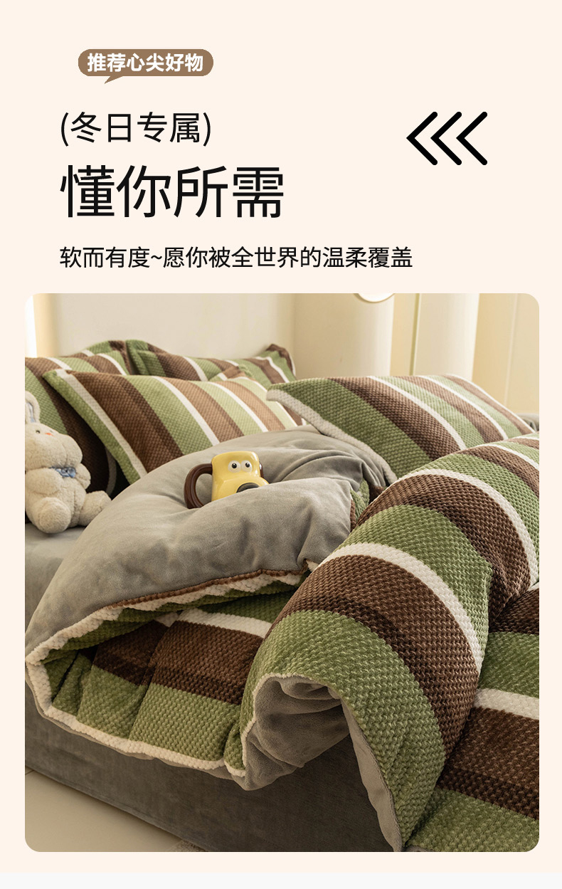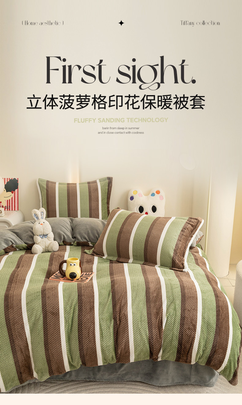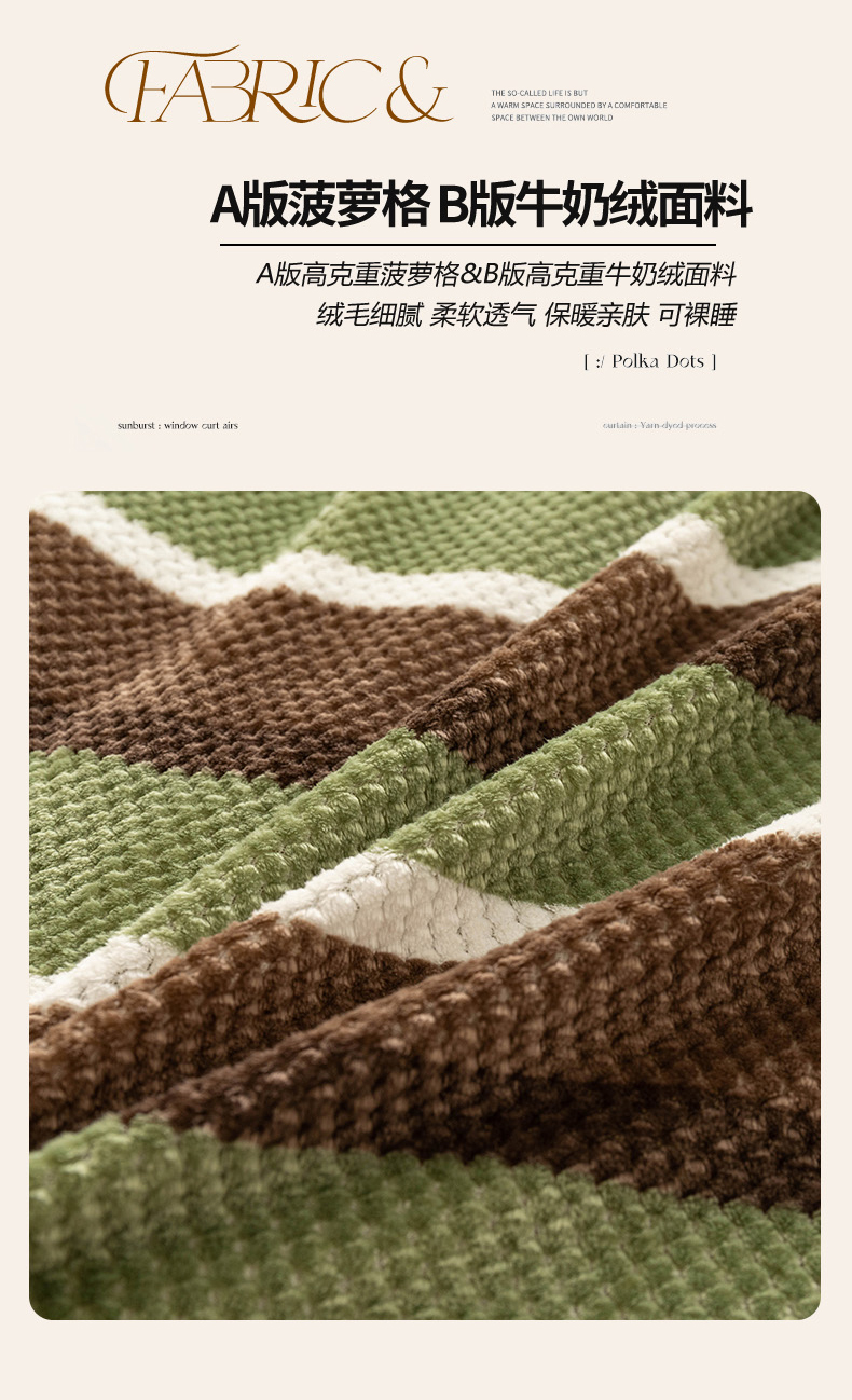 倾慕家纺 2026新款立体菠萝格印花保暖单被套 自由绿