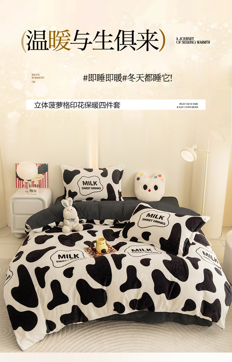 当前位置: 91家纺网 > 商品网购 > 床品套件 > 四件套 > 其它四件套 > 倾慕家纺 2026新款立体菠萝格印花保暖四件套 牛奶咖啡
