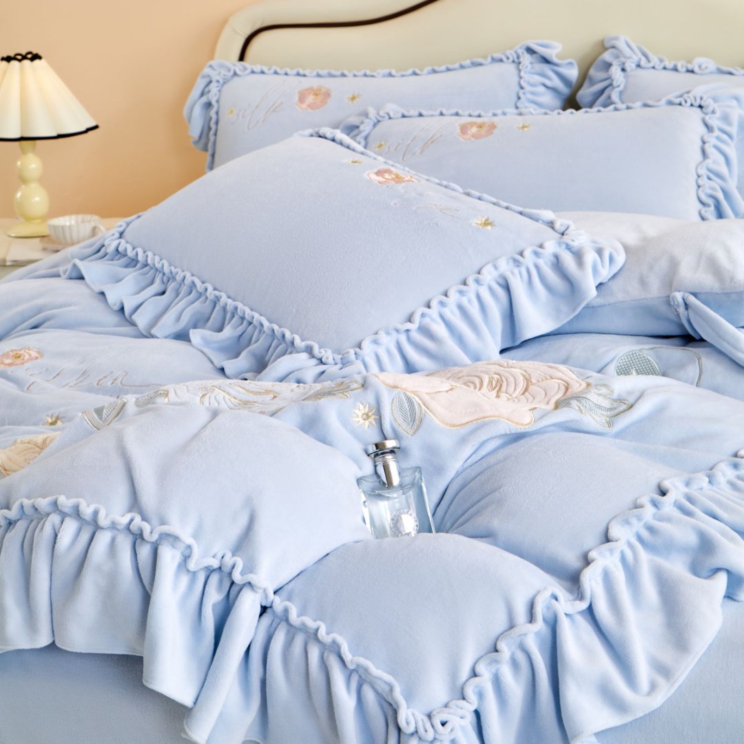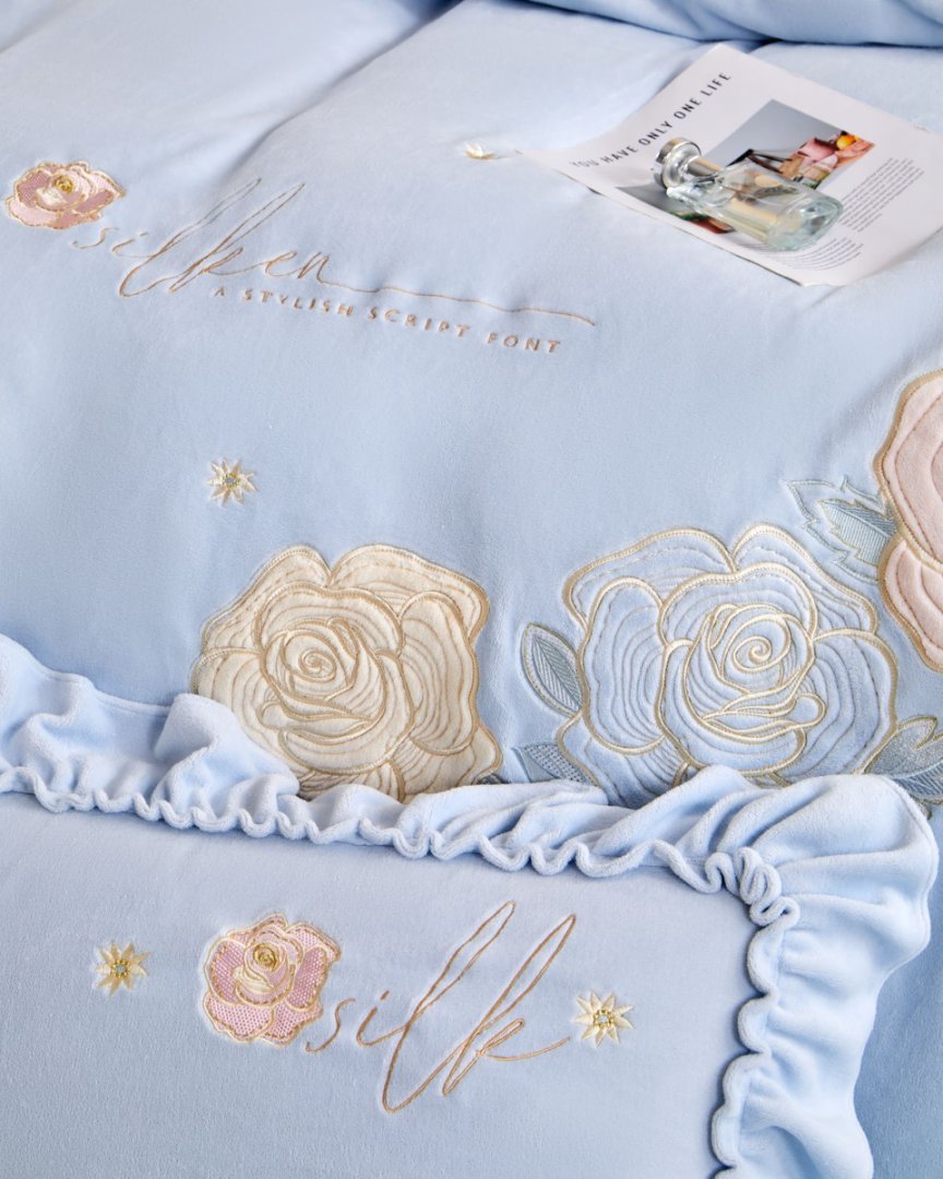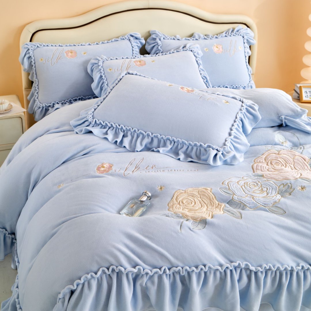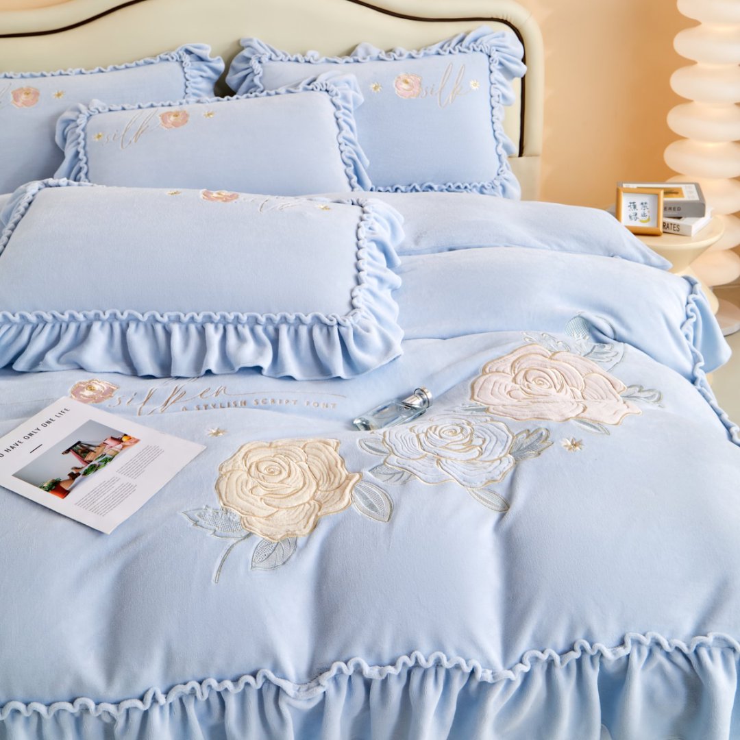 七里香 2025新款牛奶绒刺绣四件套-枝意系列 枝意-蓝色