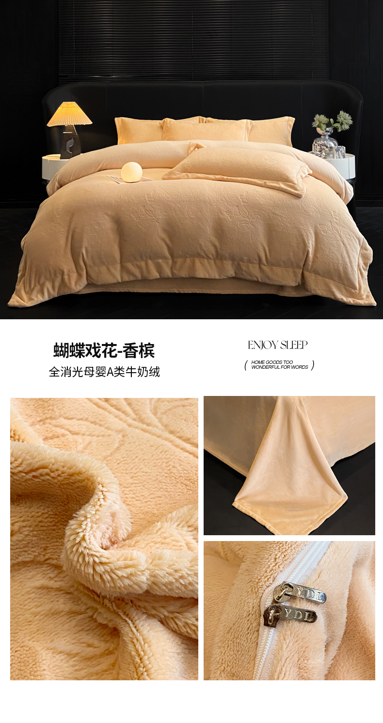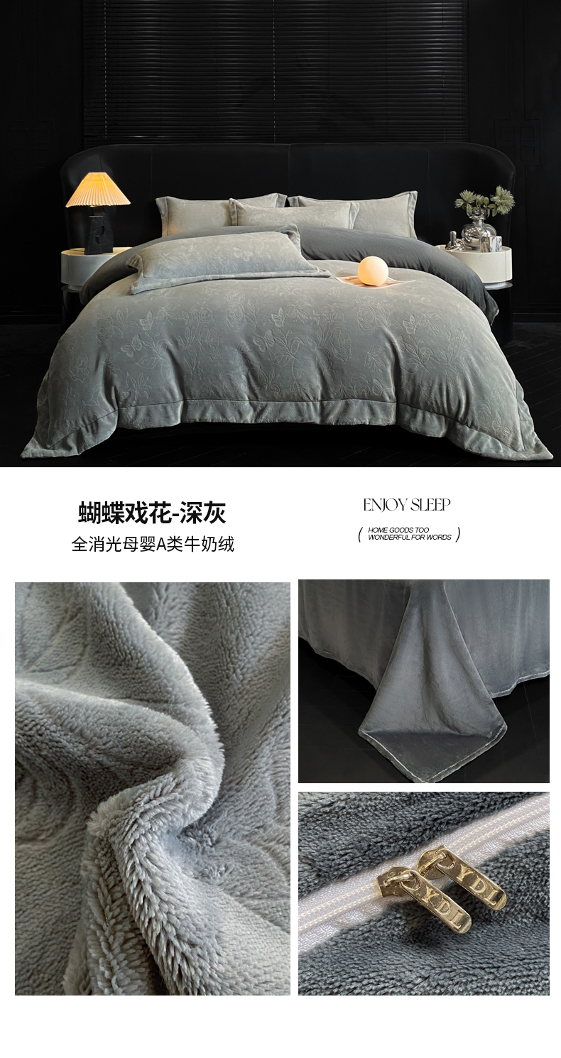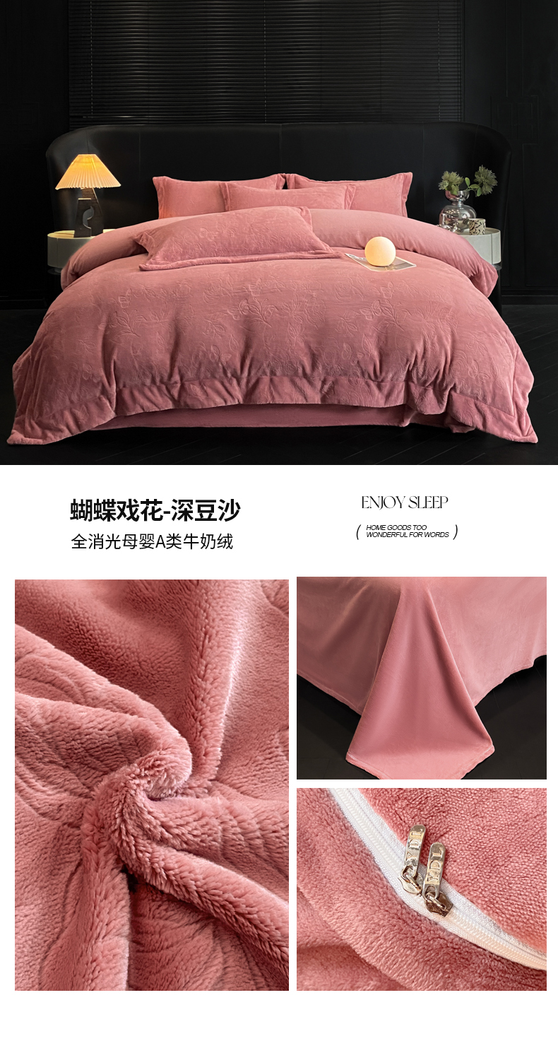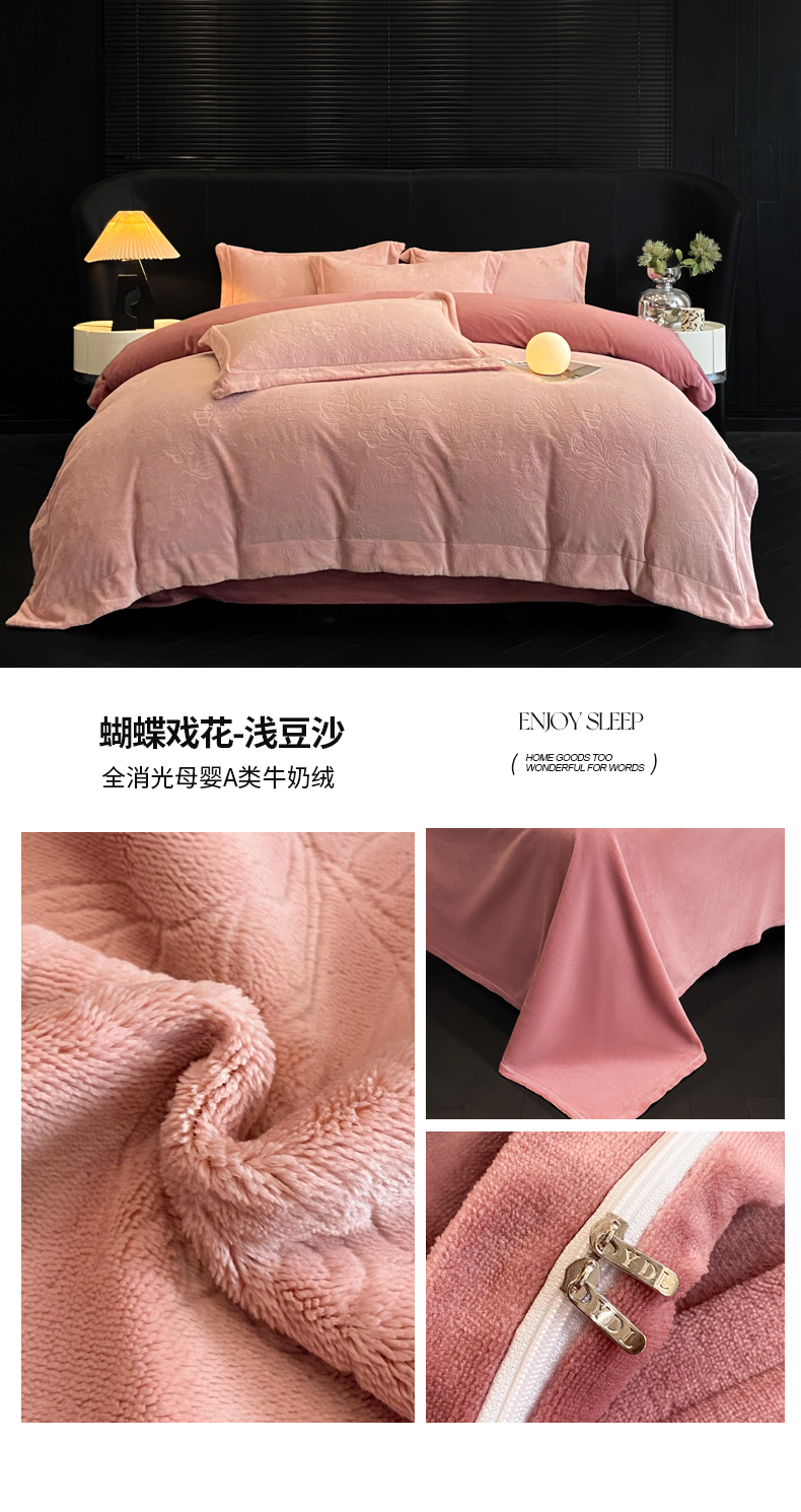 (总)专版花型 2025年新款高克重 9.2斤全消光A类烂花牛奶绒四件套-蝴蝶戏花
