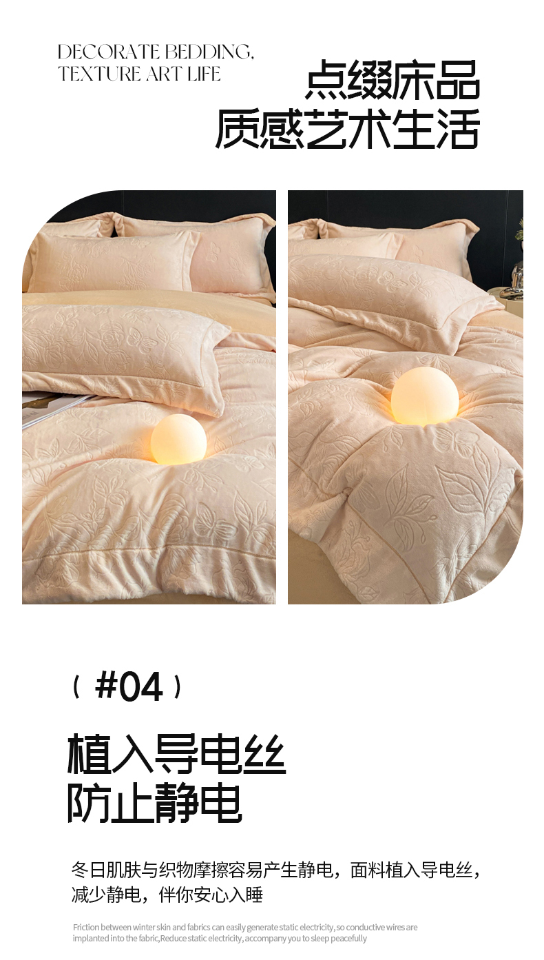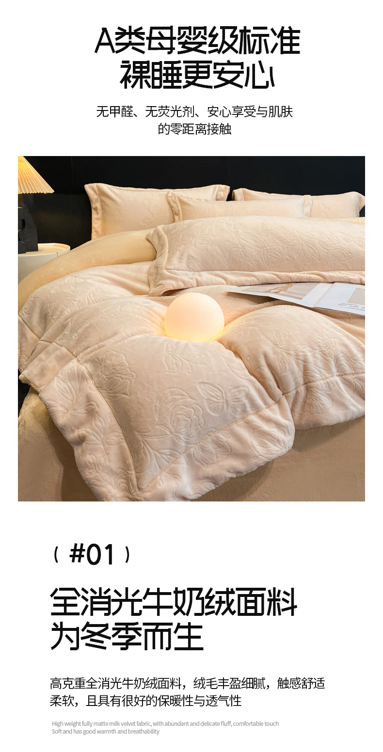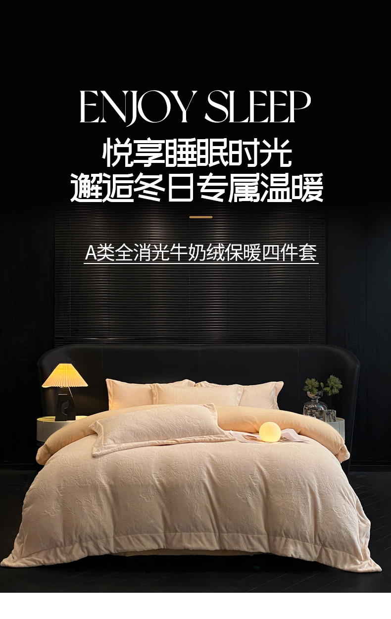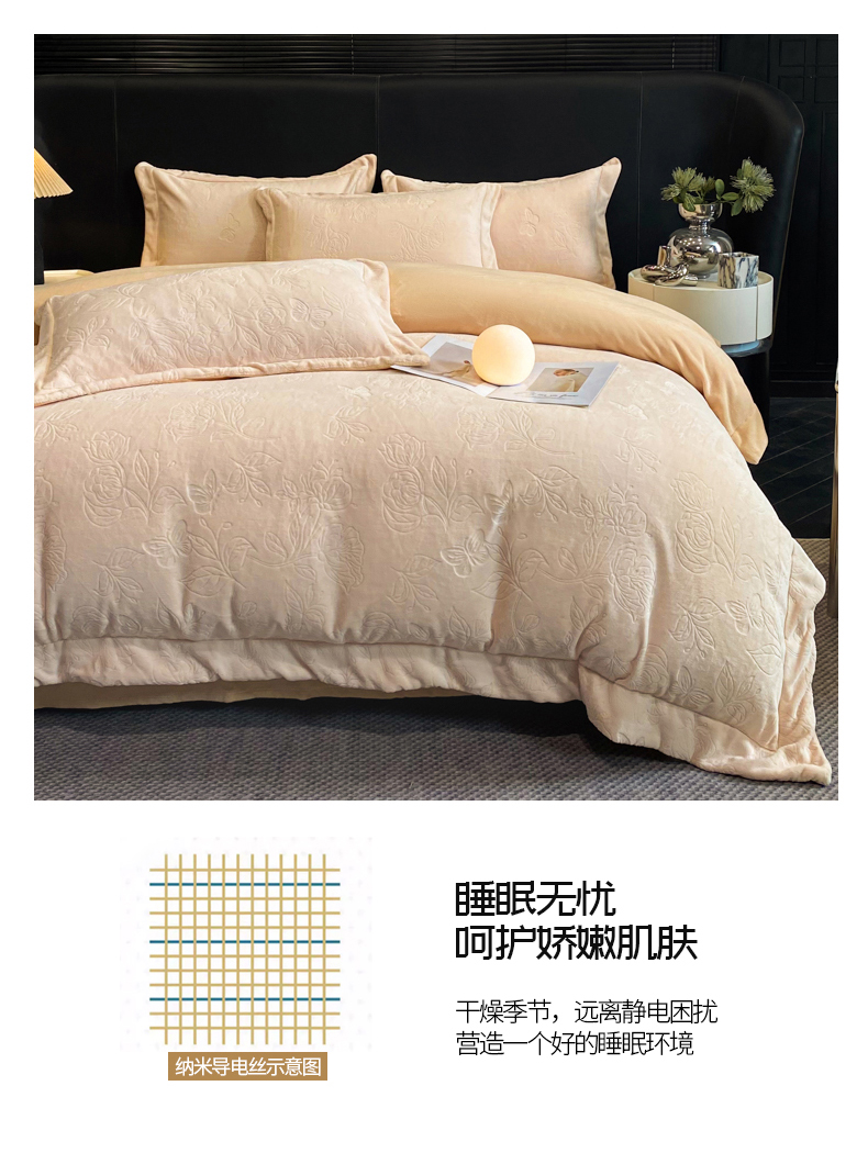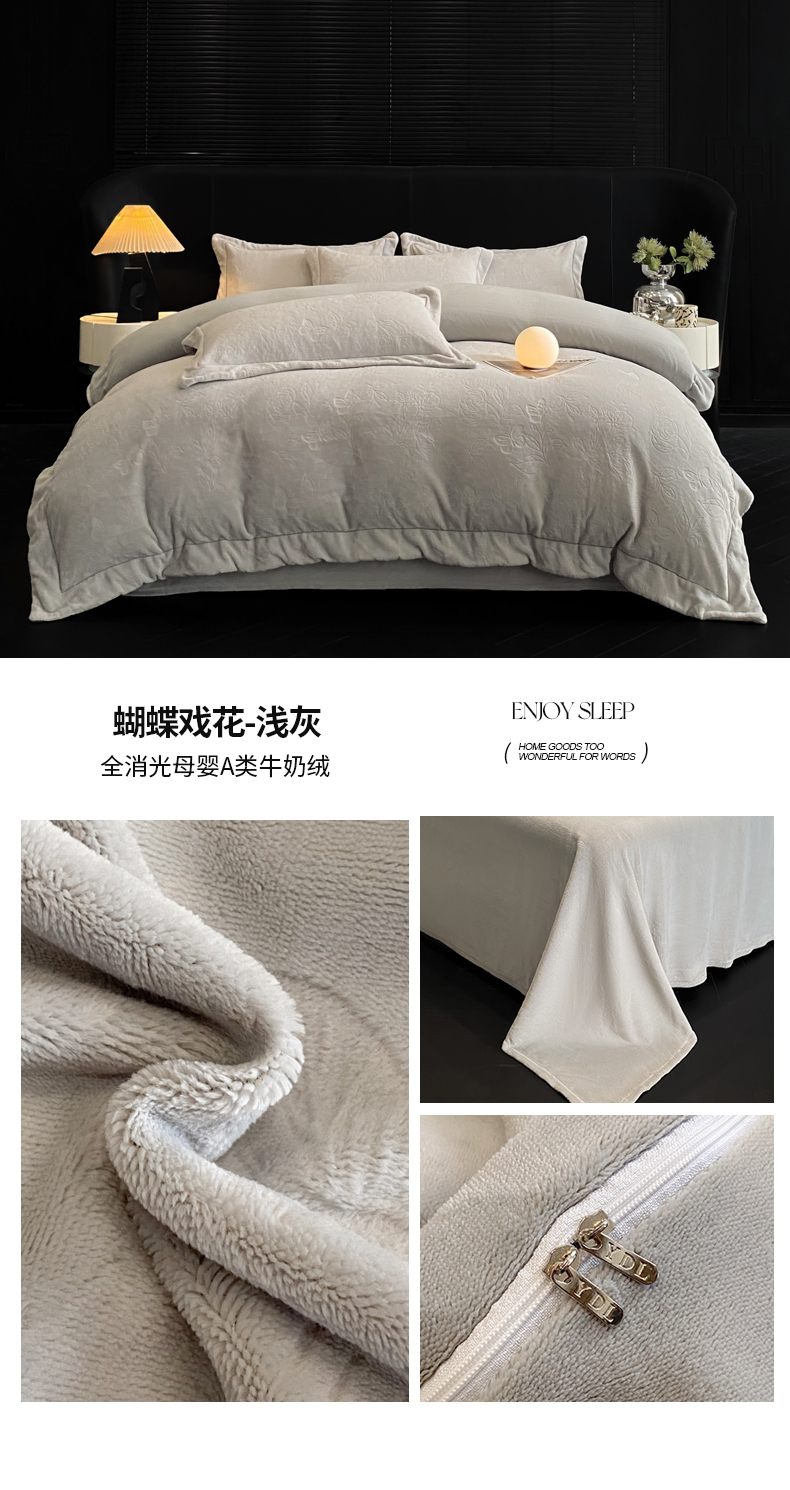 (总)专版花型 2025年新款高克重 9.2斤全消光A类烂花牛奶绒四件套-蝴蝶戏花