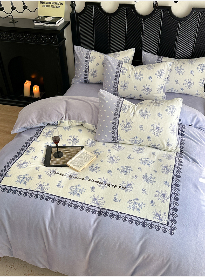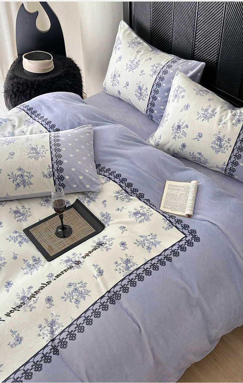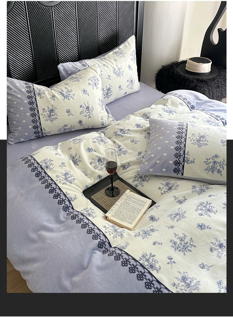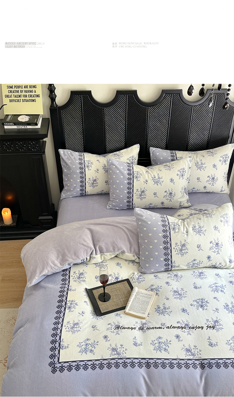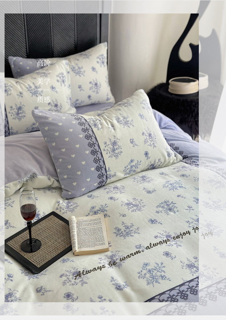 Sweet dreams甜梦 2025新款全消光数码印花加厚复古碎花牛奶绒四件套-实拍图 蓝枚