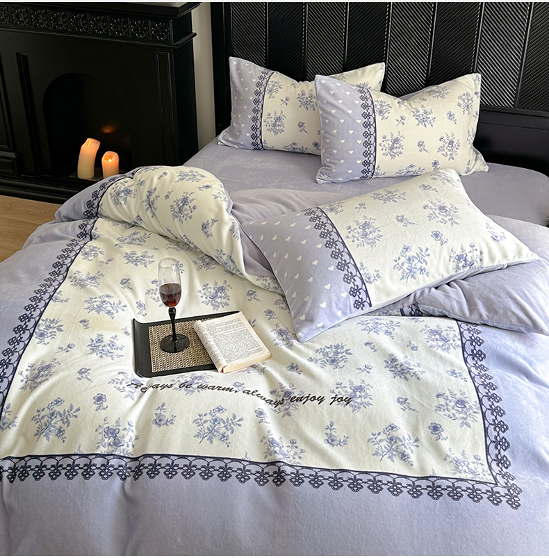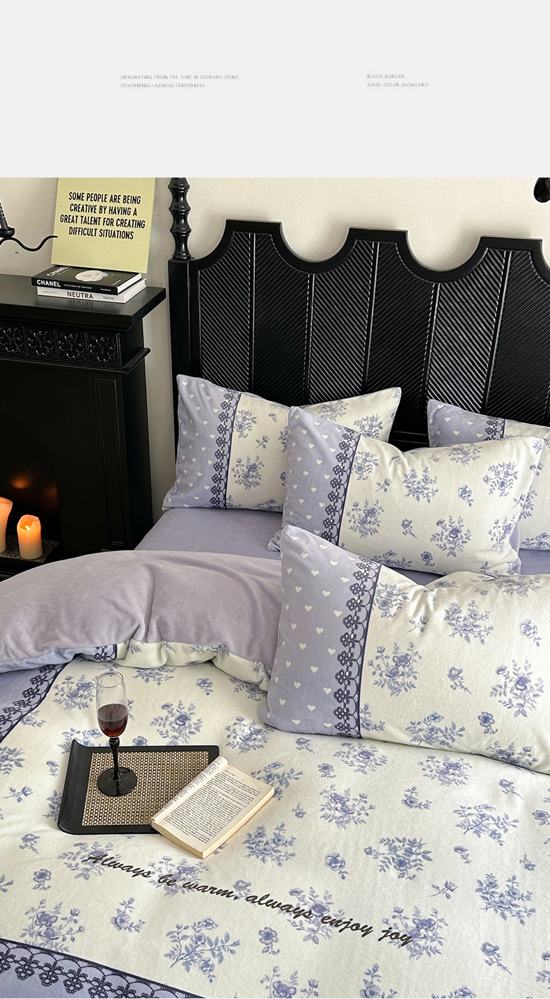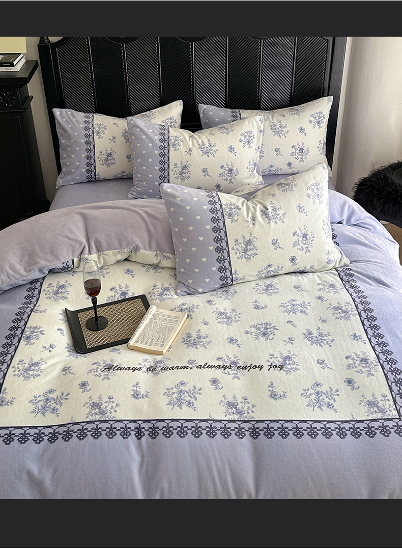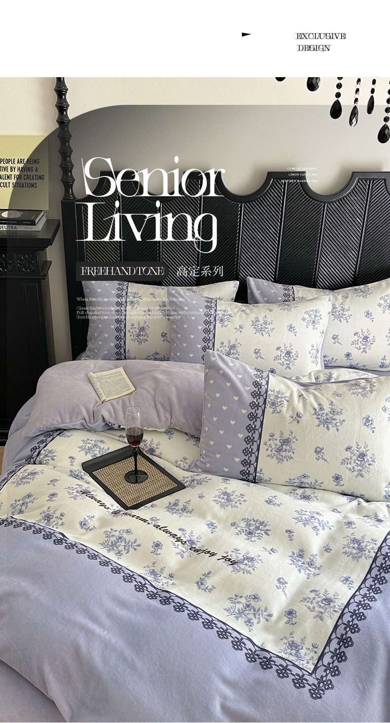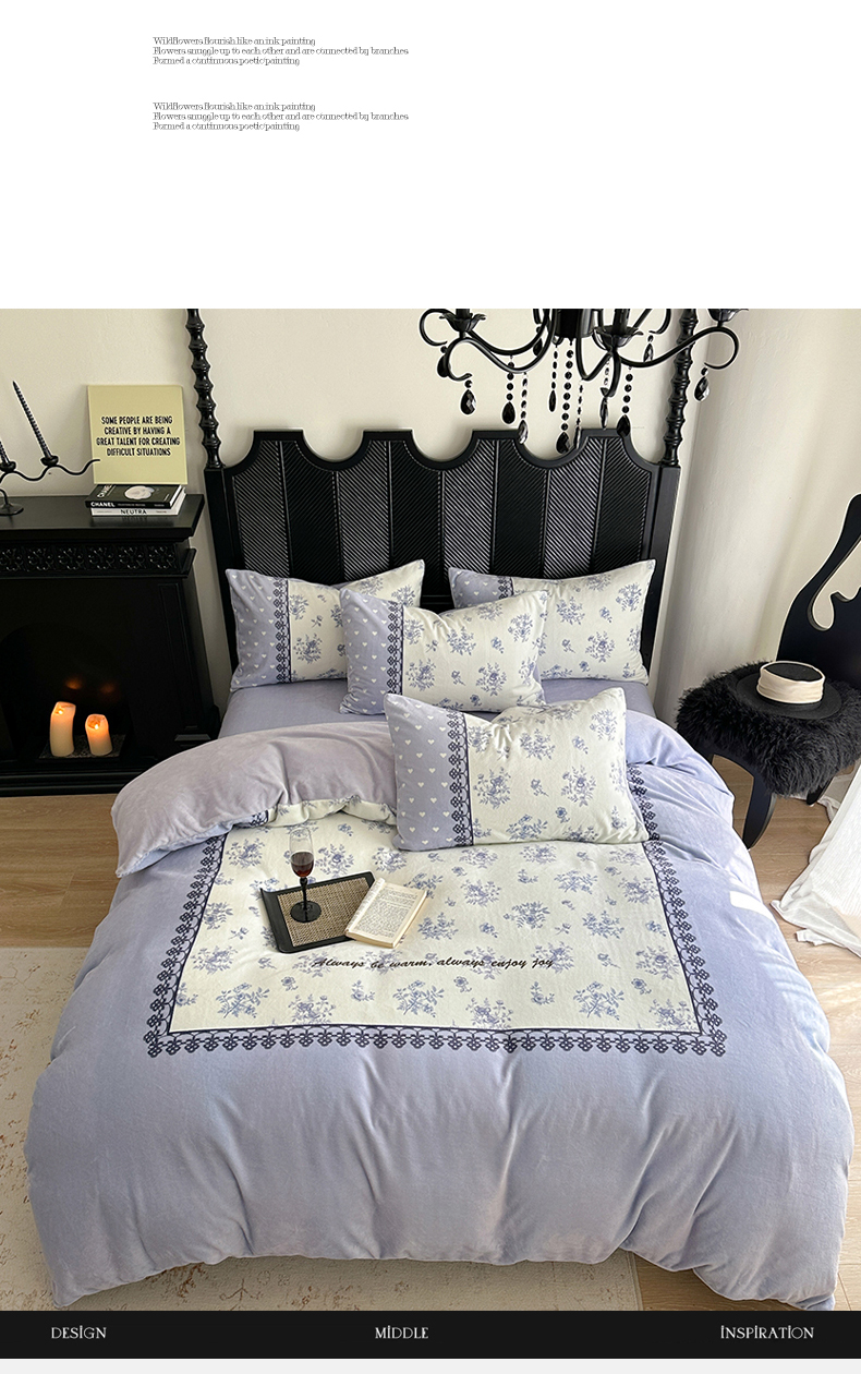 Sweet dreams甜梦 2025新款全消光数码印花加厚复古碎花牛奶绒四件套-实拍图 蓝枚