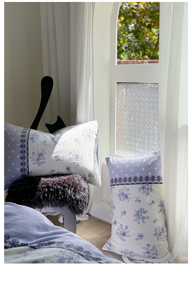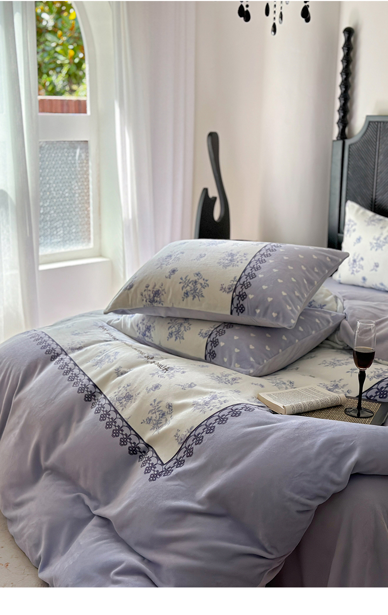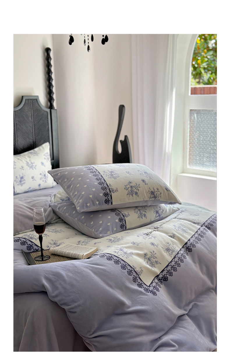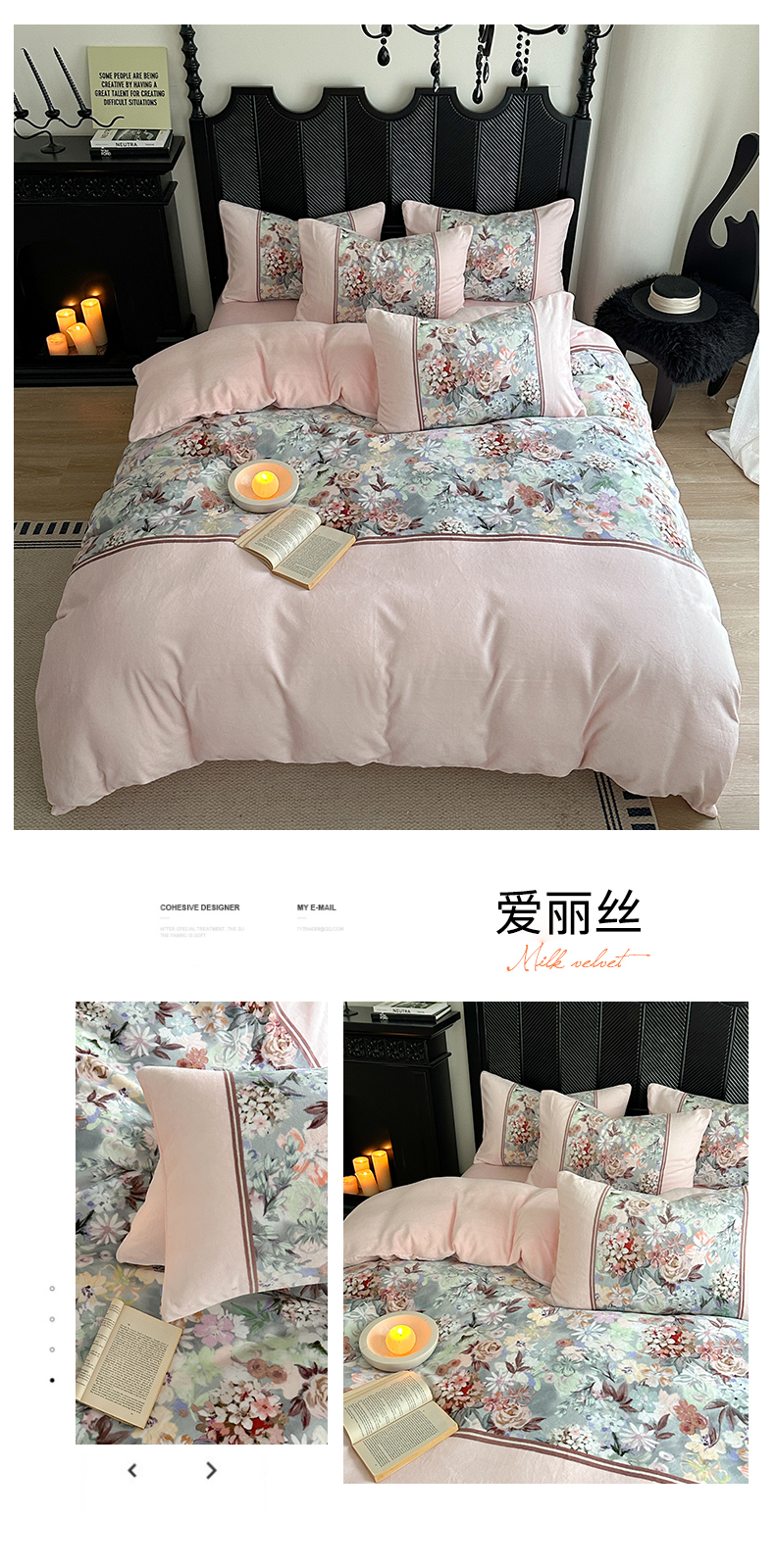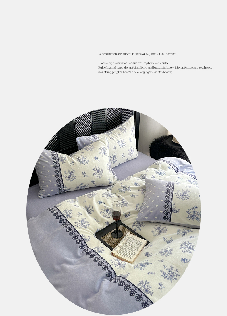 Sweet dreams甜梦 2025新款全消光数码印花加厚复古碎花牛奶绒四件套-实拍图 蓝枚