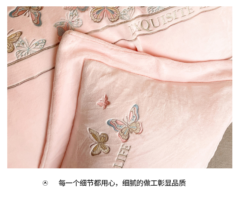 商品名称:(总)2025新款 专版花型 高克重9.5斤A类全消光刺绣牛奶绒四件套床盖款-蝶舞