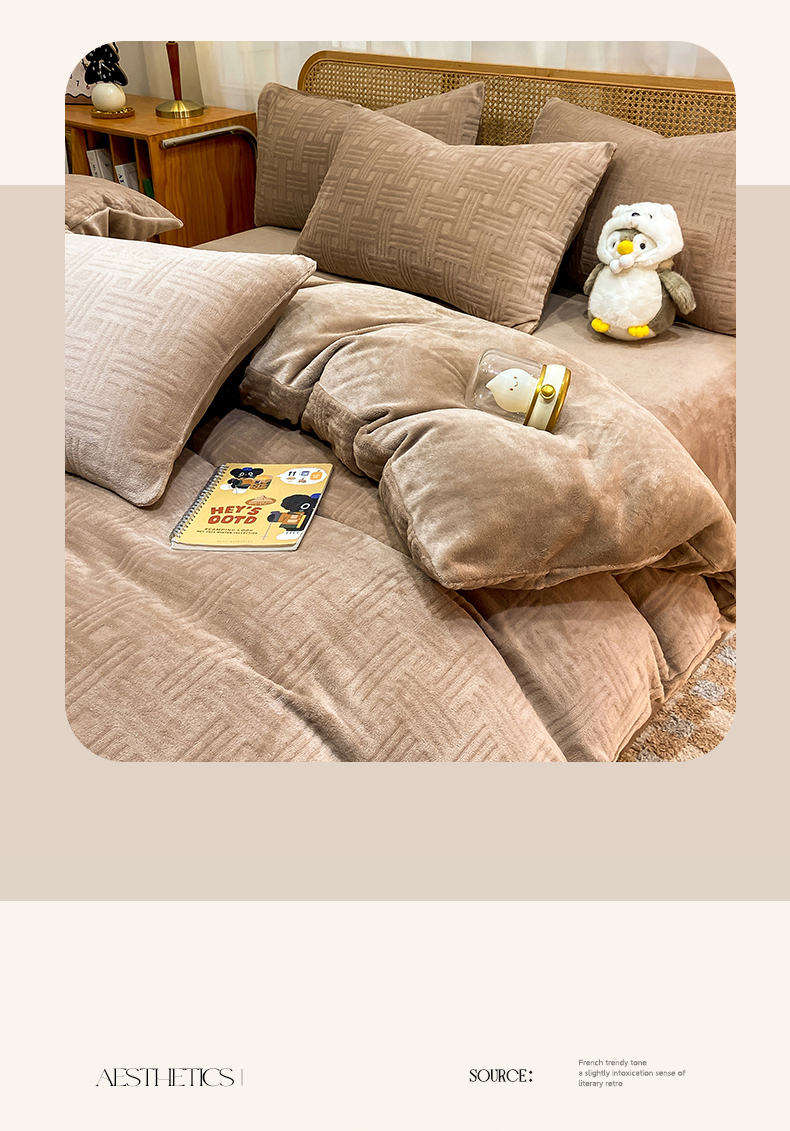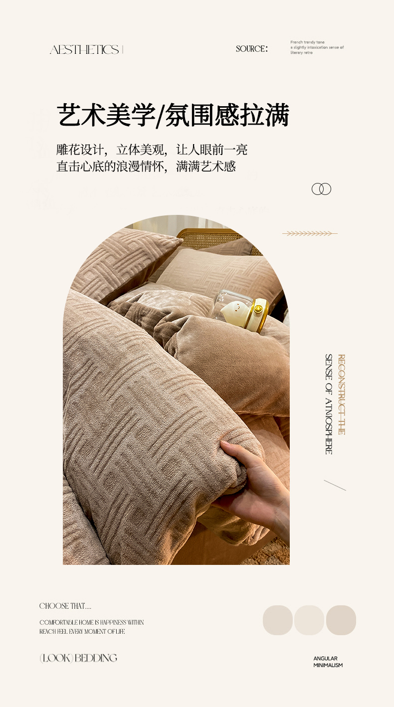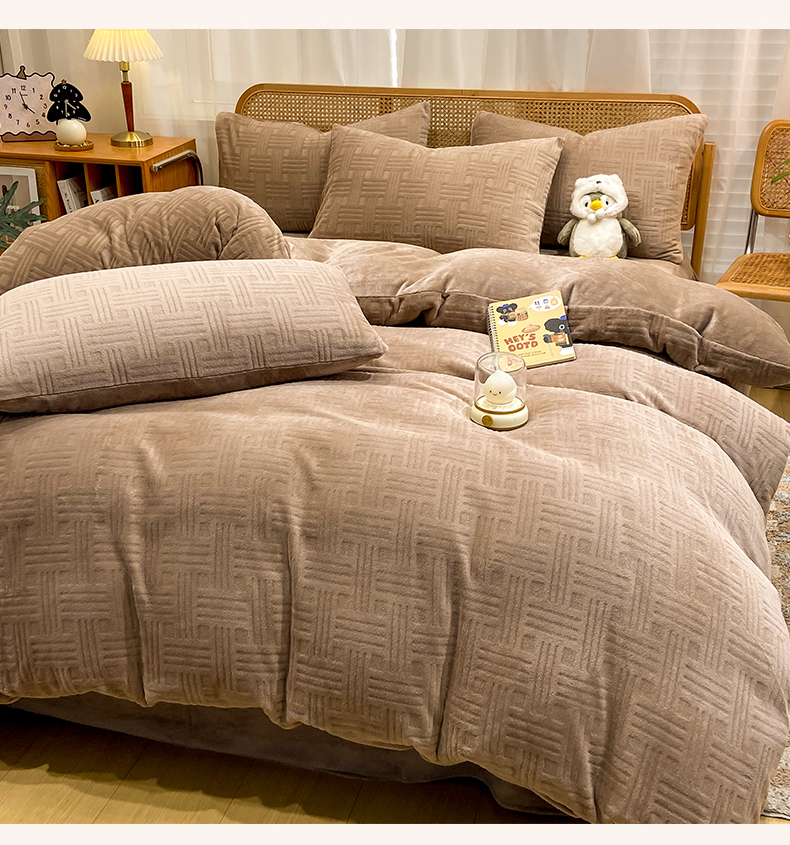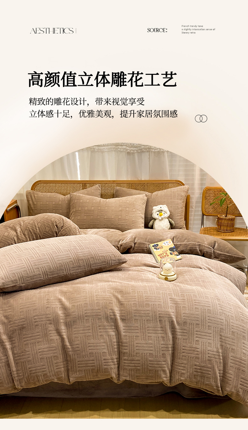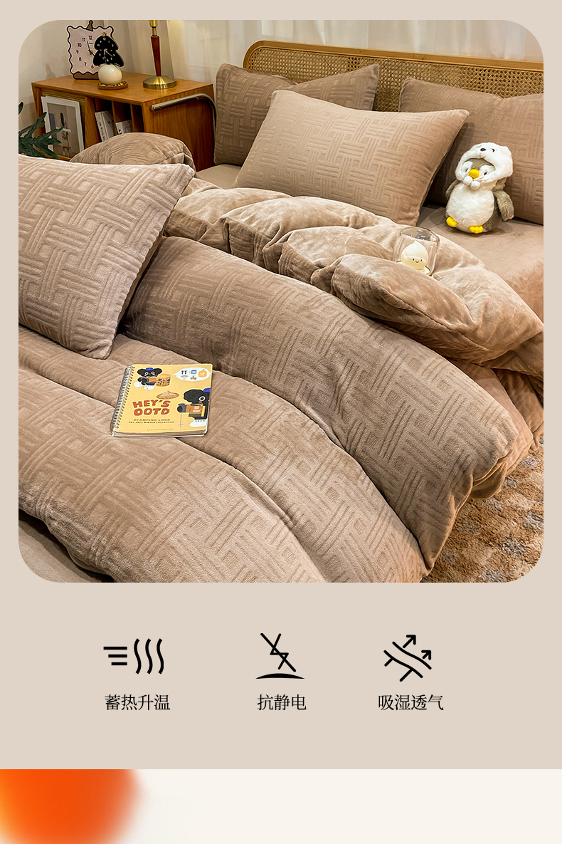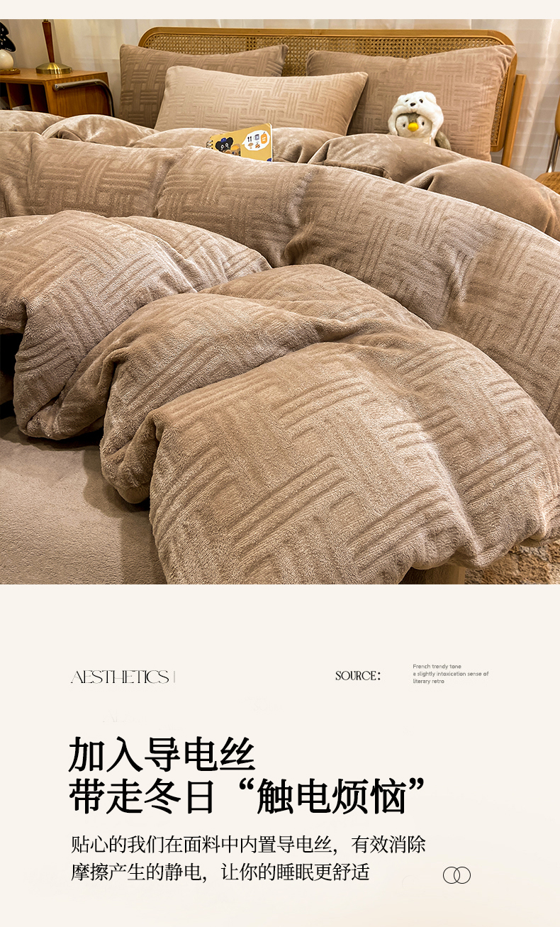 当前位置: 91家纺网 > 商品网购 > 床品套件 > 四件套 > 牛奶绒四件套 > 灰鲸 2025新款高克重牛奶绒雕花简约纯色四件套 糖果格-摩卡