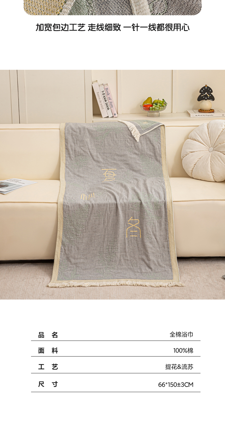 (总)恋人优选 2025新款流苏全棉纯棉提花四层水洗浴巾,百合绽放-灰 66x150cm,百合绽放-米 66x150cm,步步莲花-卡色 66x150cm,步步莲花-绿 66x150cm,步步莲花-米白 66x150cm,苍松翠竹-灰 66x150cm,苍松翠竹-蓝 66x150cm,春夏秋冬-灰 66x150cm,春夏秋冬-米 66x150cm,花飞蝶舞-蓝 66x150cm,花飞蝶舞-绿 66x150cm,花飞蝶舞-米 66x150cm,锦绣河山-咖蓝 66x150cm,锦绣河山-蓝灰 66x150cm,锦绣河山-米白 66x150cm,特立独行-粉 66x150cm,特立独行-蓝 66x150cm,维罗妮卡-灰 66x150cm,维罗妮卡-蓝 66x150cm,一叶知秋-兰 66x150cm,一叶知秋-绿 66x150cm,一叶知秋-米 66x150cm,一叶知秋-牛仔蓝 66x150cm
