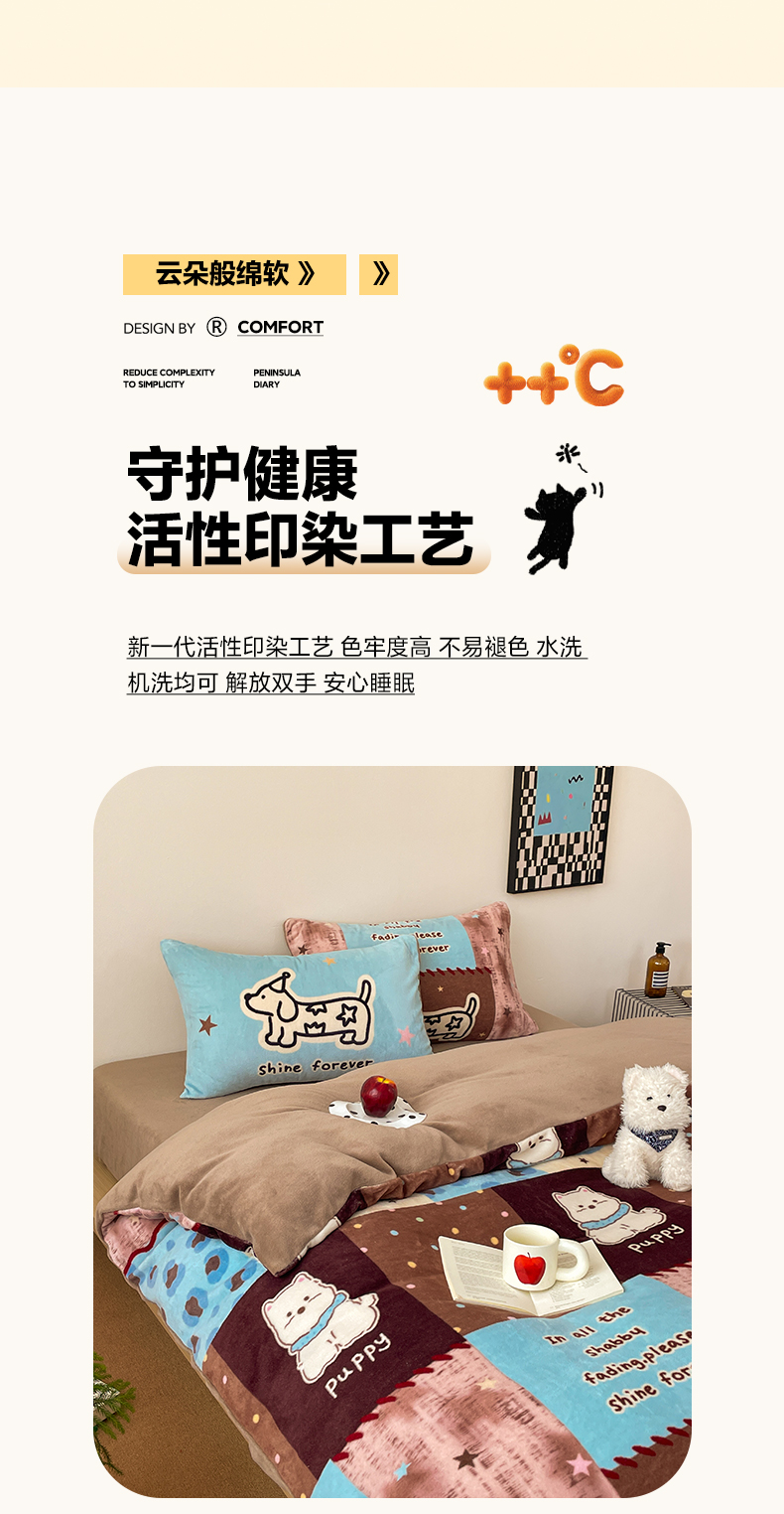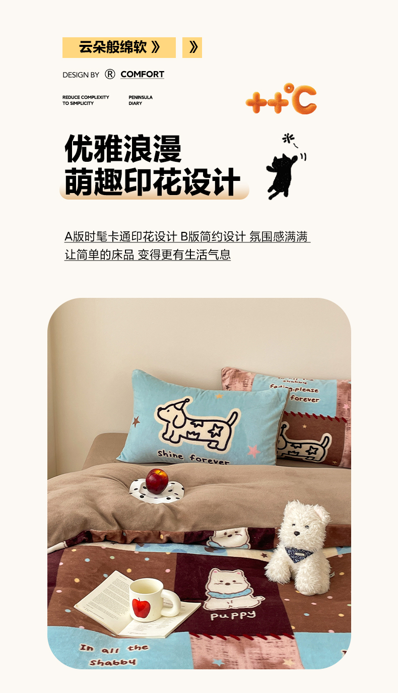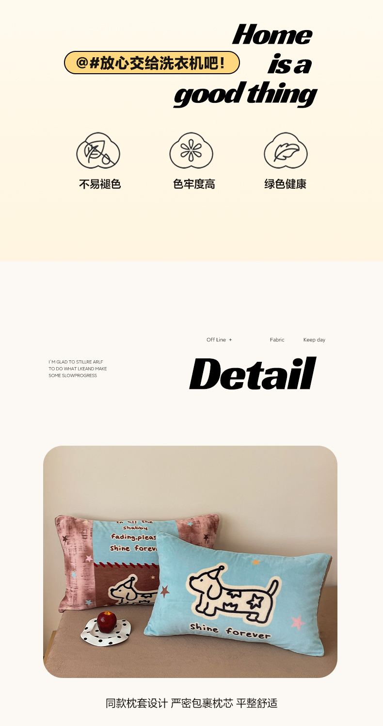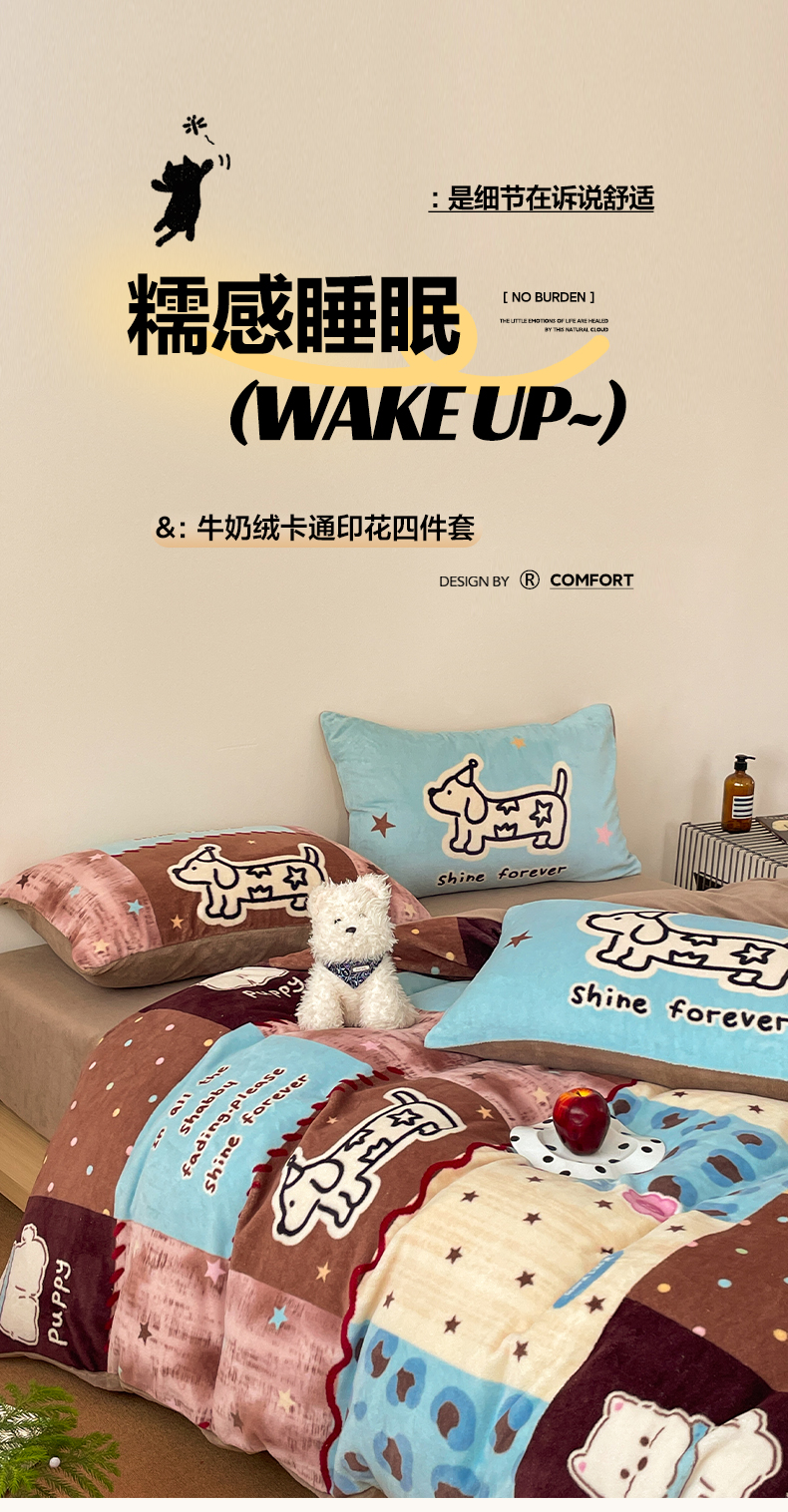 当前位置: 91家纺网 > 商品网购 > 床品套件 > 四件套 > 牛奶绒四件套 > 摩妮卡 2025新款牛奶绒枕套混搭卡通复古四件套 线条腊肠狗