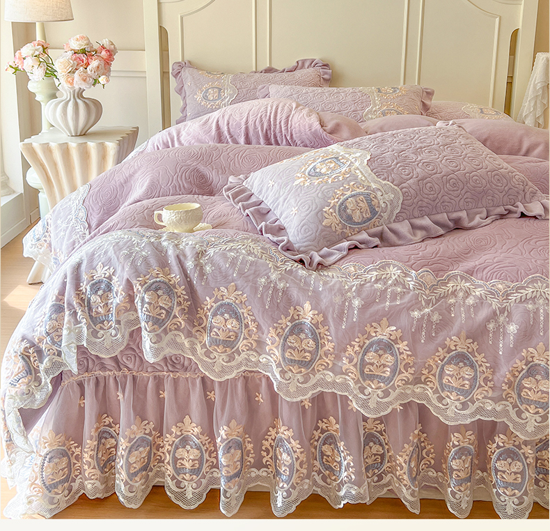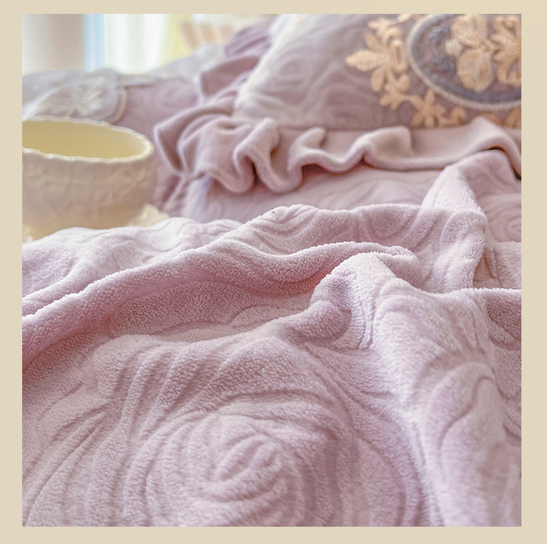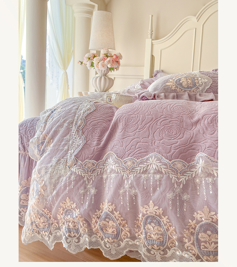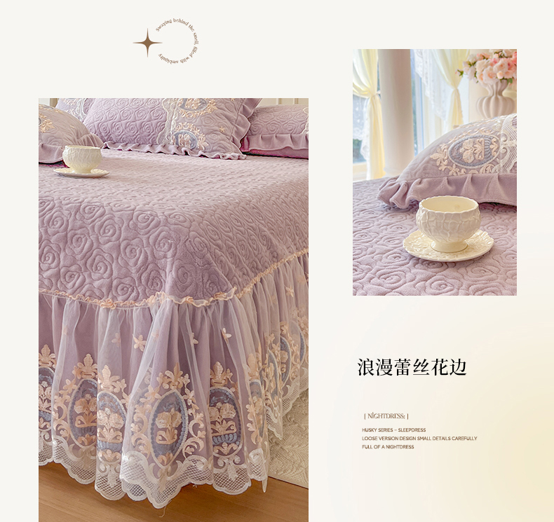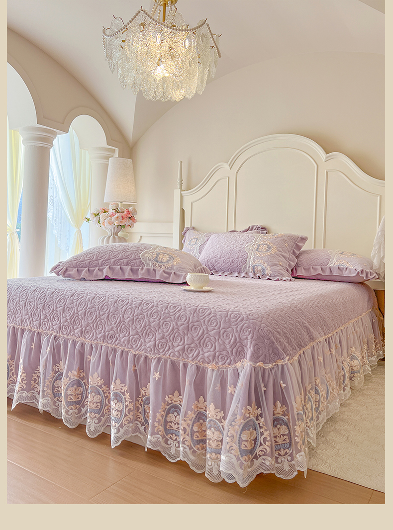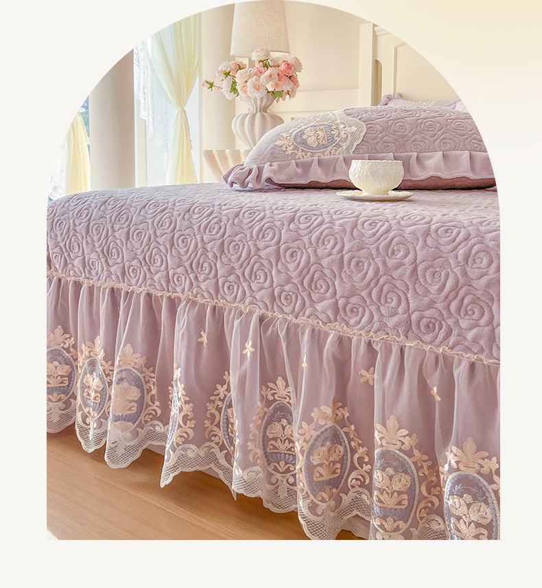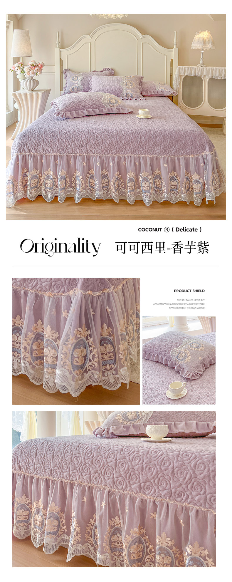 商品名称:恋尚 2025新款雕花牛奶绒绗缝夹棉床盖单品-可可西里(控价145起) 可可西里-香芋紫
