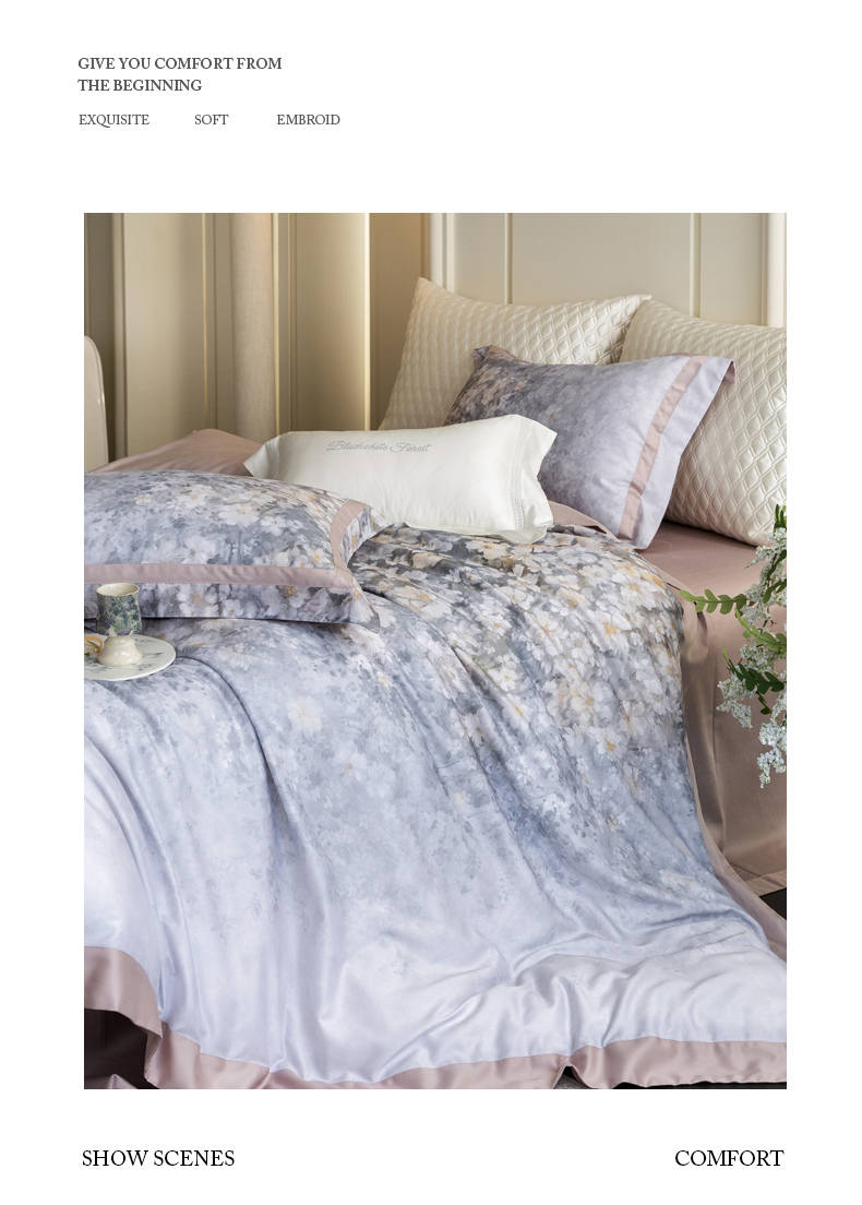 黑白森林2024款 60S支兰精天丝数码印花四件套,朝颜,木槿,玉茗,春浅,京墨,半夏,丹若,繁缕,青黛,德琳-粉,德琳-绿,蒂娜-灰,蒂娜-紫,慧莉-粉,慧莉-绿,欧瑞,夏夜