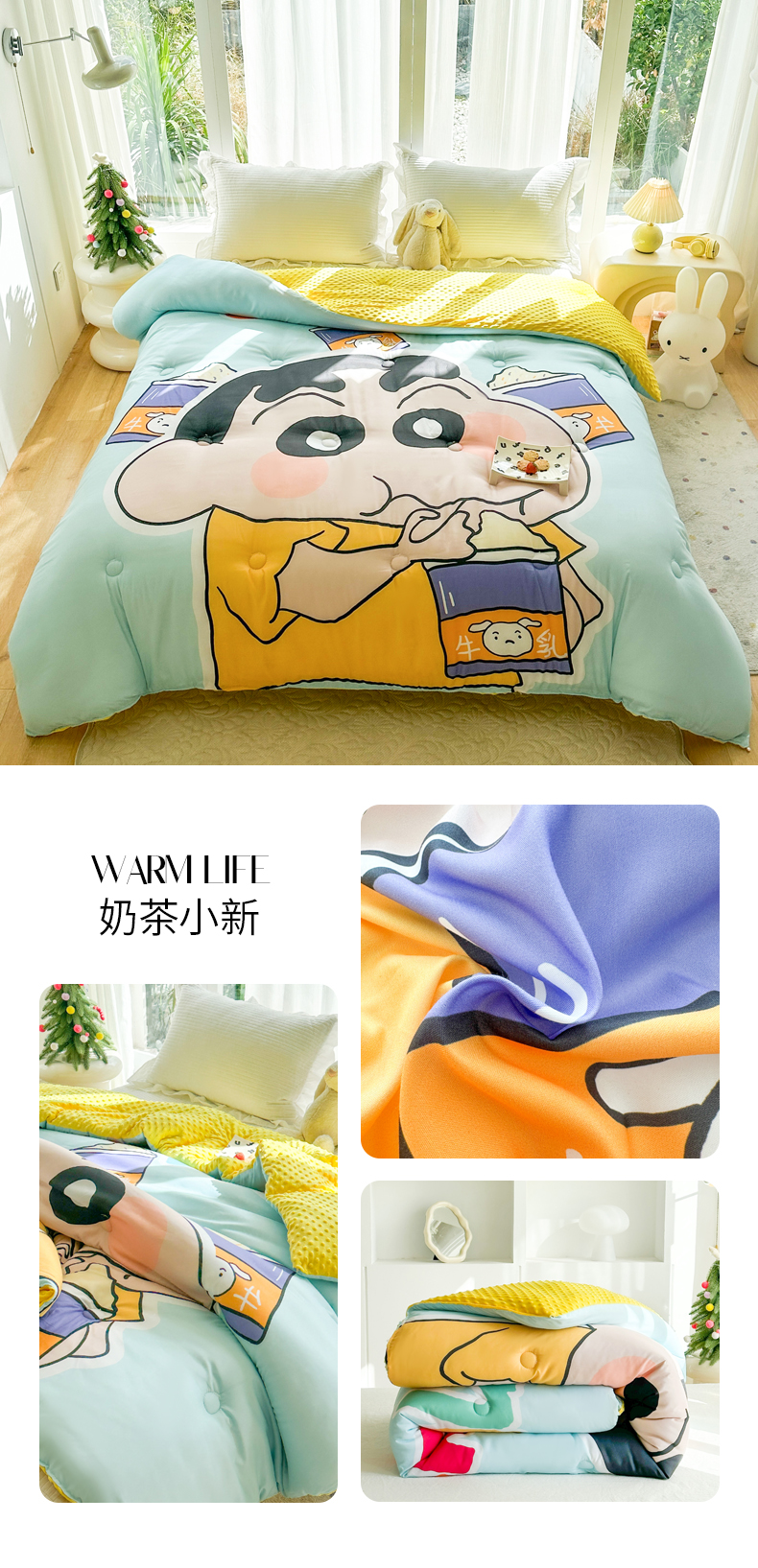 商品名称:一电 2025新款跨境电商可真空儿童豆豆被幼儿园秋冬被芯宝宝婴儿午睡-第三批 奶茶小新