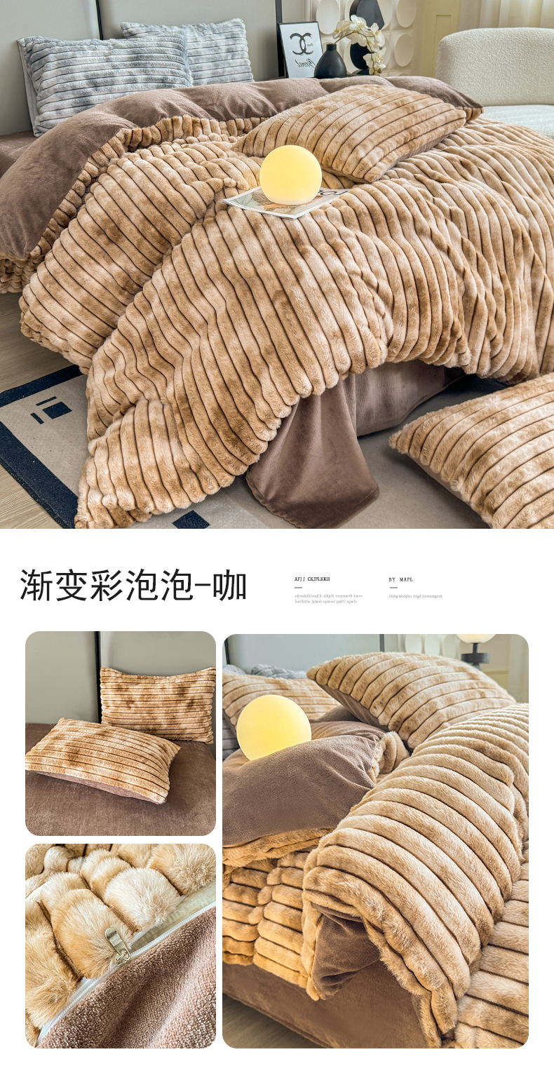 (总)蓝极人 2025新款A类抽条兔绒兔毛绒兔兔绒四件套,渐变彩泡泡-粉,渐变彩泡泡-灰,渐变彩泡泡-咖