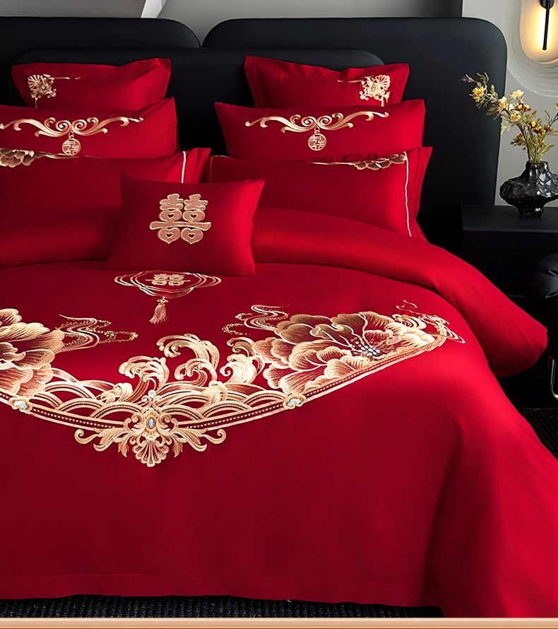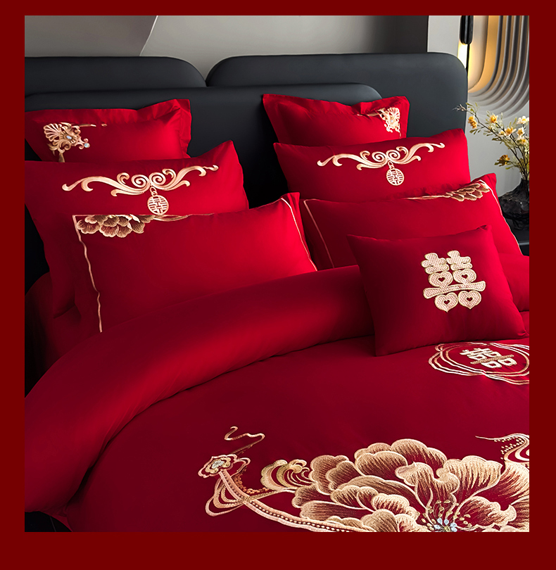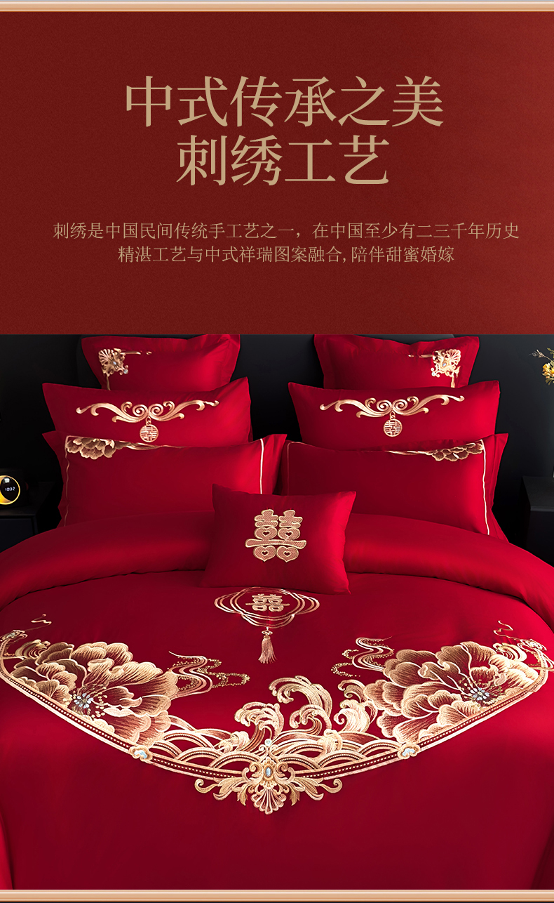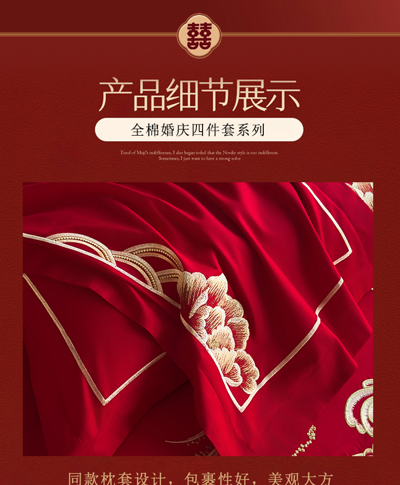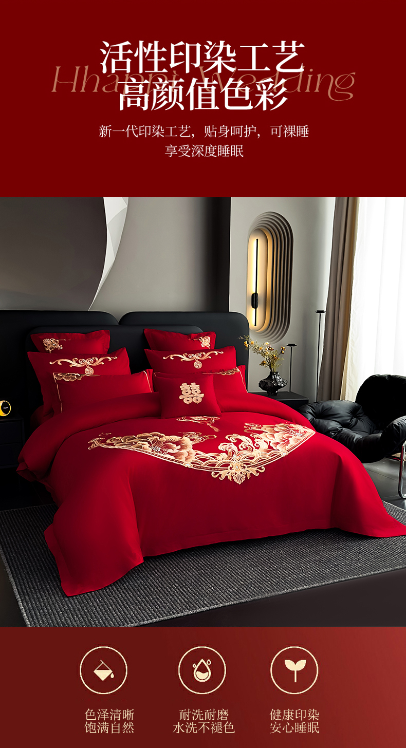 娇伊诗婚庆 2025新款刺绣工艺全棉婚庆四件套系列 幸福美满红,幸福美满红