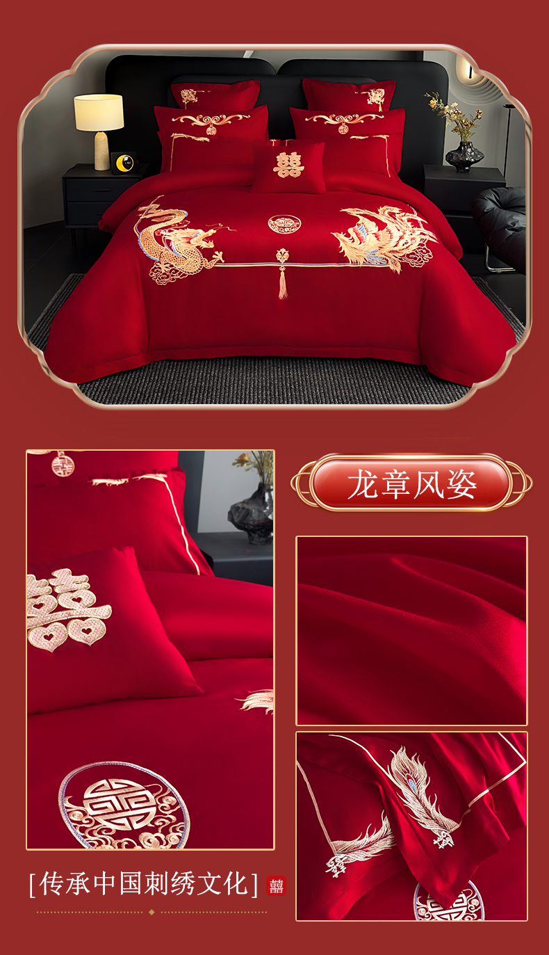 娇伊诗婚庆 2025新款刺绣工艺全棉婚庆四件套系列 龙章凤姿,龙章凤姿