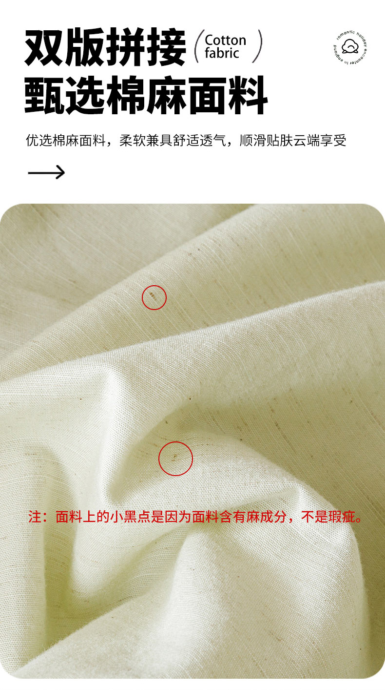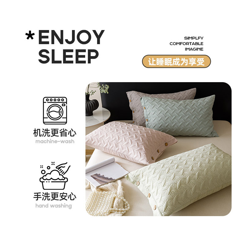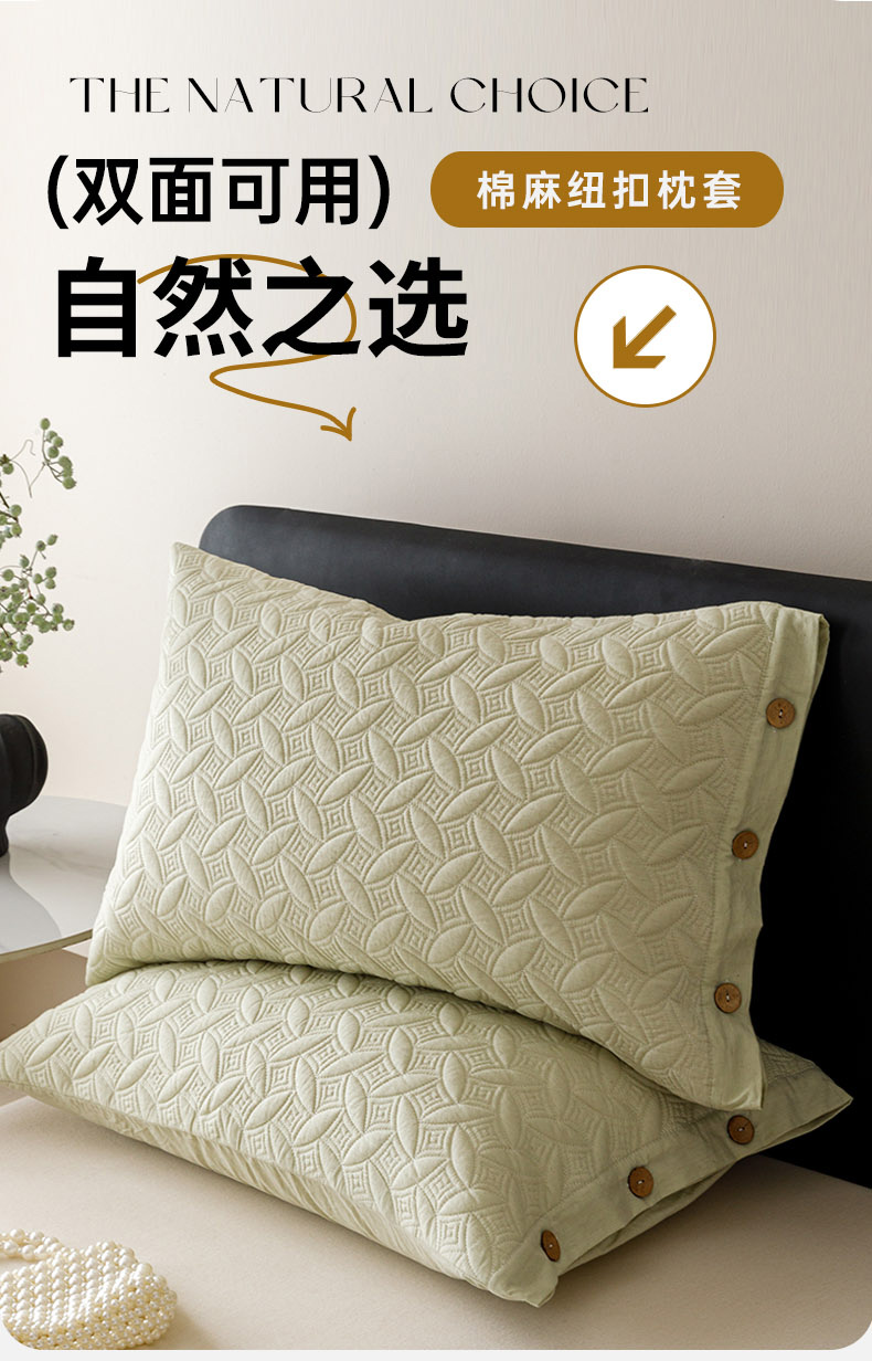 商品名称:爱港家纺 2025新款纯色棉麻亚麻枕套加厚绗缝夹棉双面高级枕头套 组合