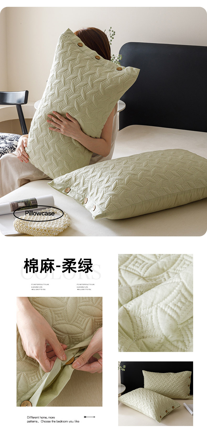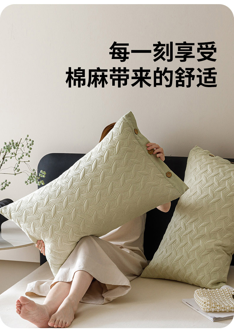 (总)爱港家纺 2025新款纯色棉麻亚麻枕套加厚绗缝夹棉双面高级枕头套,棉麻-浅灰,棉麻-柔绿,棉麻-檀粉,棉麻-雾兰,组合