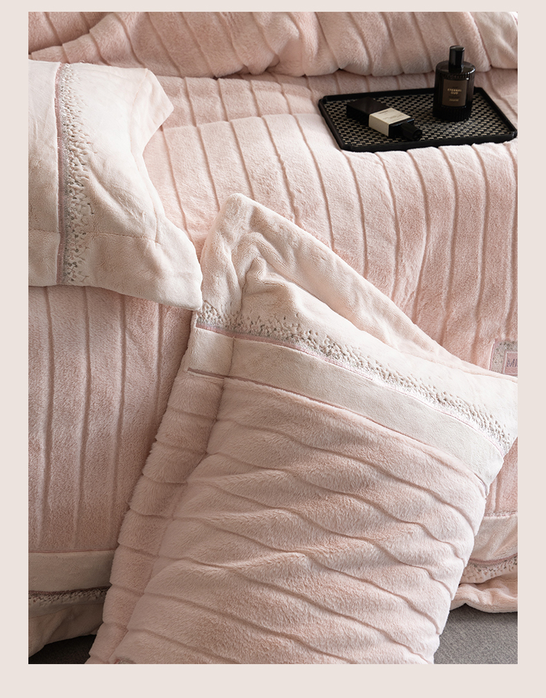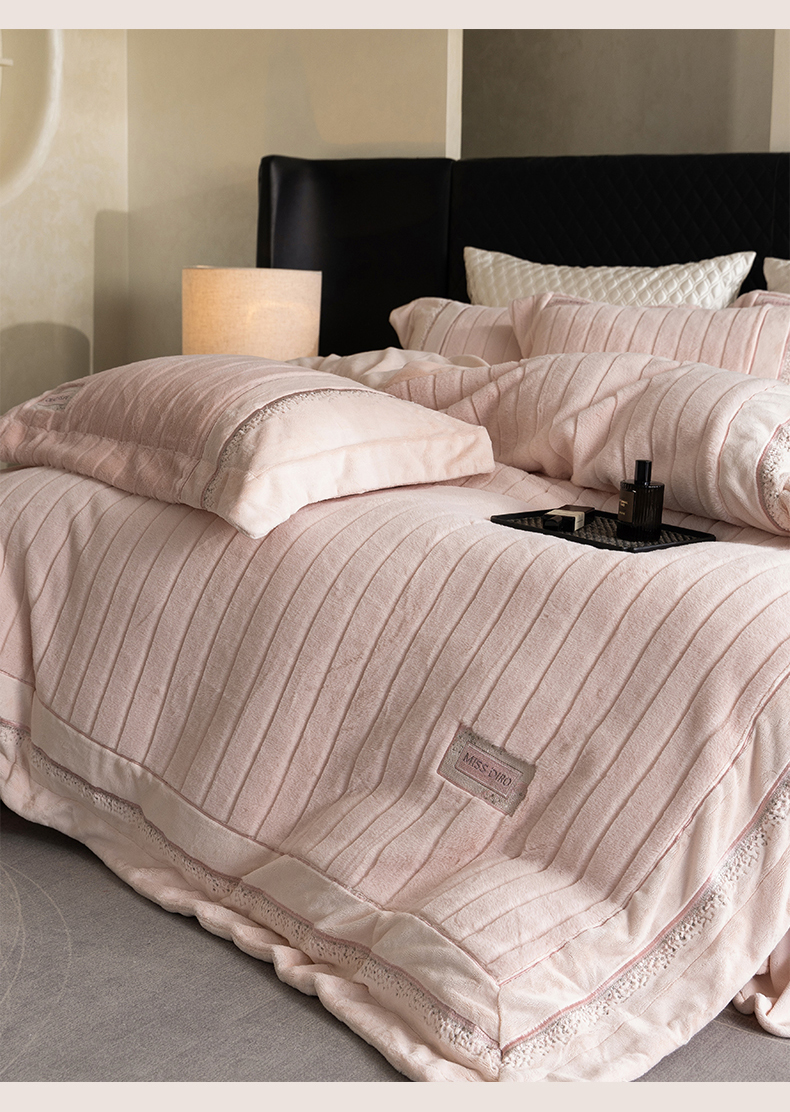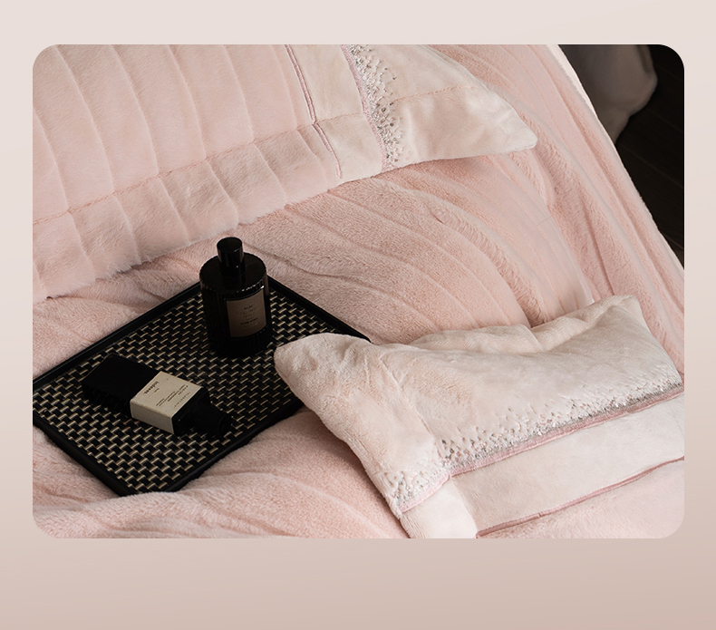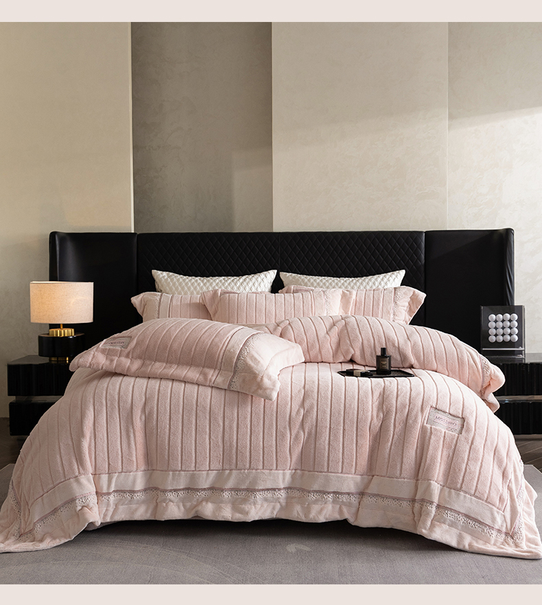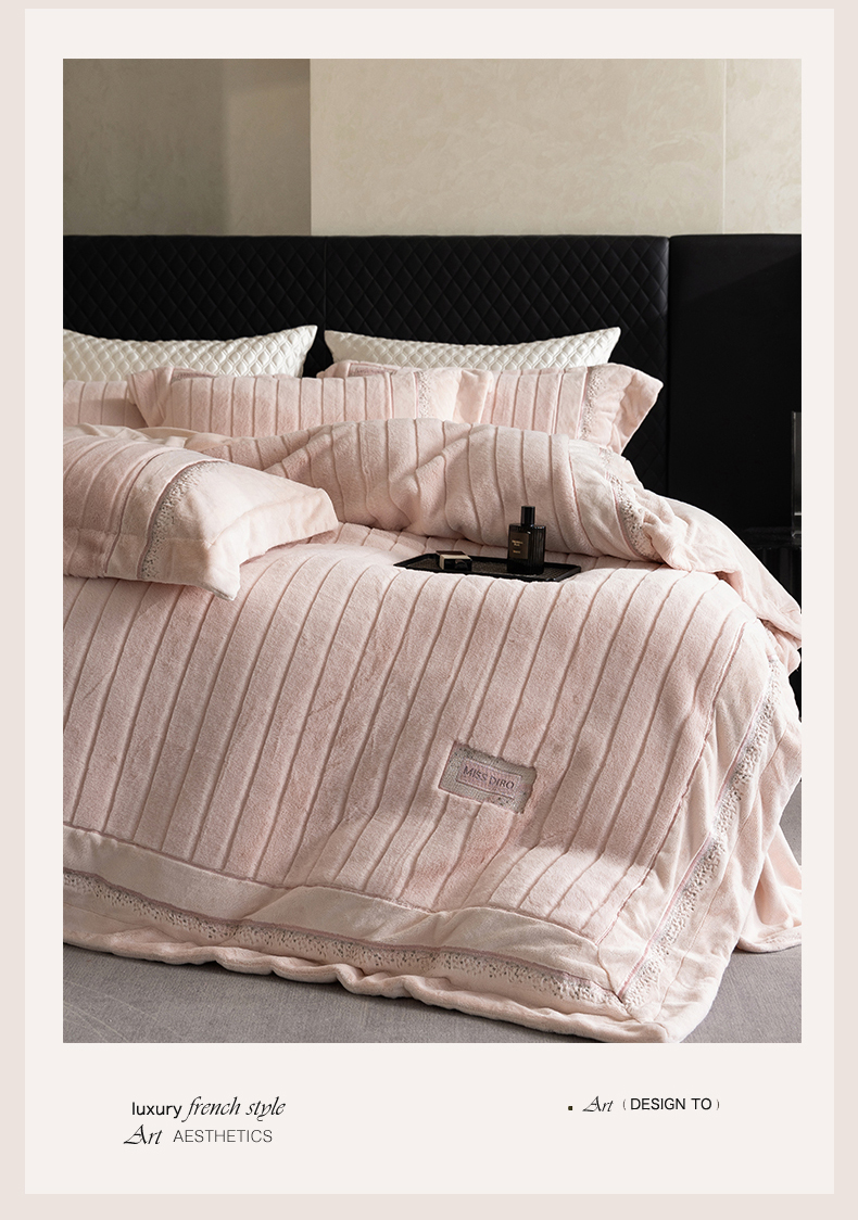商品名称:鼎飞家纺 2025新款A类兔绒压花+全消光牛奶绒四件套--贝尔雅系列 贝尔雅-柔粉