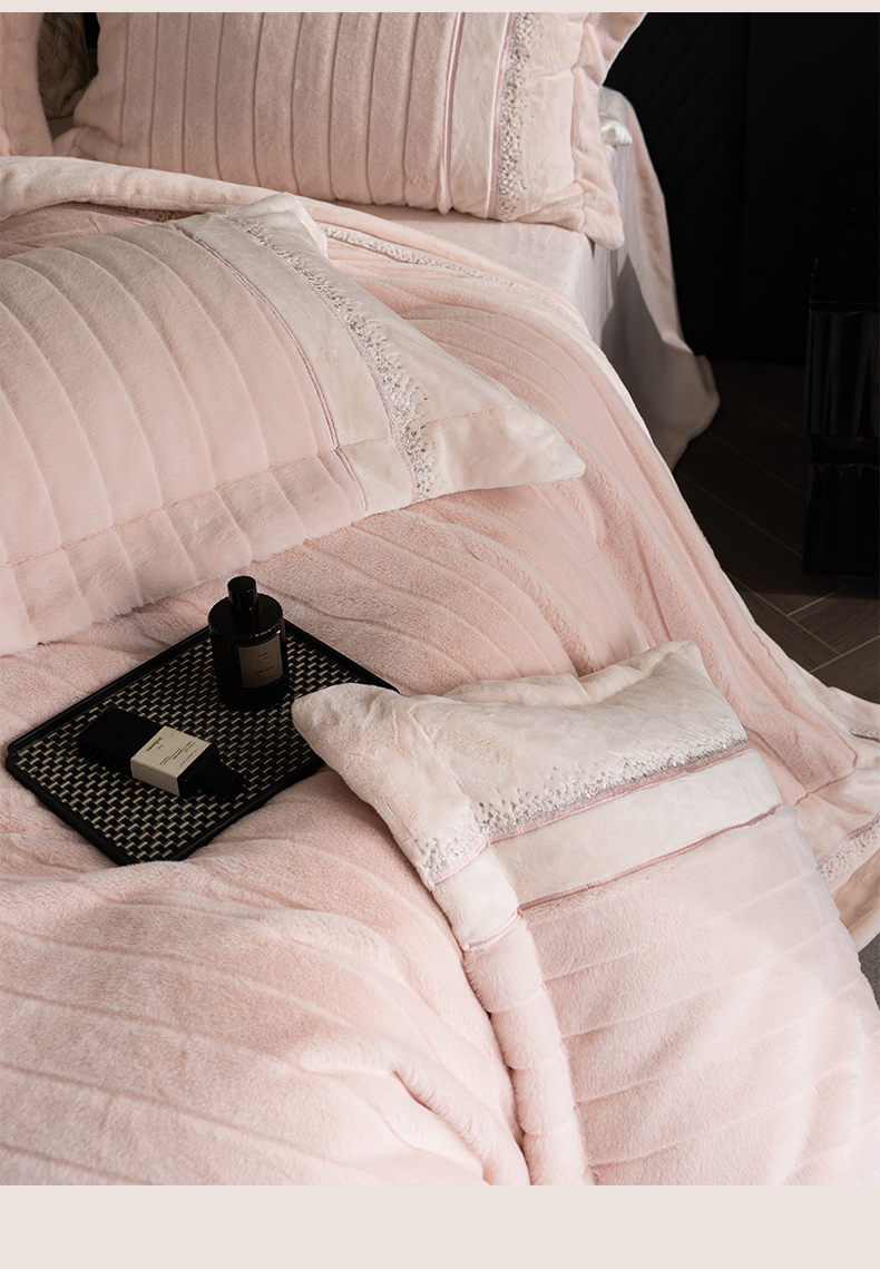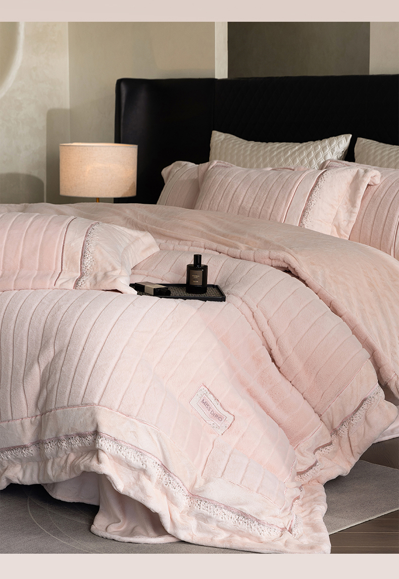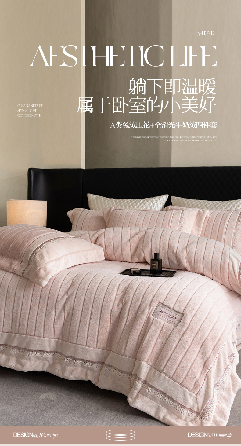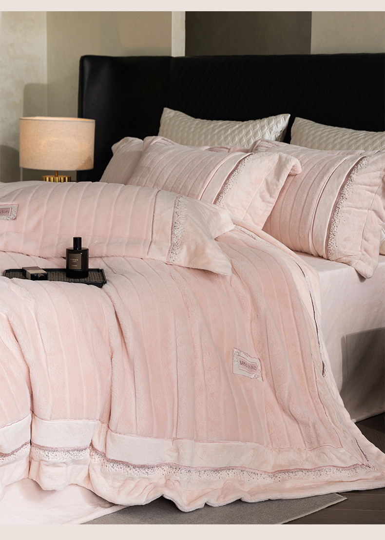鼎飞家纺 2025新款A类兔绒压花+全消光牛奶绒四件套--贝尔雅系列 贝尔雅-柔粉