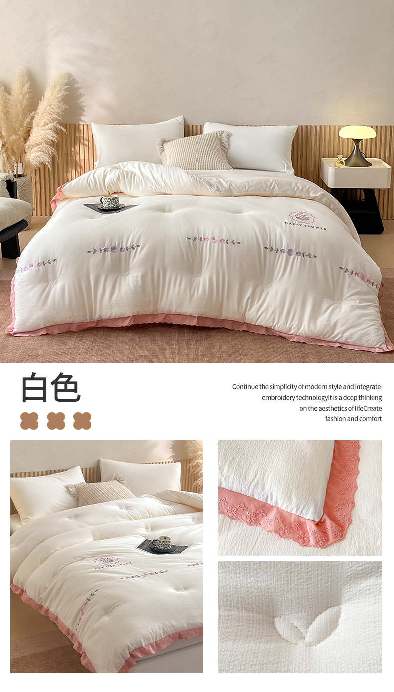 • 91家纺网 家纺一手货源 找家纺 (总)宝士康家纺 2025新品提花锁温秋冬被/被芯/冬被/跨境外贸,奶白,浅灰,粉色